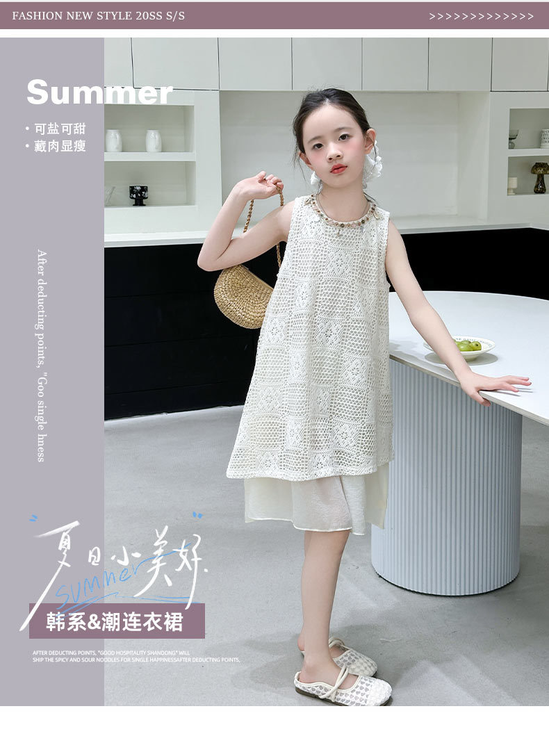 여름 신작 여아 드레스, 어린이 신작 조끼 스커트, 어린 소녀, 중대형 어린이, 패셔너블한 스타일, 공주 스타일