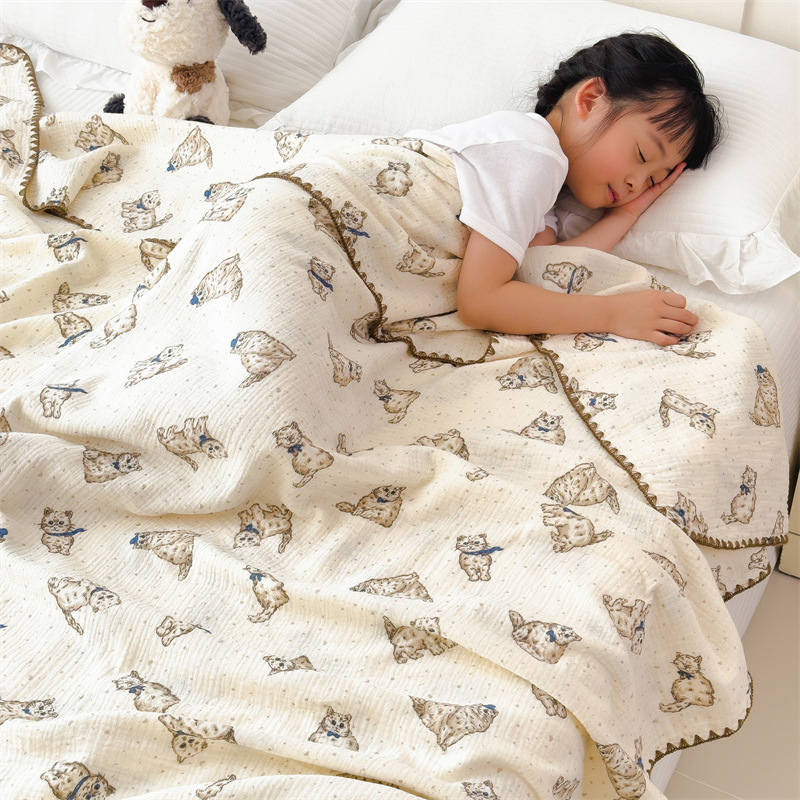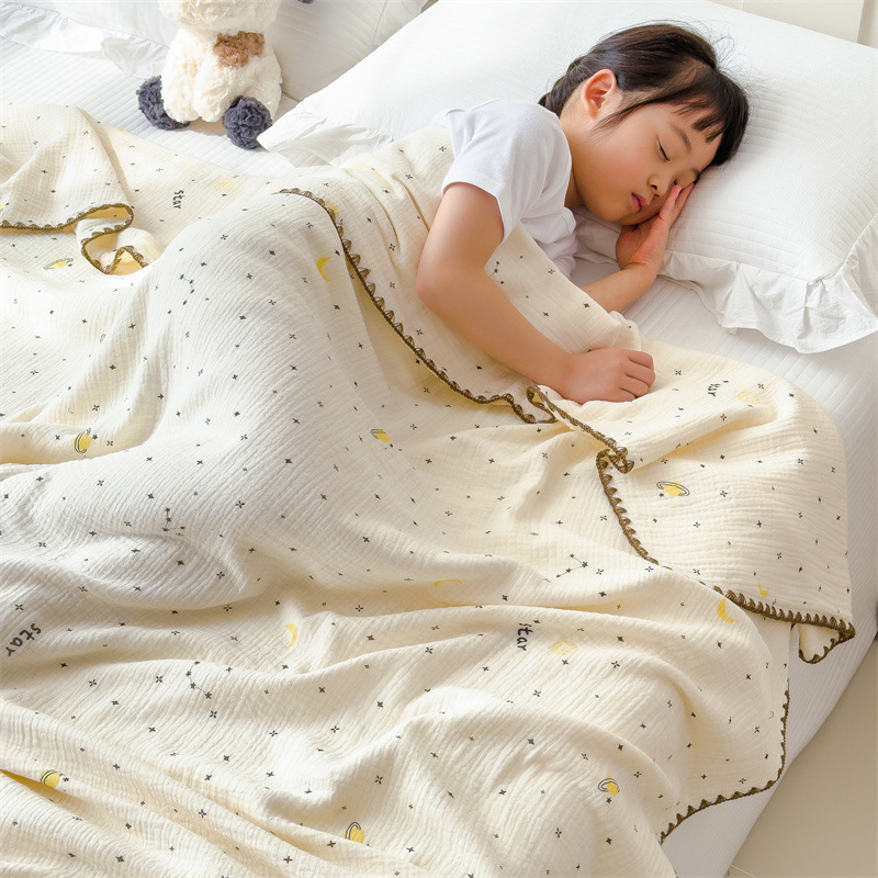 A급 순면 주름 이중 거즈 아기 담요, 순면 여름 이불, 유아용 낮잠 담요, 에어컨 이불, 작은 담요스토어 가기