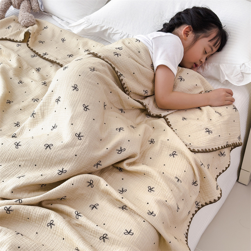 A급 순면 주름 이중 거즈 아기 담요, 순면 여름 이불, 유아용 낮잠 담요, 에어컨 이불, 작은 담요