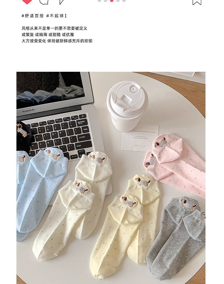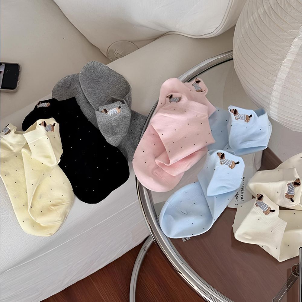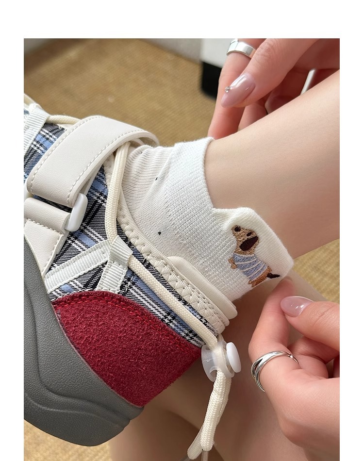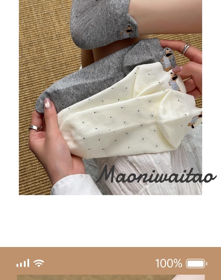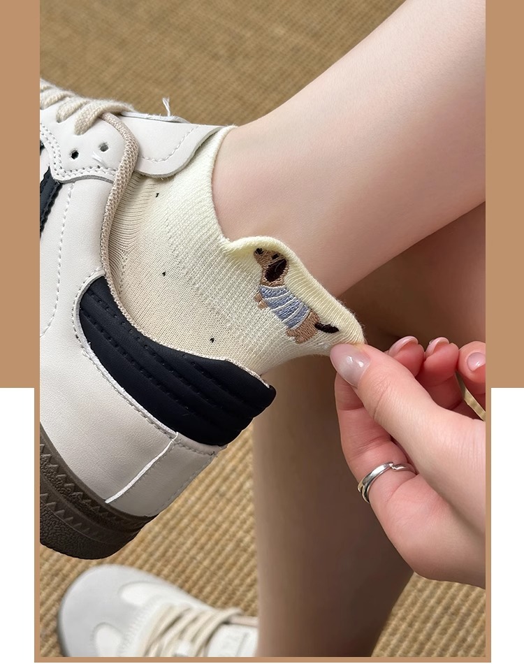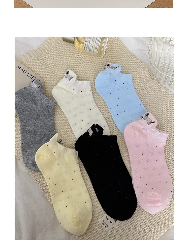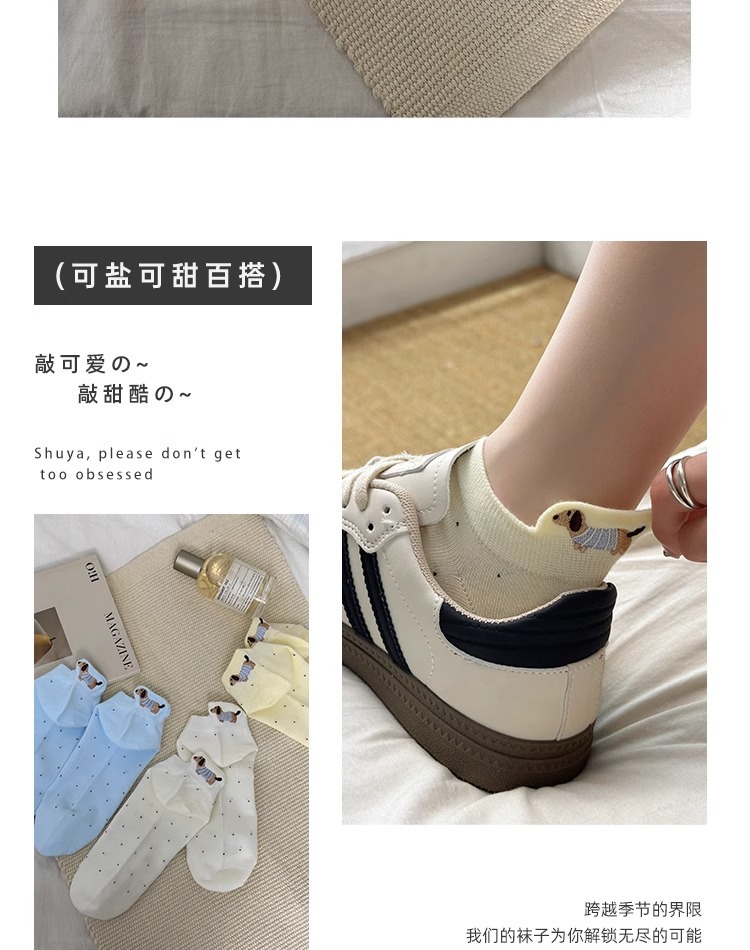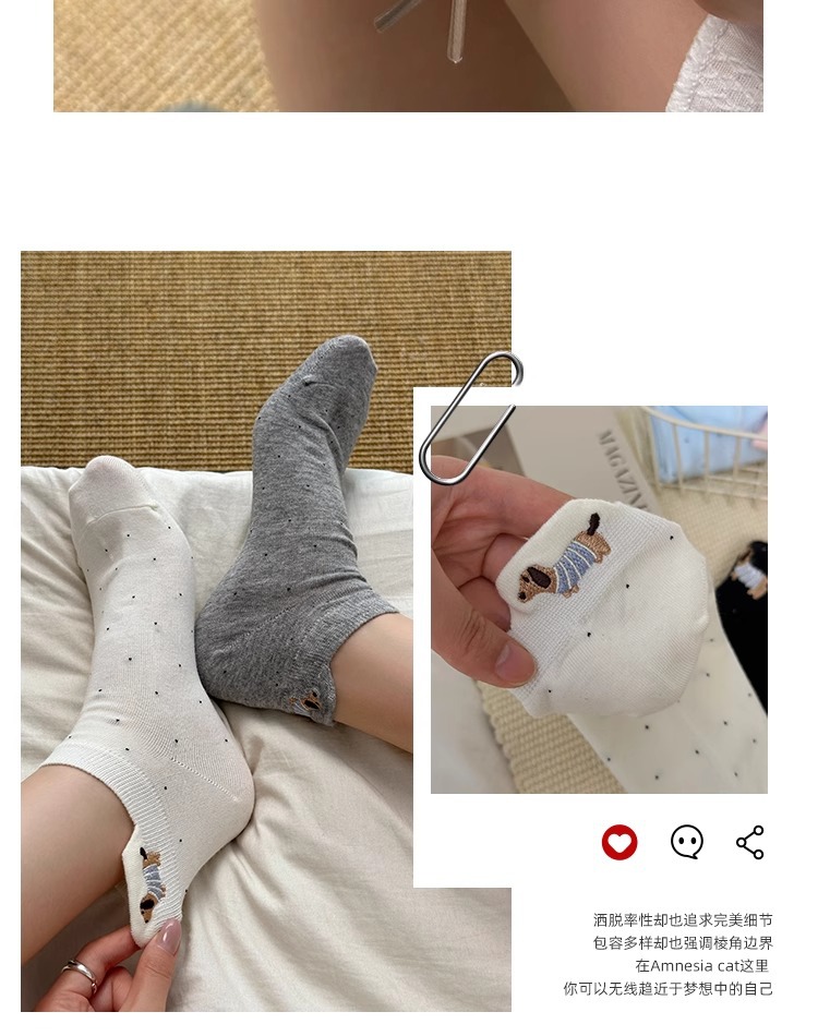강아지 흰색 양말 여성 솔리드 컬러 2025 새로운 핫 스타일 ins 트렌디 여름 얇은 만화 얕은 입 귀여운 양말스토어 가기