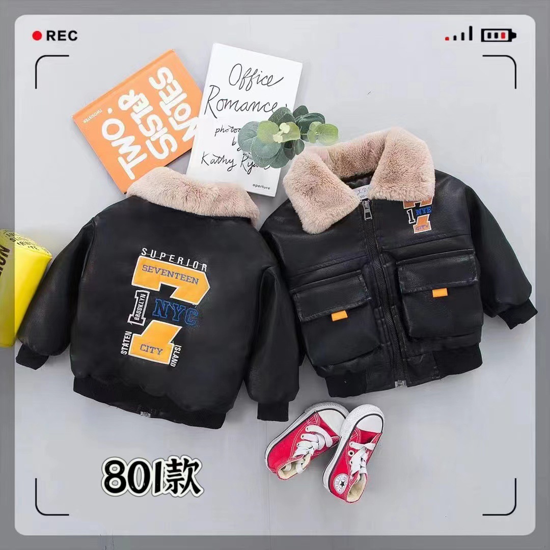소년 가죽 자켓 플러스 벨벳 자켓 2025 겨울 새로운 스타일 어린이 가을, 겨울 두꺼운 중대형 어린이 스타일 가죽 자켓스토어 가기