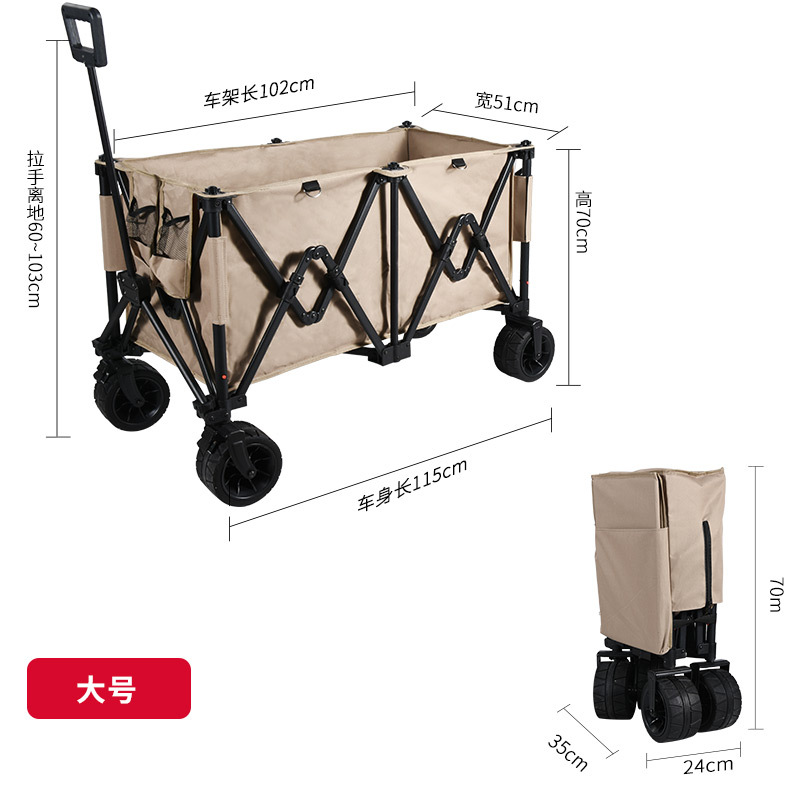알루미늄 합금 캠핑 카트 야외 접이식 푸시 업 초대형 캠핑 트레일러 캠핑카 피크닉 트롤리