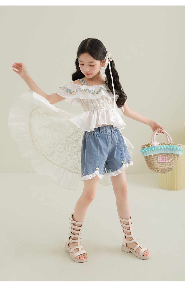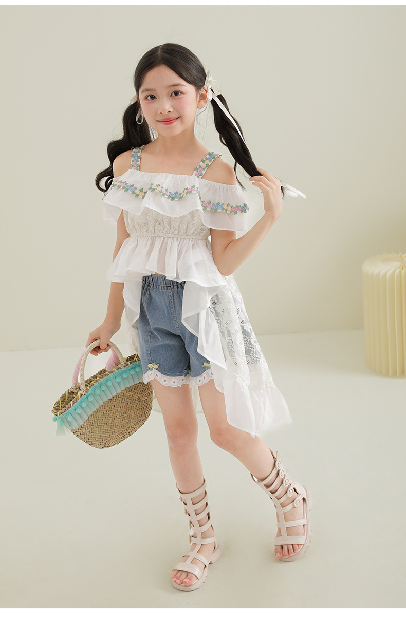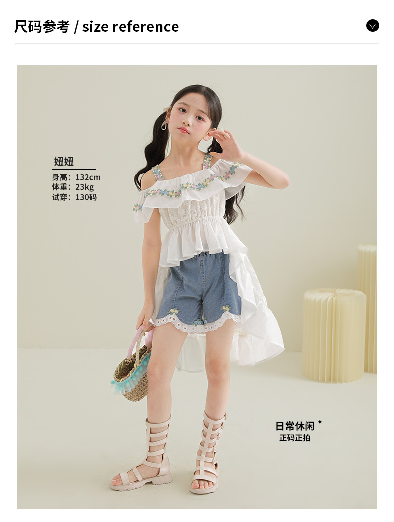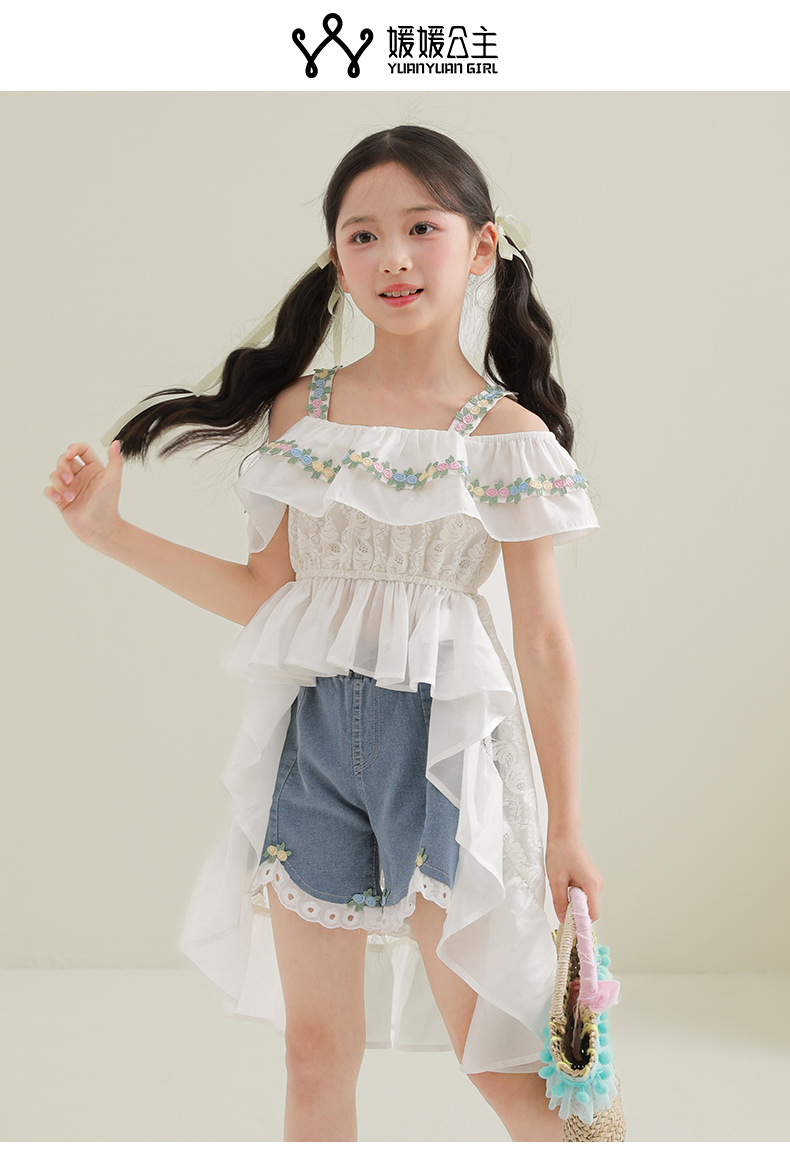 Yuanyuan 공주 cuhk 소녀 여름 세트 2025 옷 달콤한 원피스 반바지 아동복 도매스토어 가기