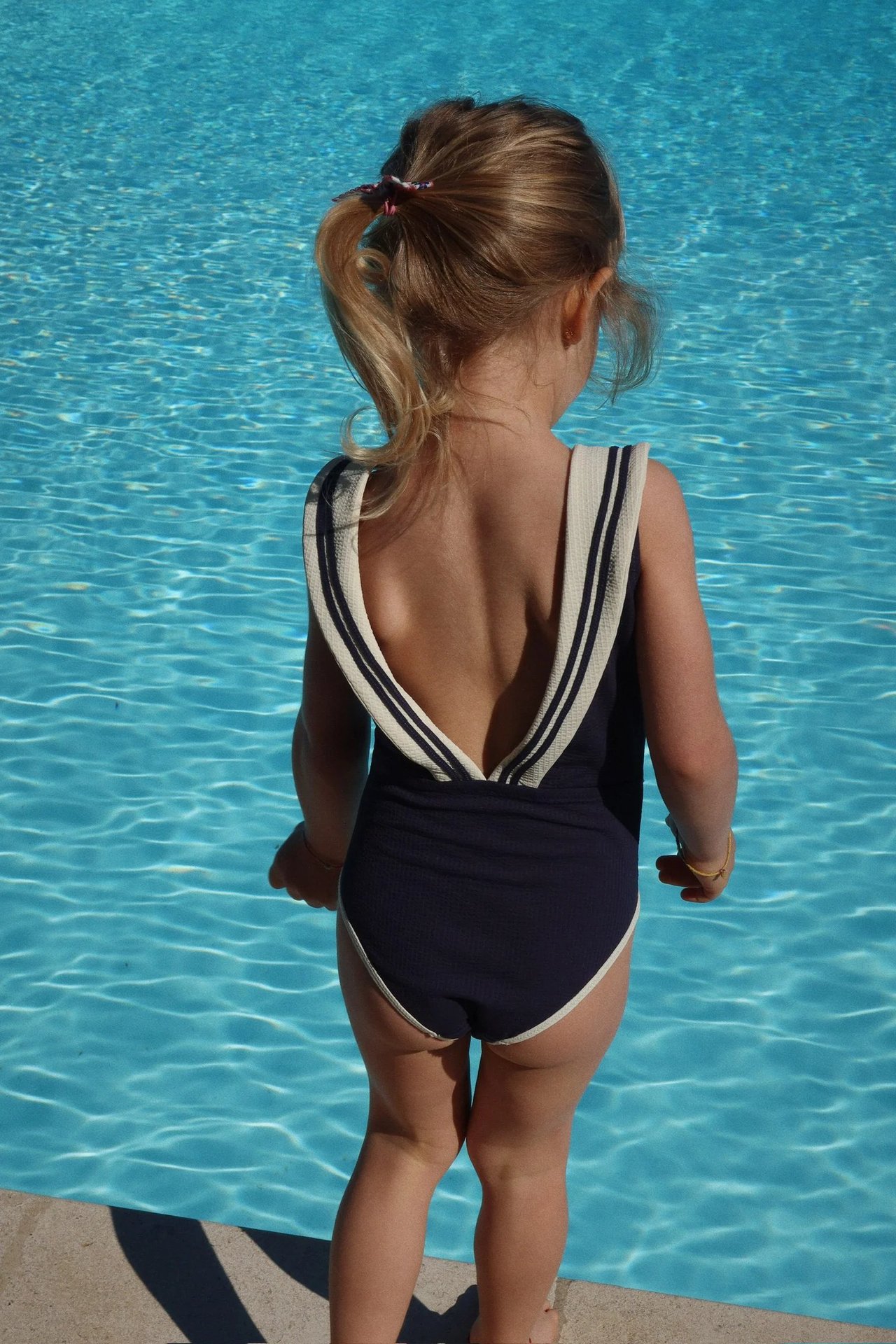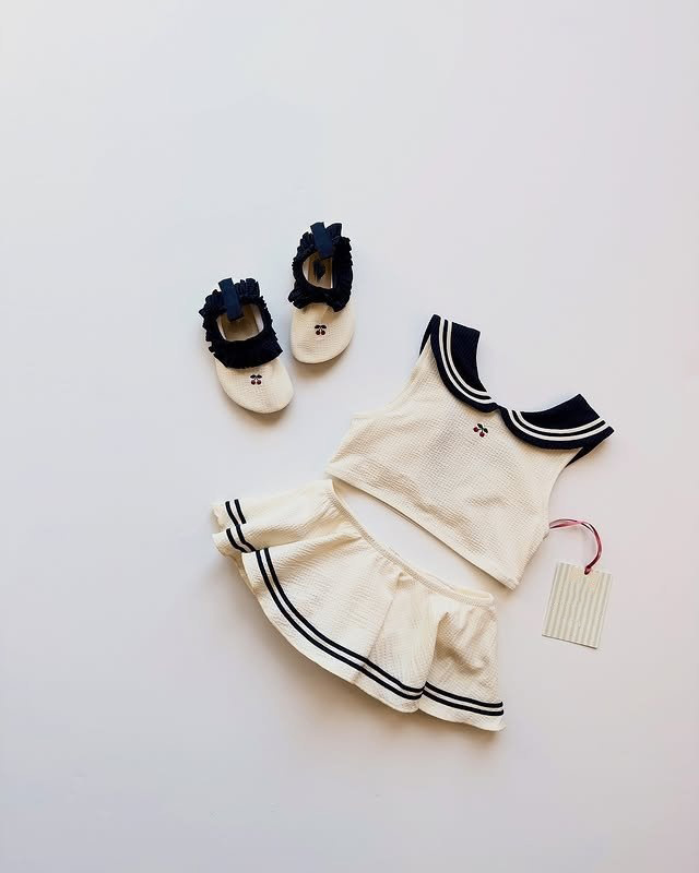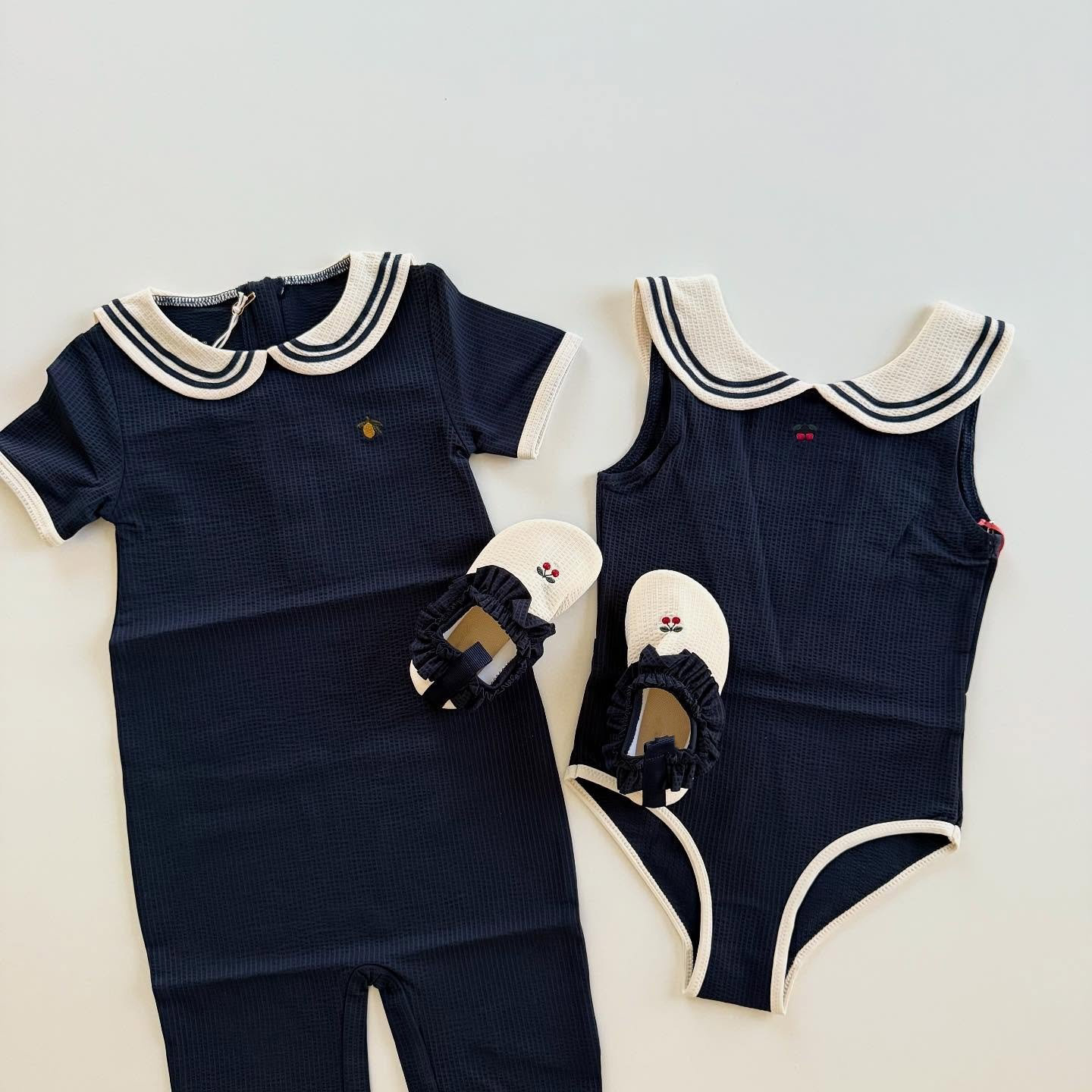 여자 원피스 수영복 2025 북유럽 새로운 해군 스타일 여자 속건성 스플릿 수영복 아기 소녀 여름 수영복스토어 가기