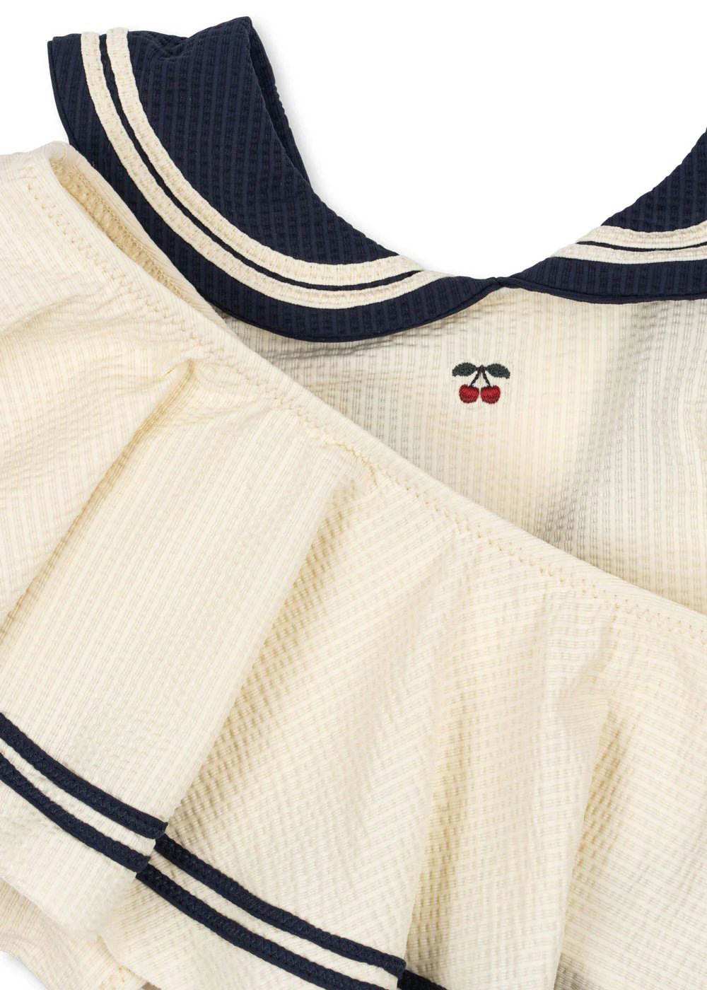 여자 원피스 수영복 2025 북유럽 새로운 해군 스타일 여자 속건성 스플릿 수영복 아기 소녀 여름 수영복