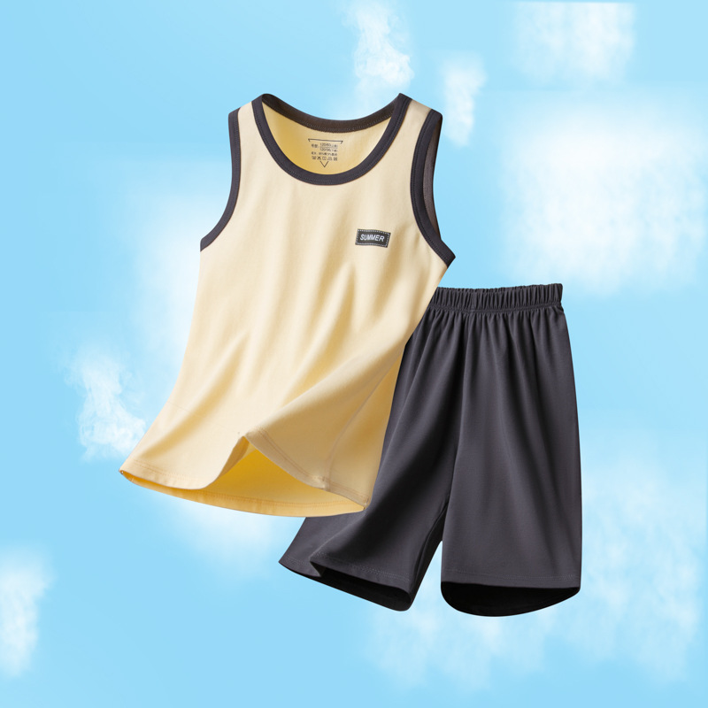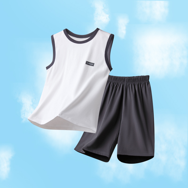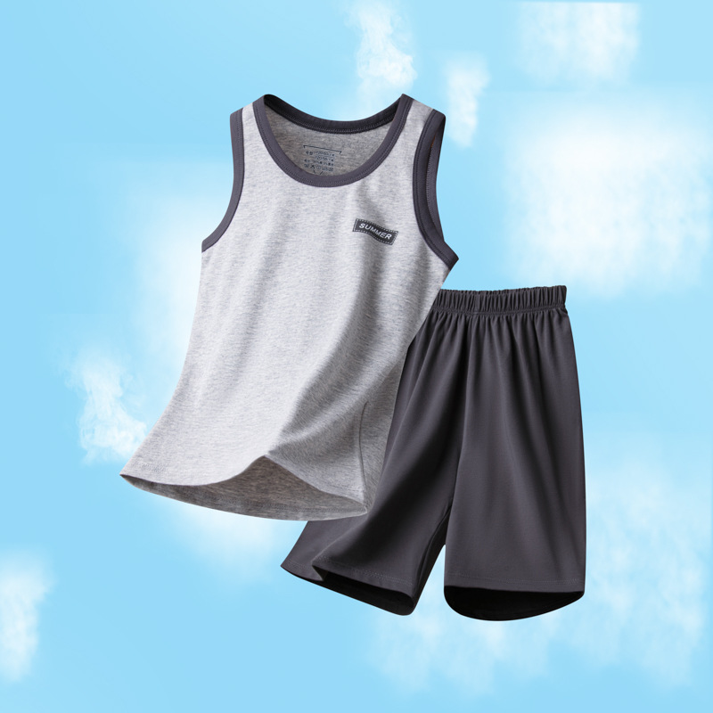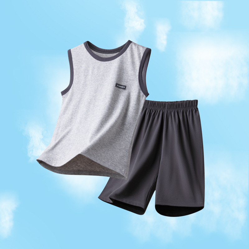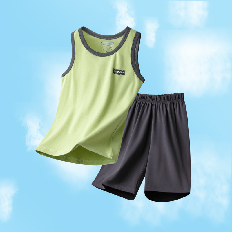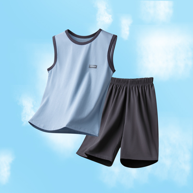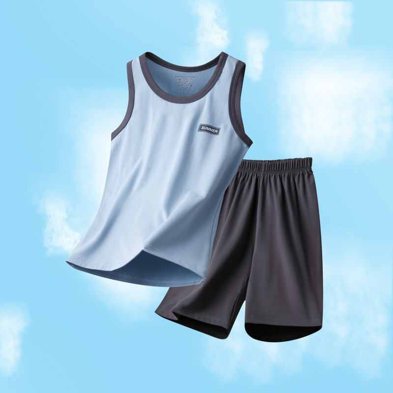 아동용 잠옷, 남아용 여름 가정복, 중대형 아동용 조끼 세트, 여름용 얇은 순면 에어컨 의류스토어 가기