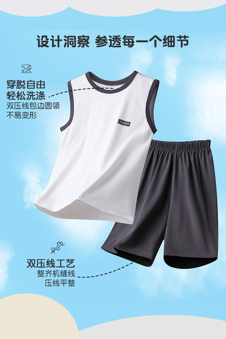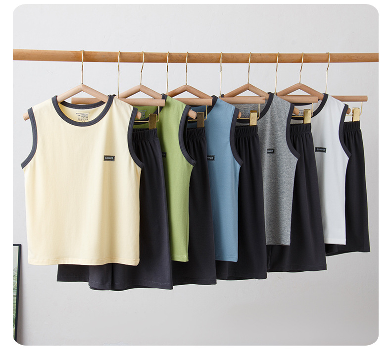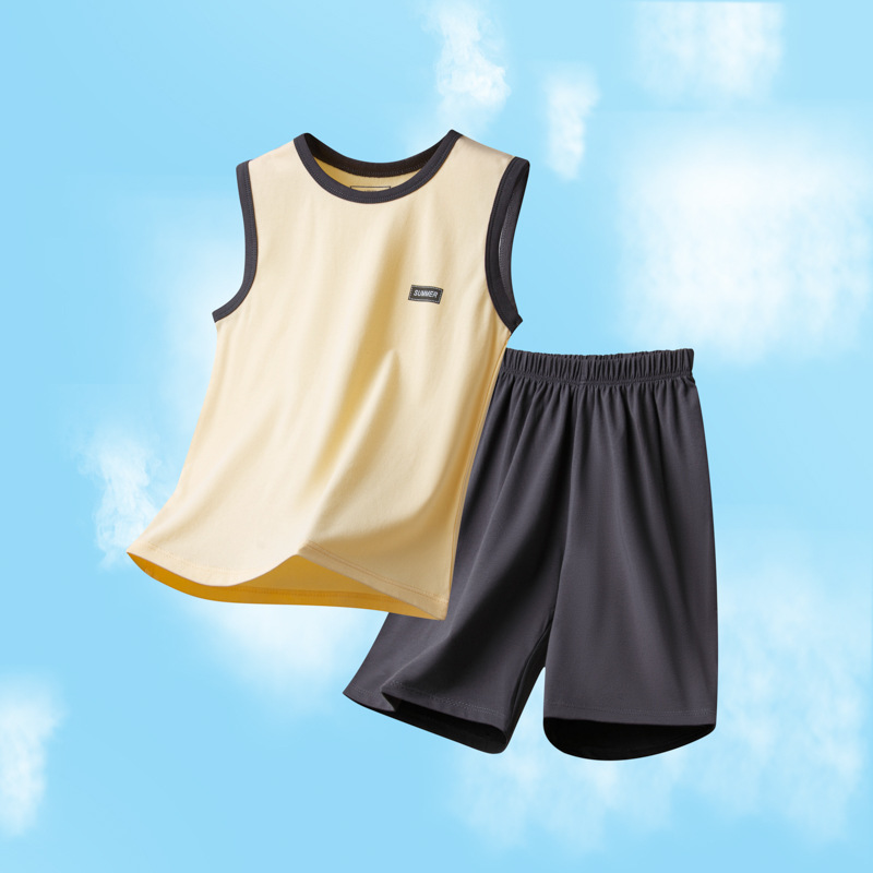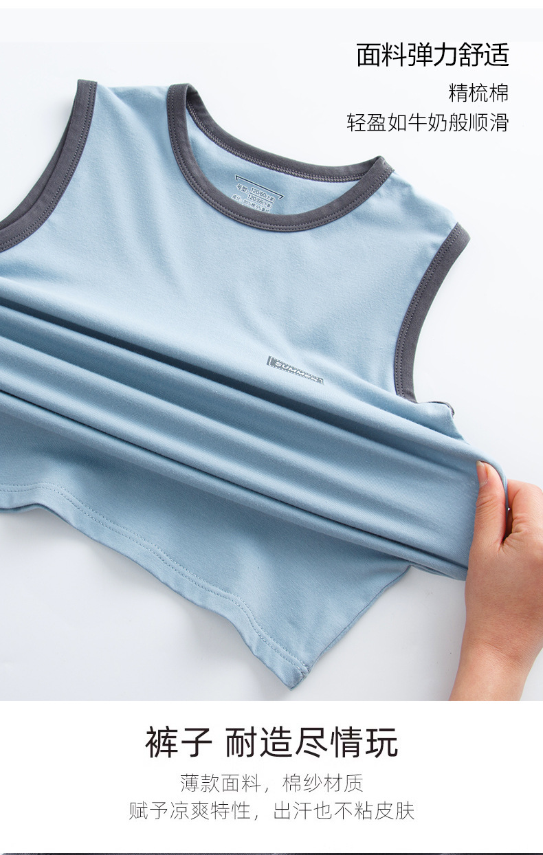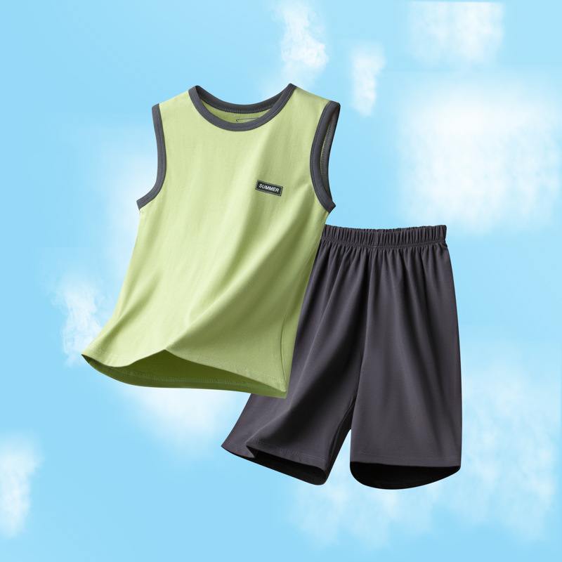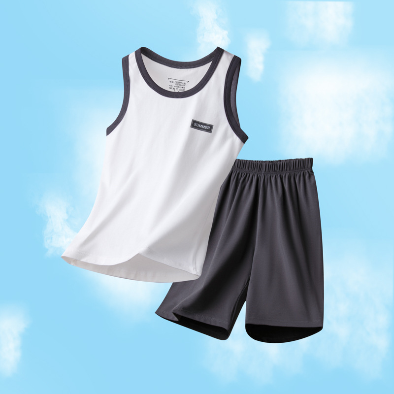 아동용 잠옷, 남아용 여름 가정복, 중대형 아동용 조끼 세트, 여름용 얇은 순면 에어컨 의류스토어 가기