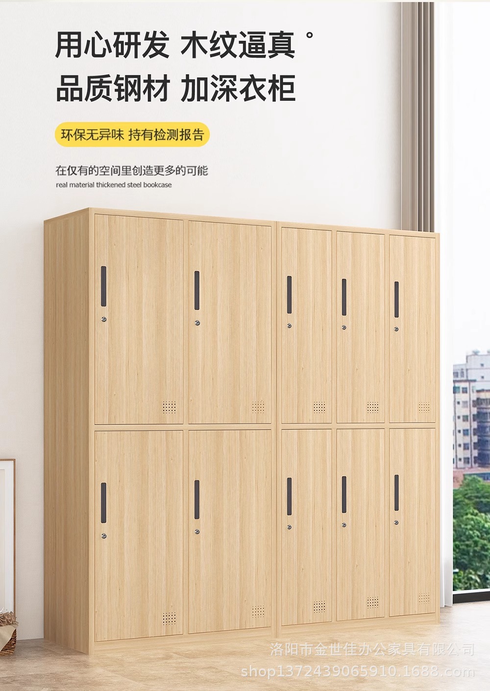 나무 무늬 전사 프린팅 사물함 철제 캐비닛 체육관 욕실 수납장 잠금장치 포함 사무실 직원 기숙사 옷장스토어 가기
