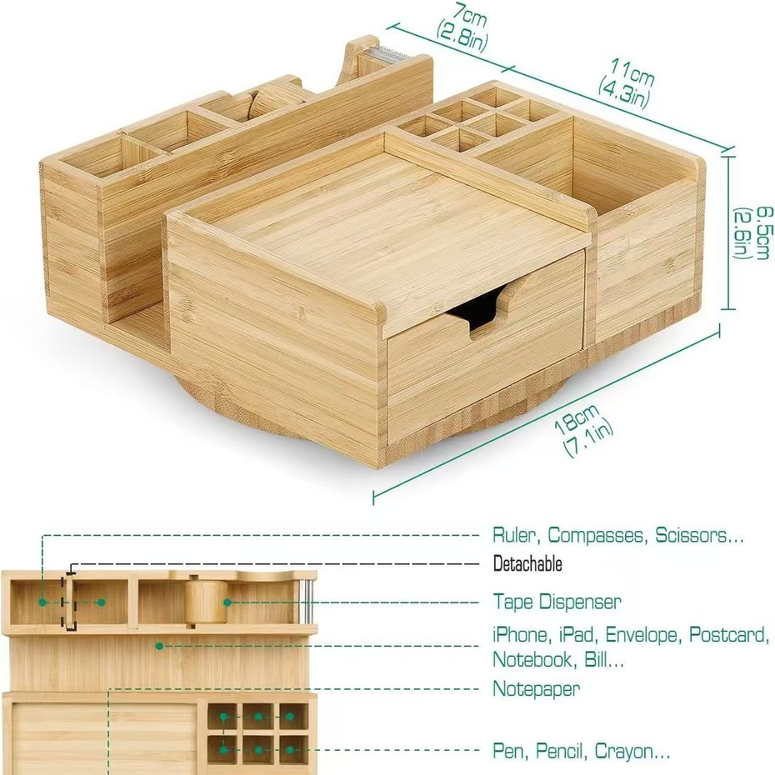 나무 책상 수납 상자 책상 책상 정리 상자 메모 펜 슬롯 회전식 데스크탑 단단한 나무 수납 상자