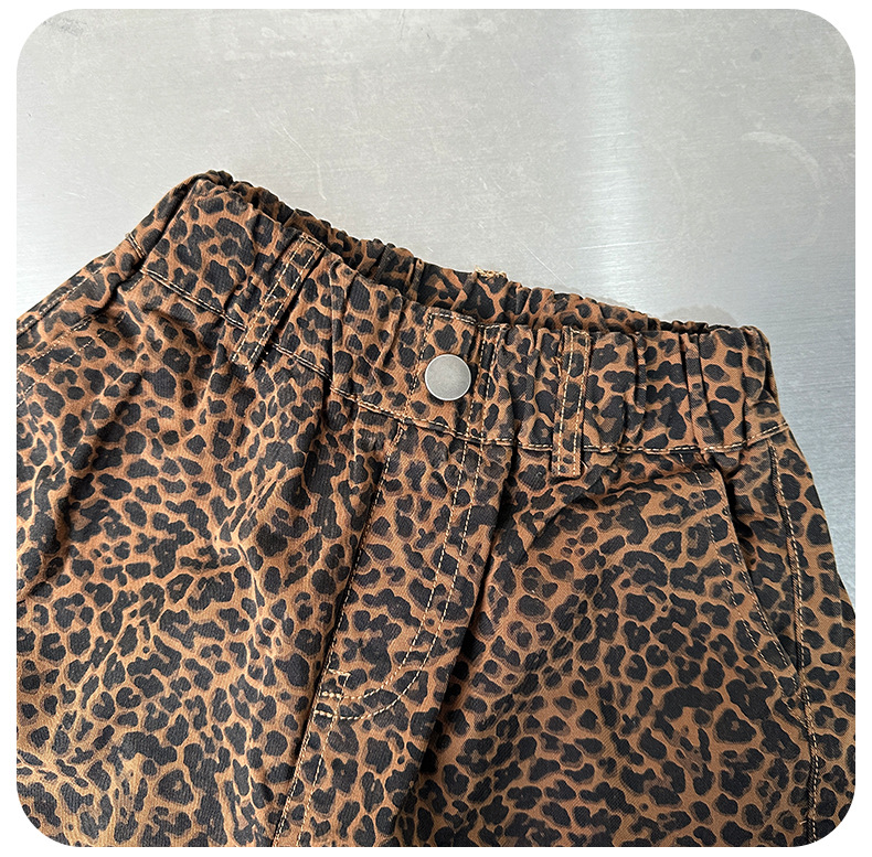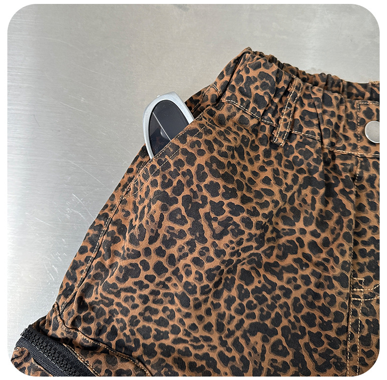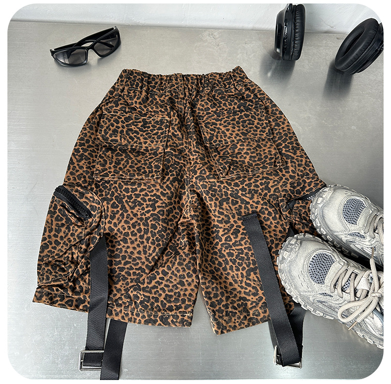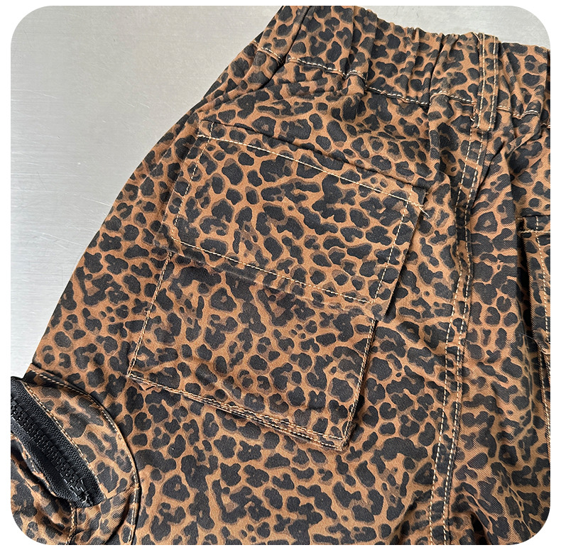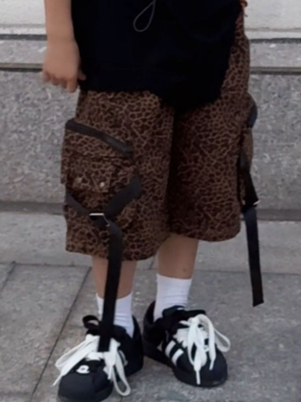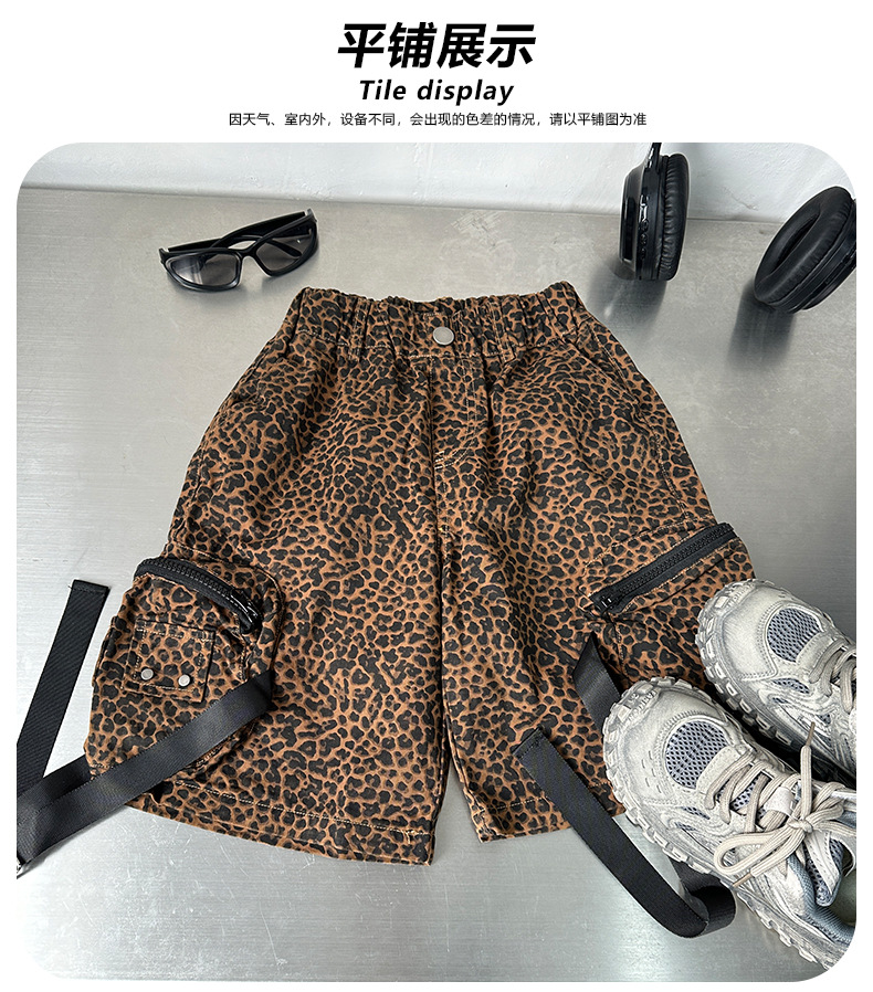 2025 아동 여름 중대형 아동 레오파드 프린트 반바지 아메리칸 하이 스트리트 패션 브랜드 빅 포켓 루즈 워크웨어 5부 바지스토어 가기