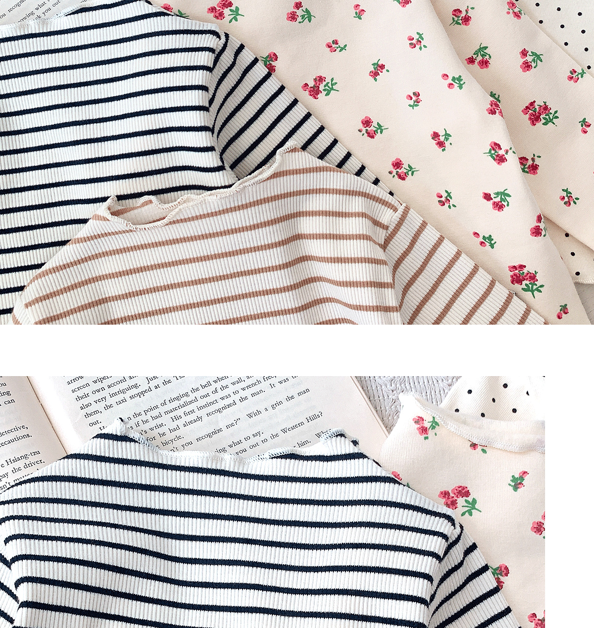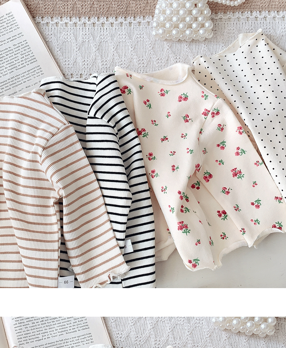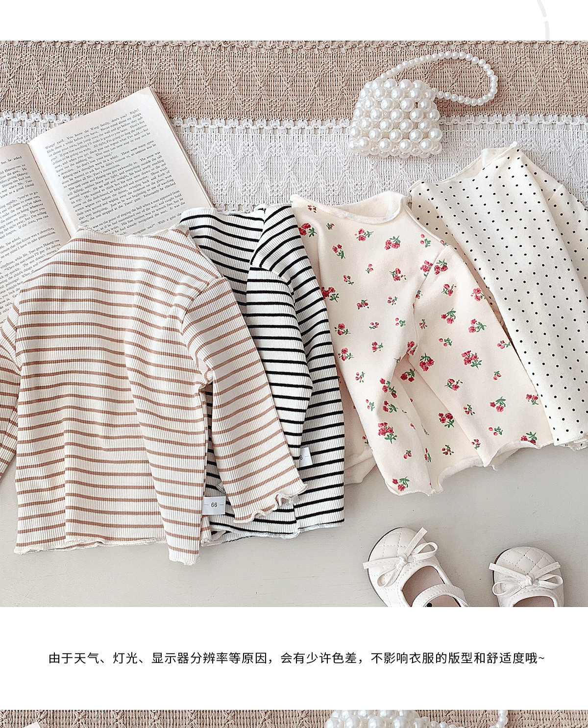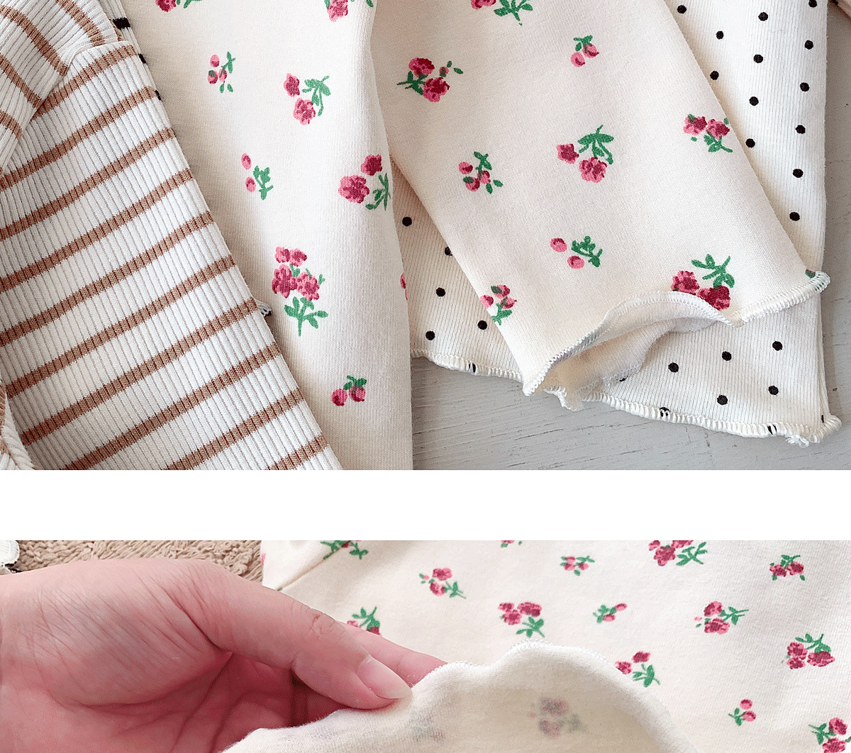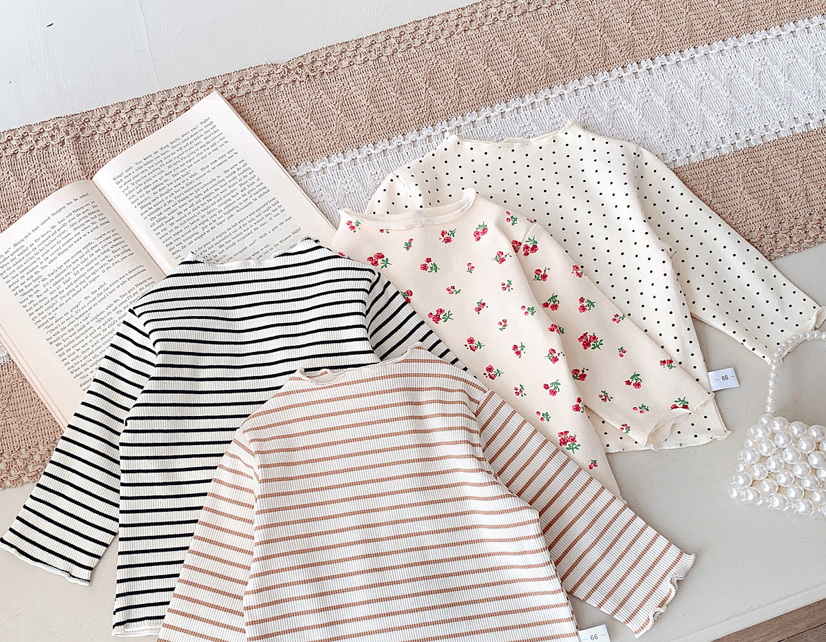 Ins 가을 새 여자 하프 터틀넥 귀 바닥 셔츠, 세련된 아기 소녀 꽃 무늬 얇은 긴팔 탑스토어 가기