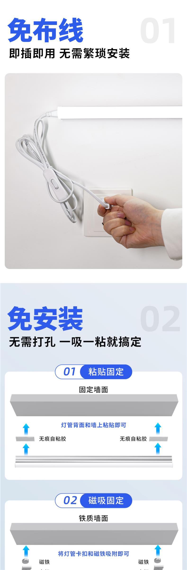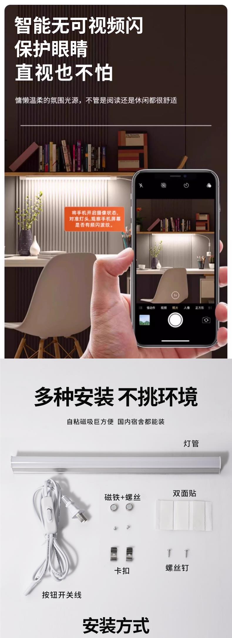 LED 라이트 스트립 책상 램프 플러그인 눈 보호 설치가 필요없는 학습 소켓 기숙사 벽 테이블 램프 특수 침실