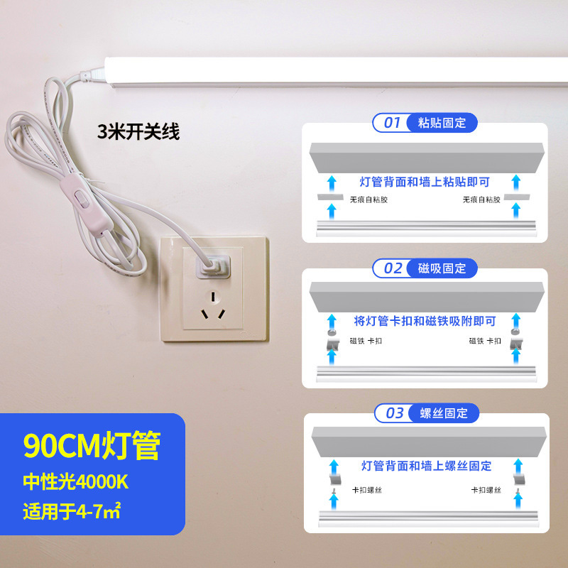 • [무설치 눈보호 기숙사 조명] 0.9m - 중성광 + 3m 스위치 라인