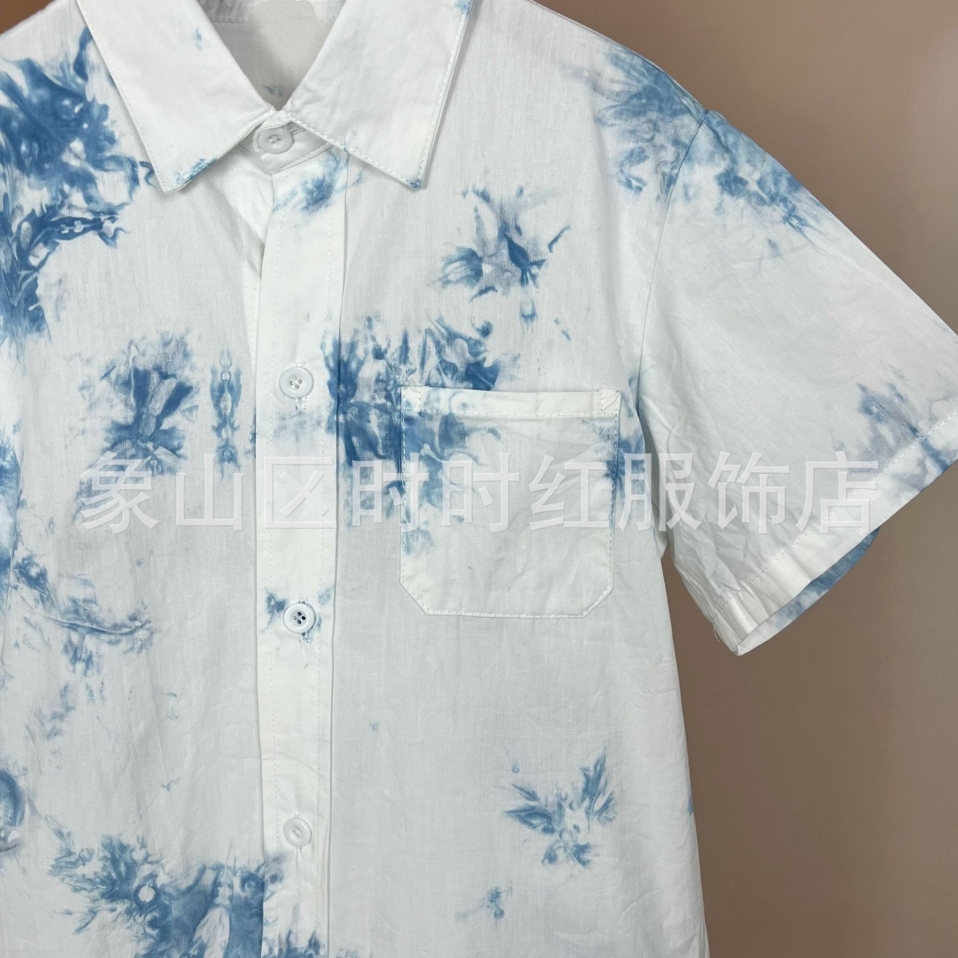 어린이 넥타이 염료 세트 소년 여름 셔츠 반바지 수제 블루 염료 짧은 소매 탑 식물 염료 여행 비치웨어스토어 가기