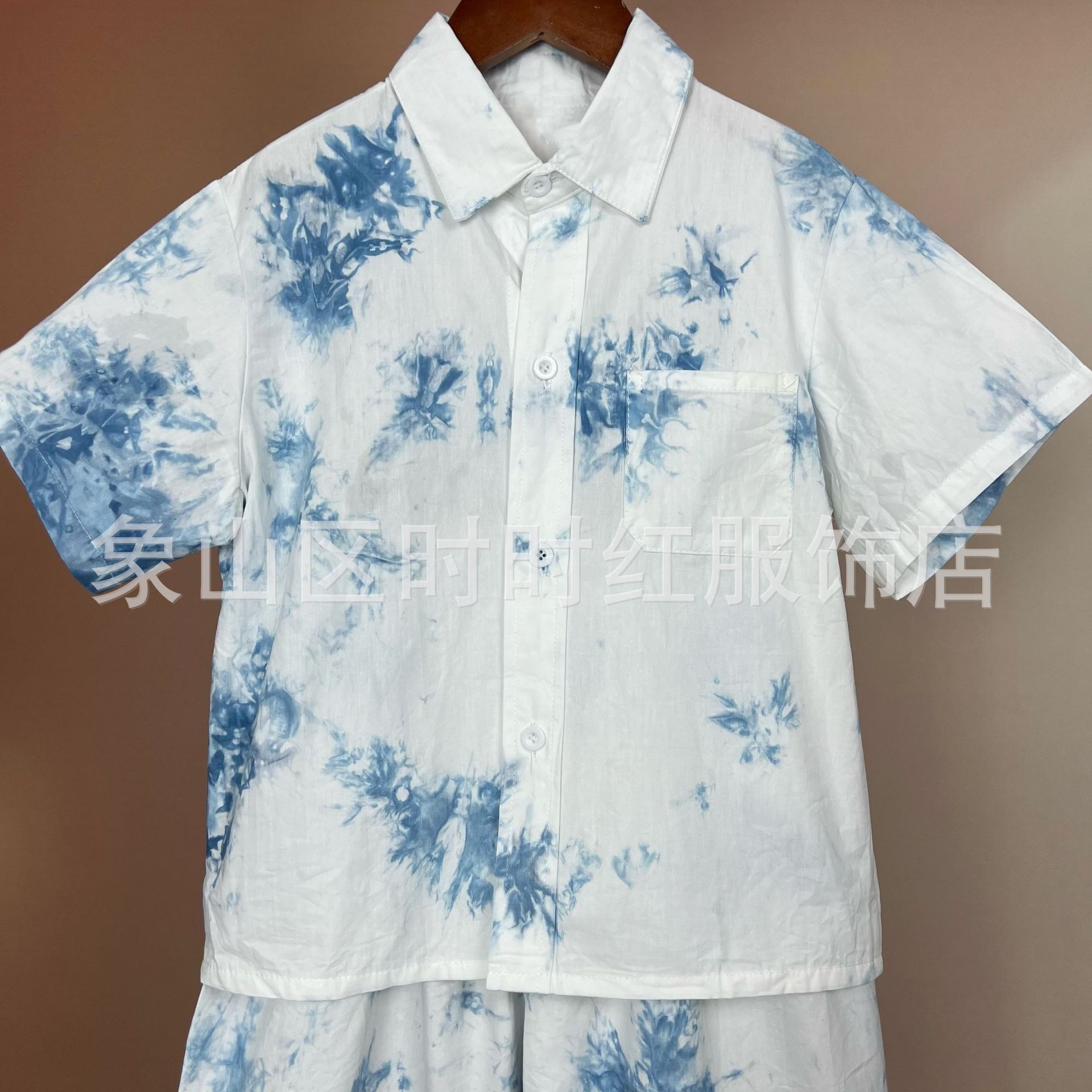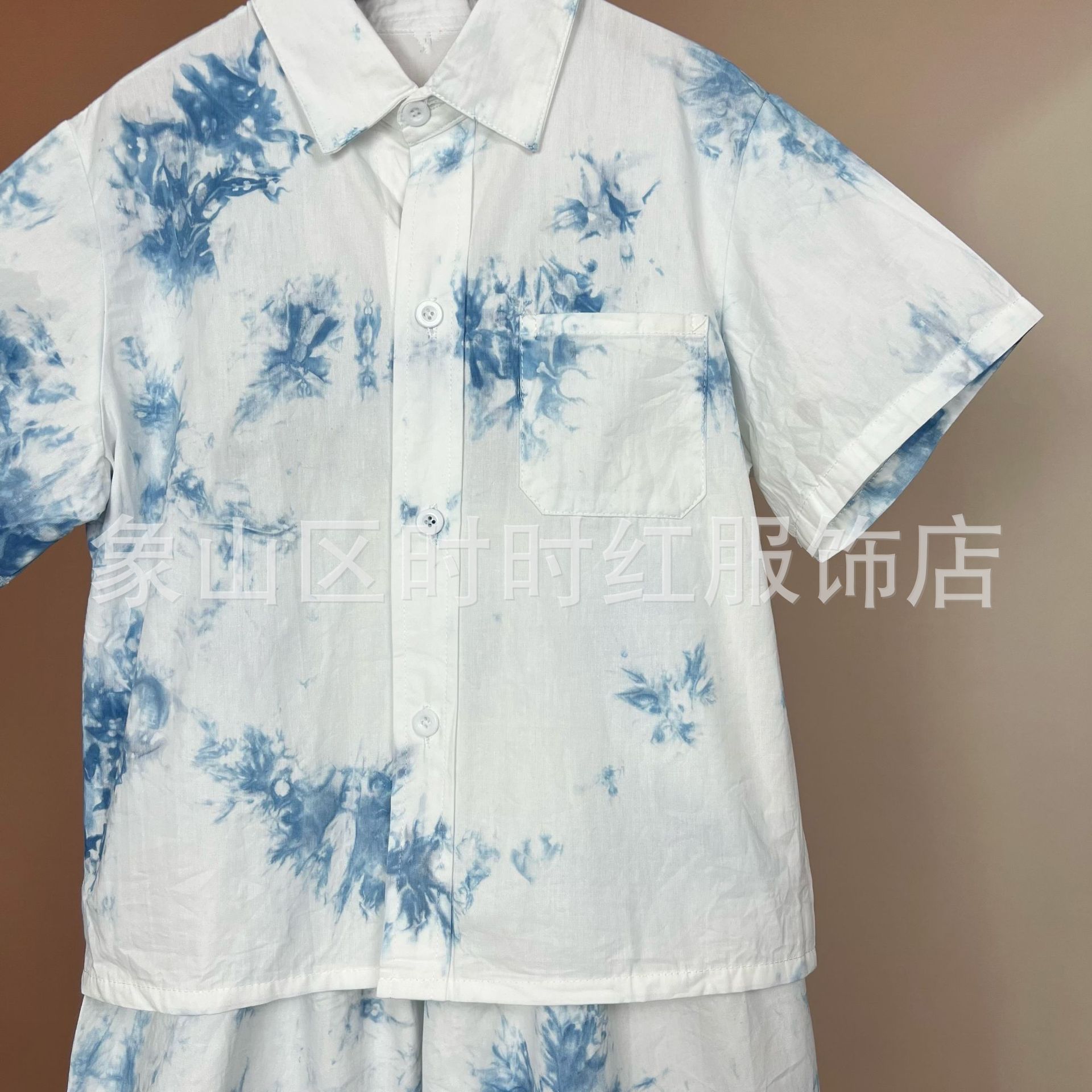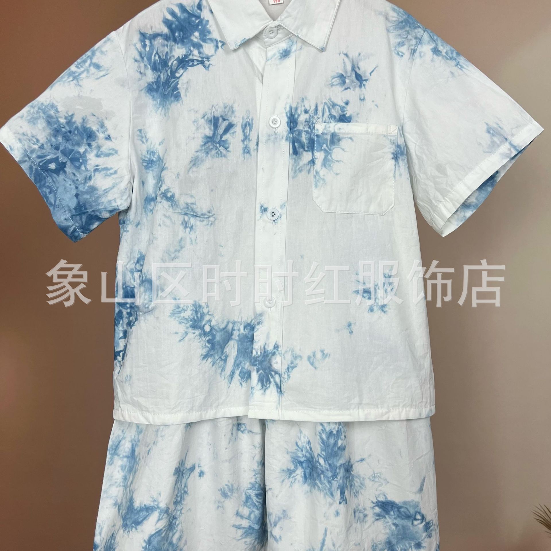 어린이 넥타이 염료 세트 소년 여름 셔츠 반바지 수제 블루 염료 짧은 소매 탑 식물 염료 여행 비치웨어
