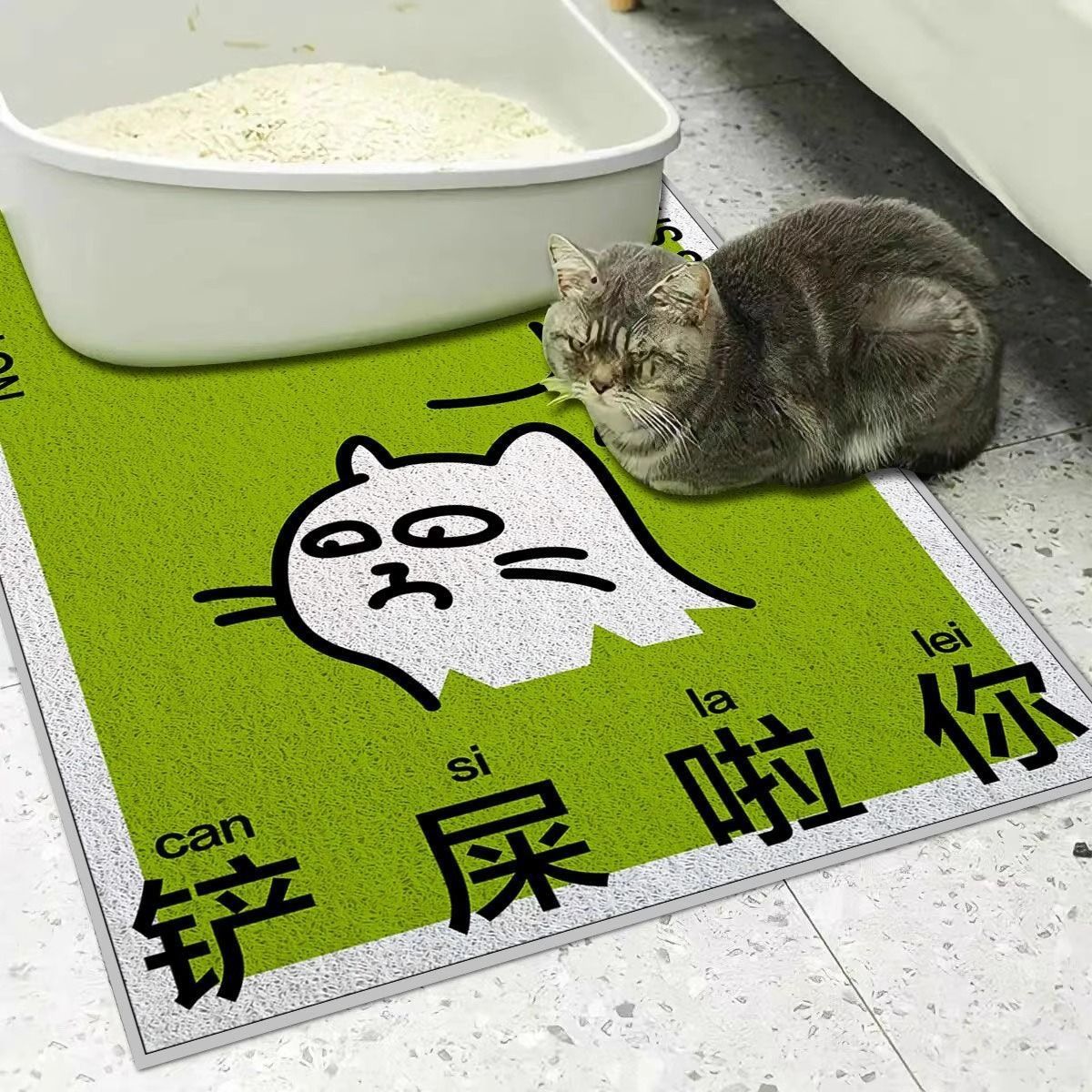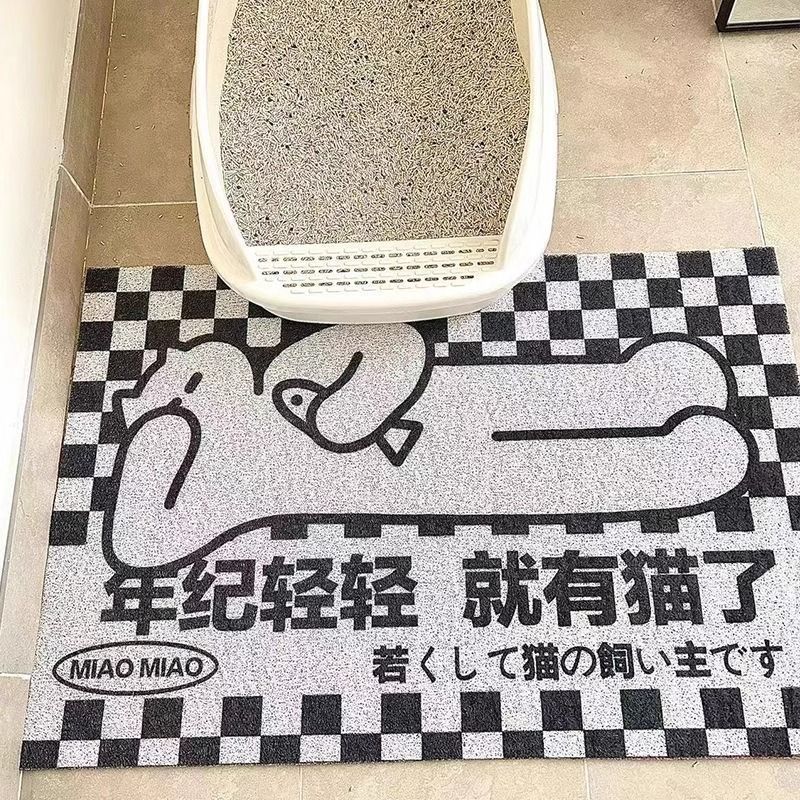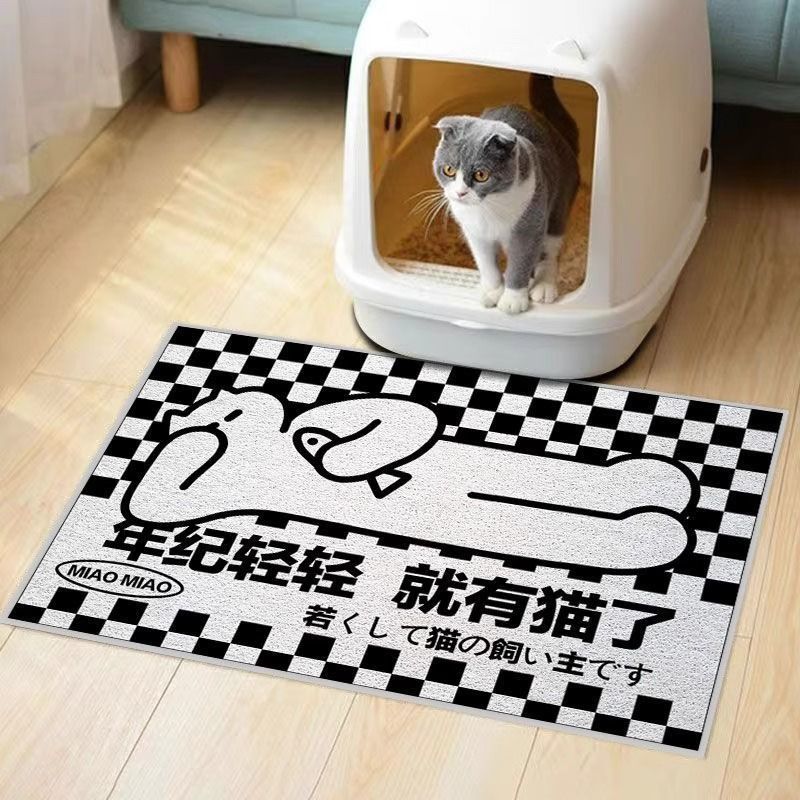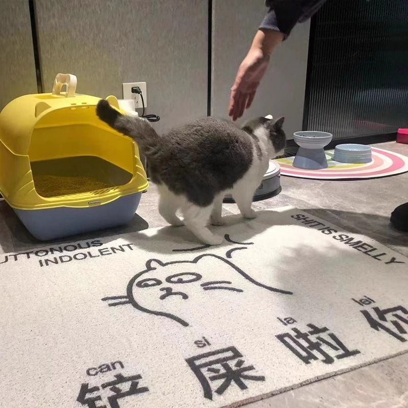 창의적이고 재미있는 텍스트 원형 바닥 매트 PVC 미끄럼 방지 및 먼지 방지 고양이 쓰레기통 매트 절단 및 관리가 용이한 고양이 둥지 바닥 매트스토어 가기