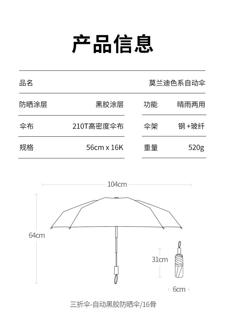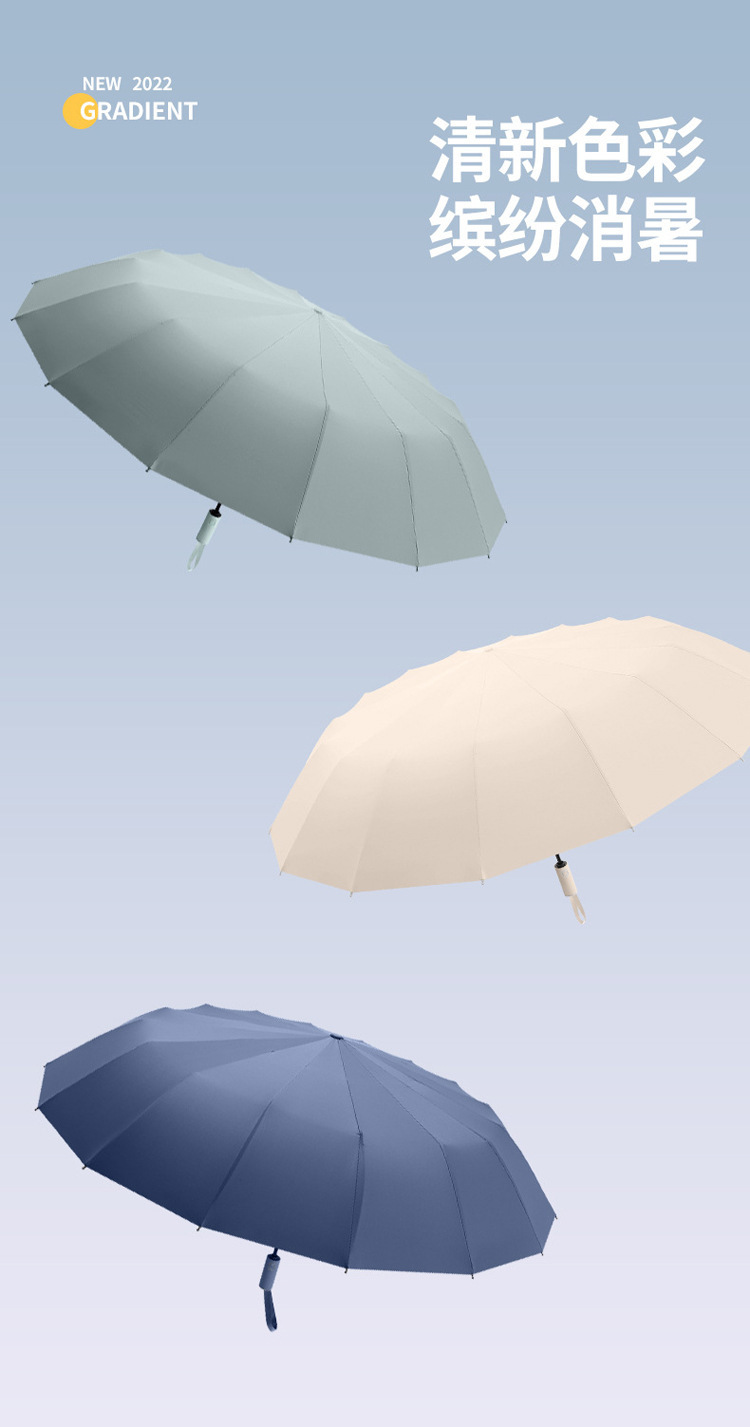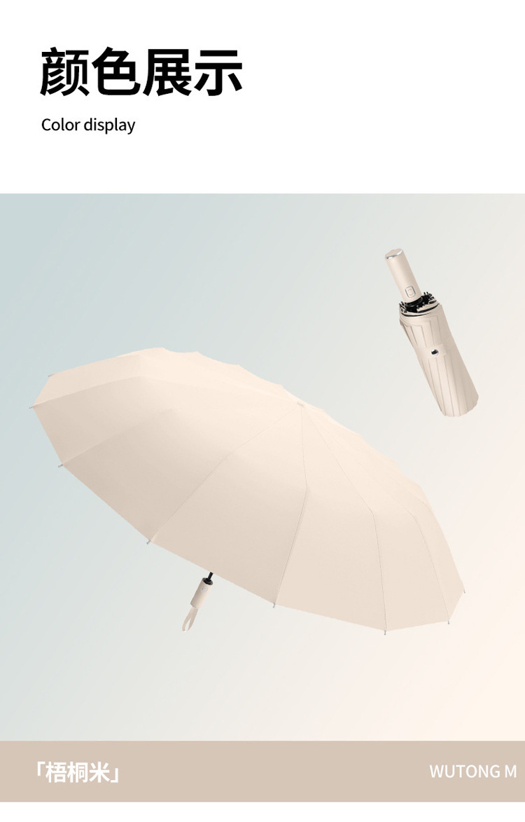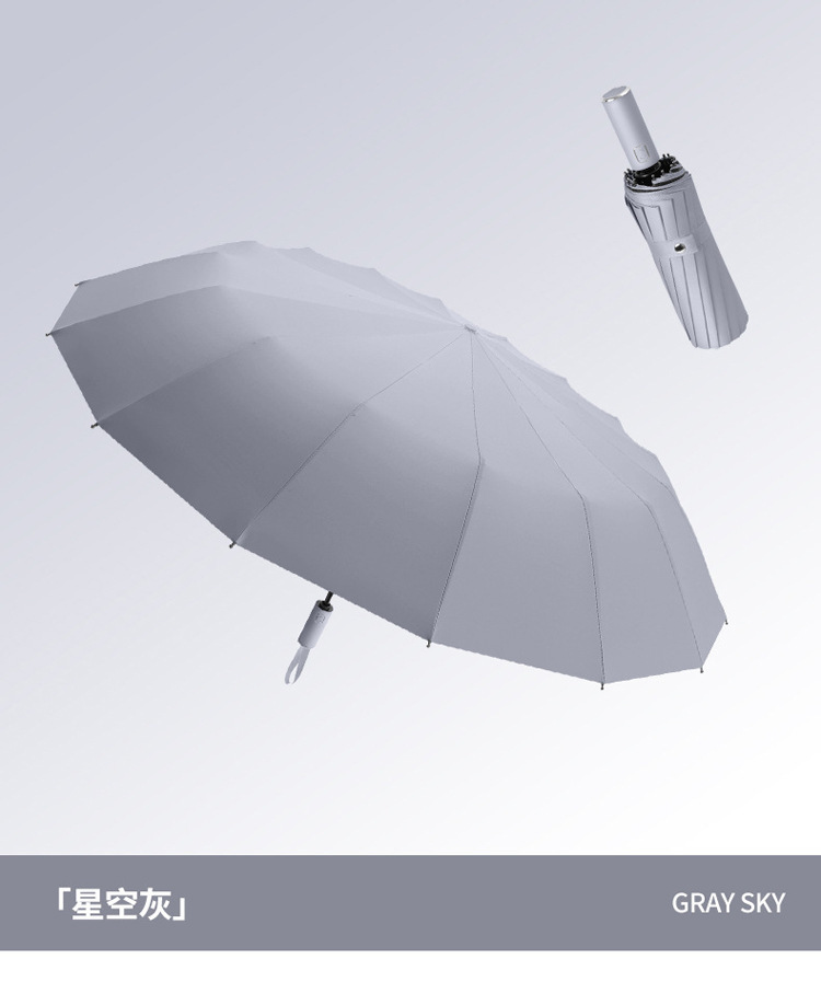 16-뼈 3 배 완전 자동 접히는 순한 우산 남성과 여성을위한 대형 더블 햇빛 검은 고무 선 스크린 광고 선물 우산스토어 가기