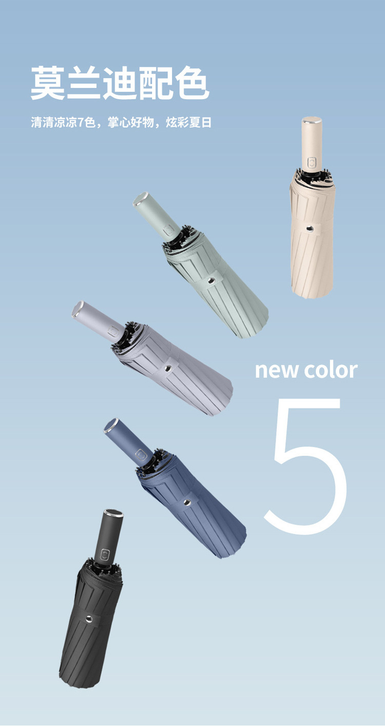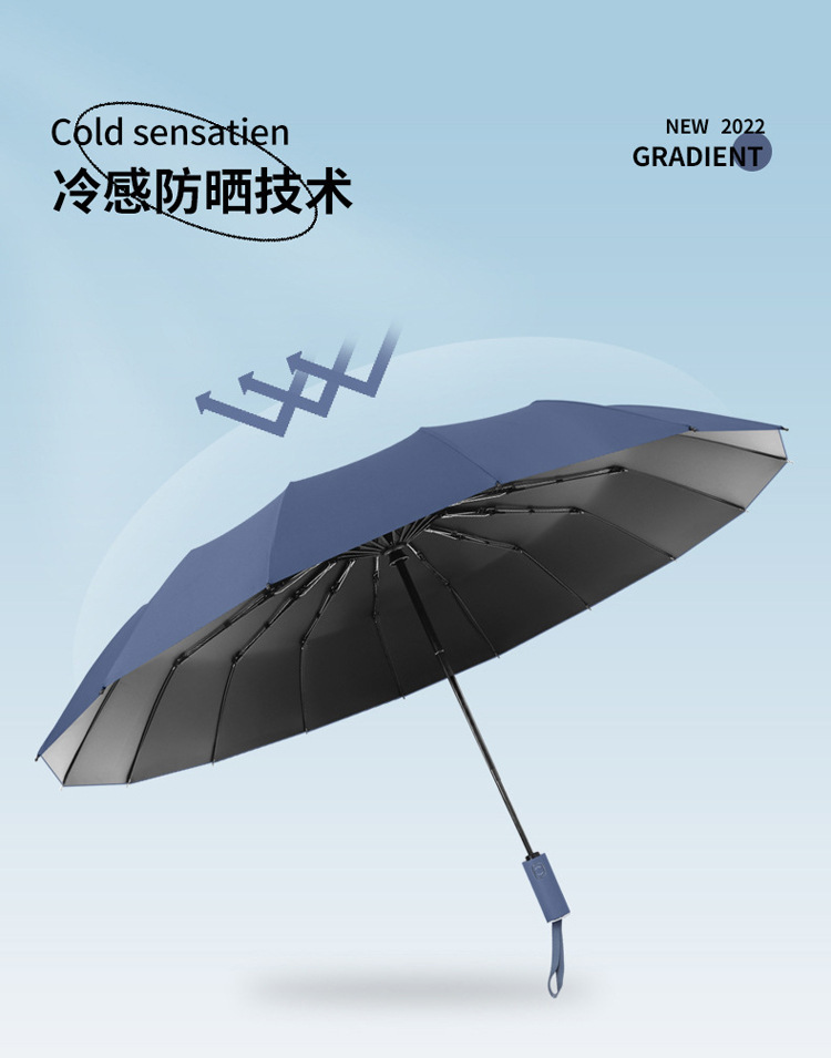 16-뼈 3 배 완전 자동 접히는 순한 우산 남성과 여성을위한 대형 더블 햇빛 검은 고무 선 스크린 광고 선물 우산