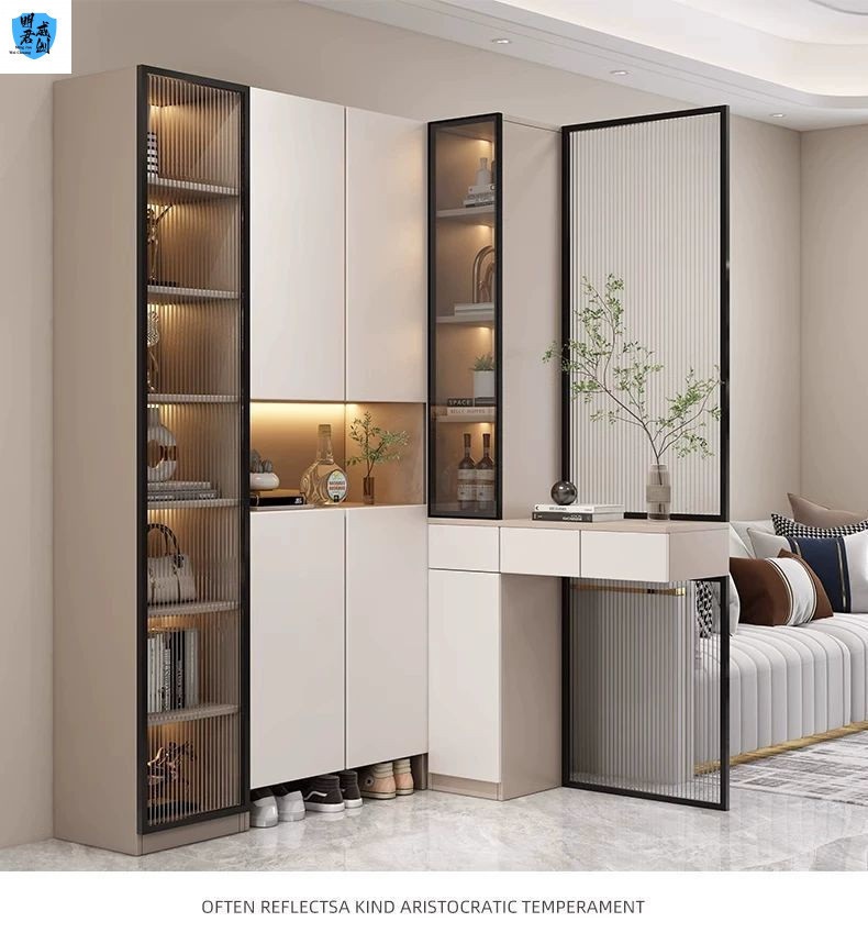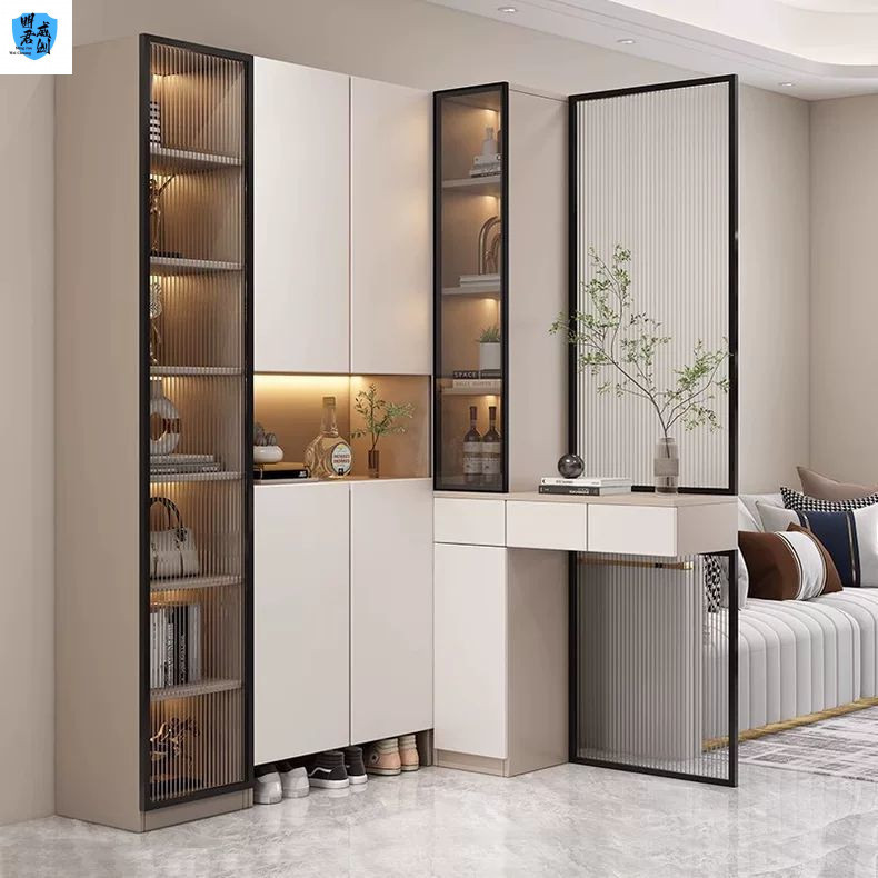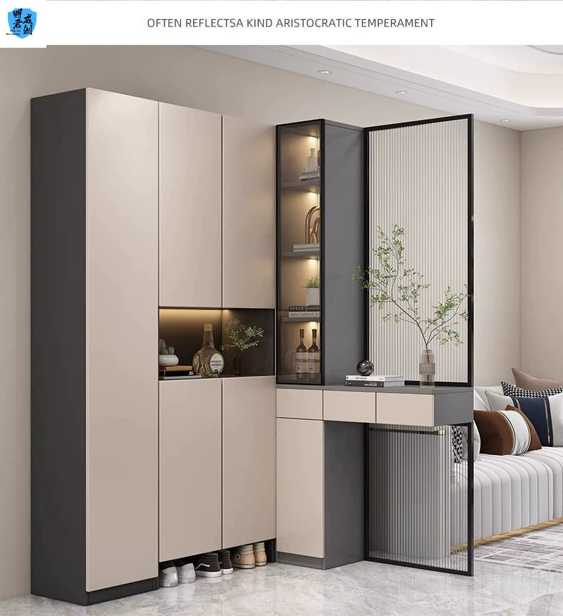 현관 코너 L자형 캐비닛 신발장 일체형 홈 로비 캐비닛 현대적인 미니멀리스트 거실 스크린 파티션 캐비닛