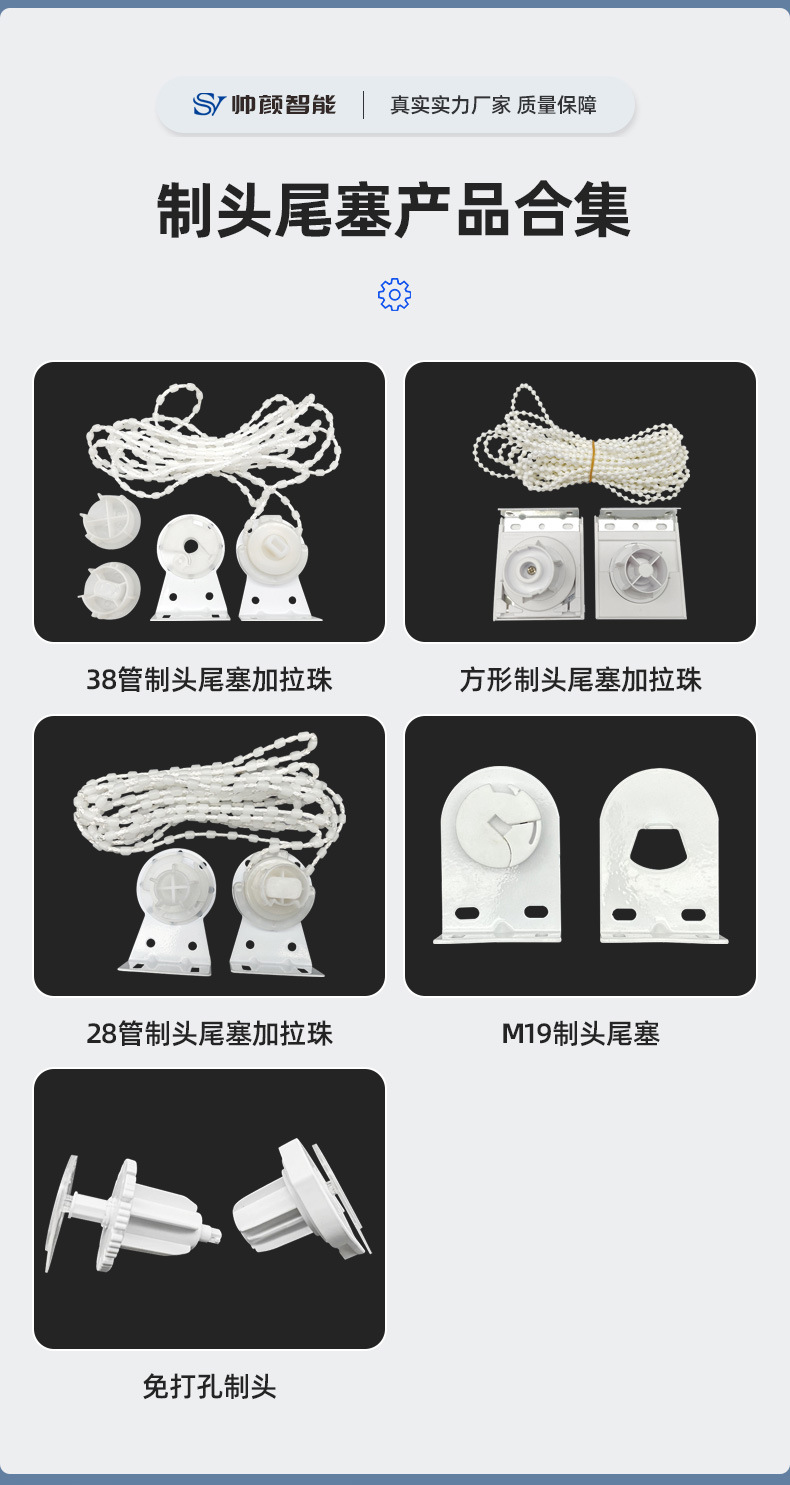 38튜브, 28튜브 헤드 및 테일 플러그, 사각 헤드 및 테일 플러그, 비드 세트 M19 헤드 및 테일 플러그, 펀치 없는 헤드 및 테일 플러그