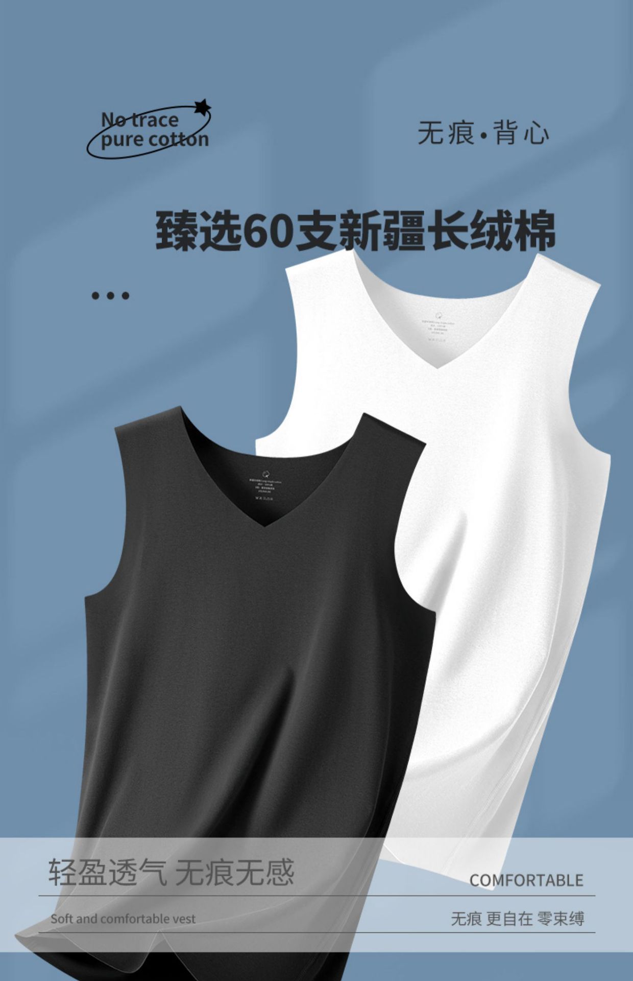 하이 엔드 100% 코튼 심리스 남성 조끼 슬림 피트 와이드 숄더 민소매 2025 뉴 여름 라운드/V 넥 바닥 셔츠스토어 가기
