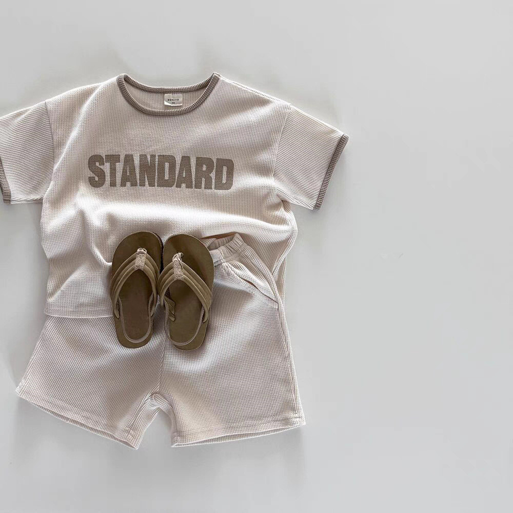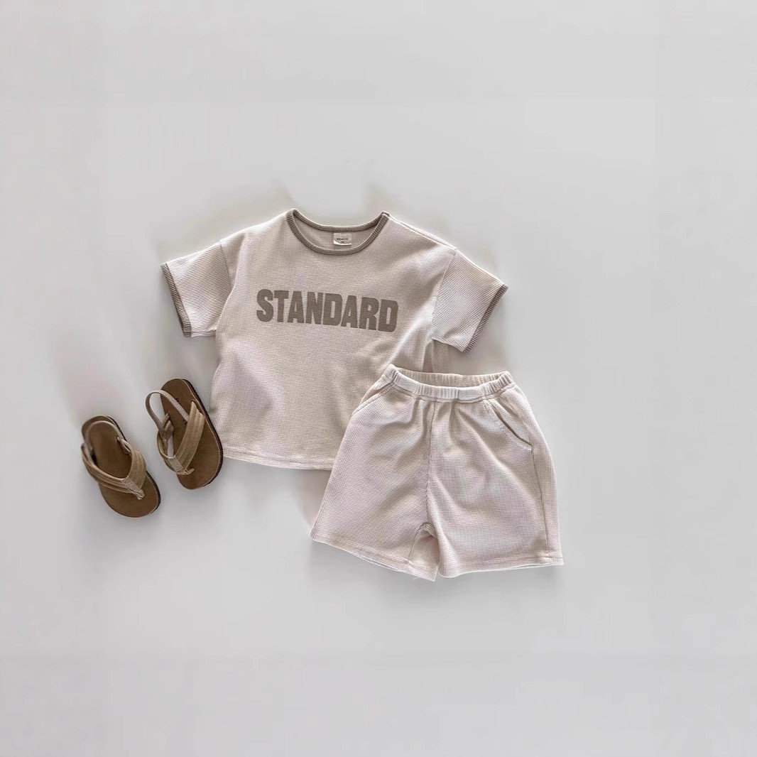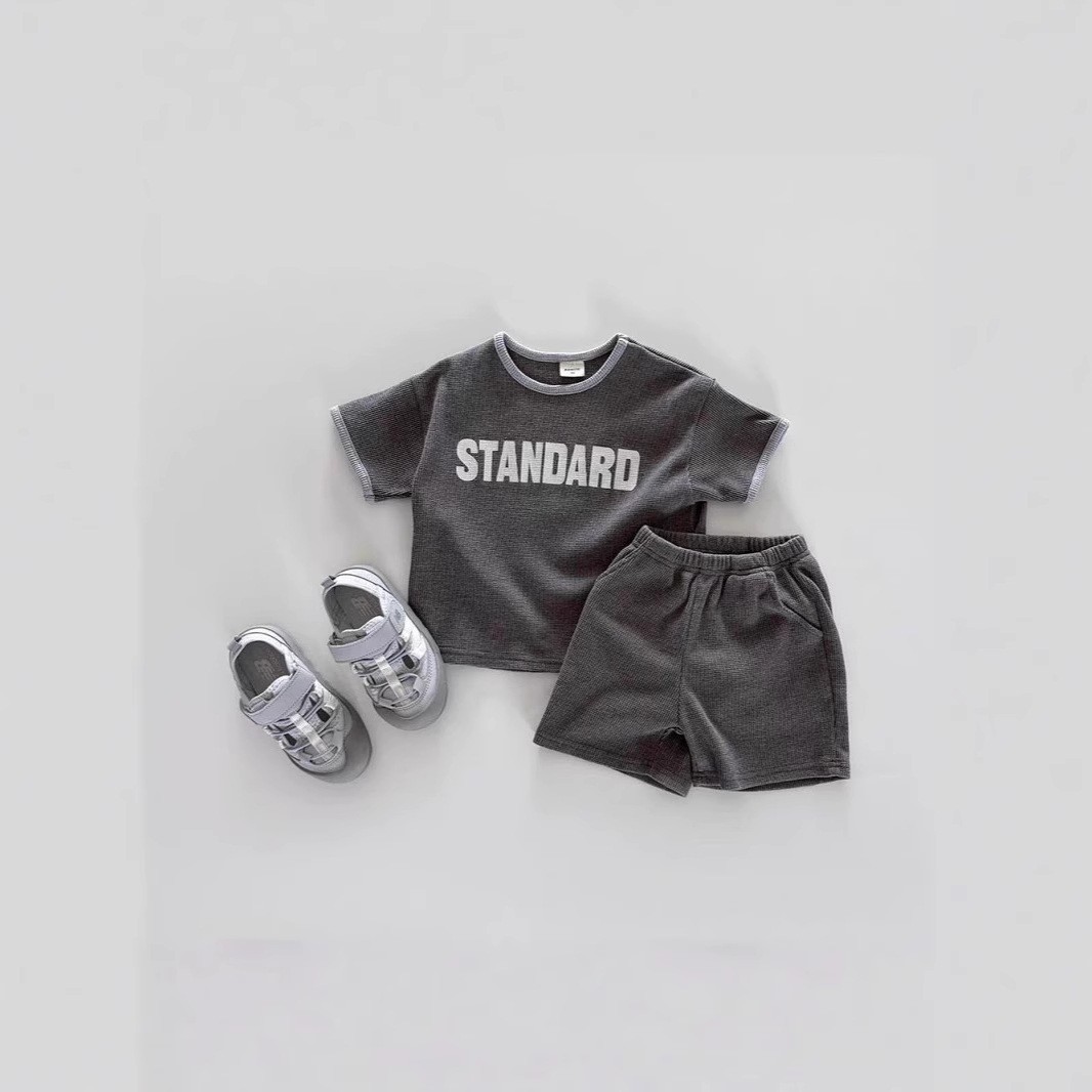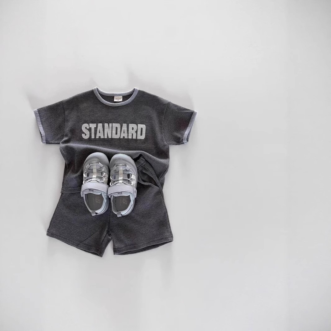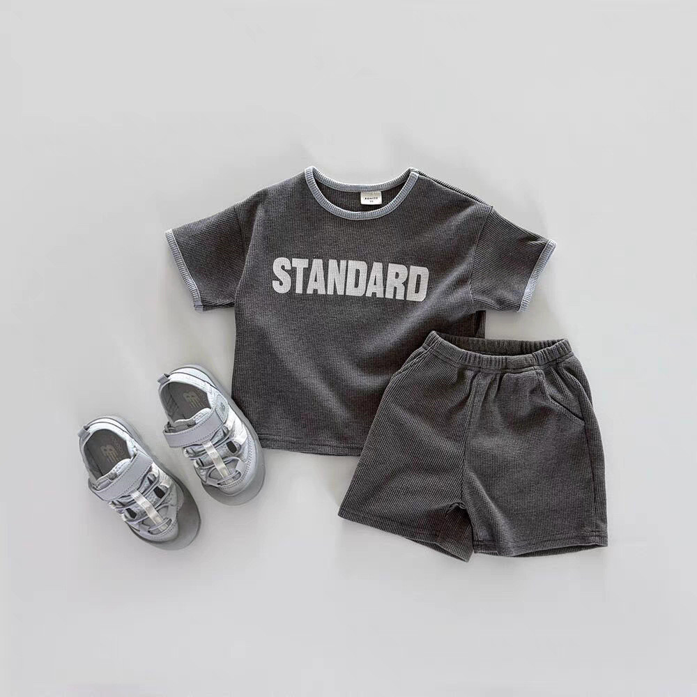 한국 스타일 남아 여름 정장, 멋진 반팔 반바지와 레터링 세트, 패셔너블한 캐주얼 스포츠웨어스토어 가기