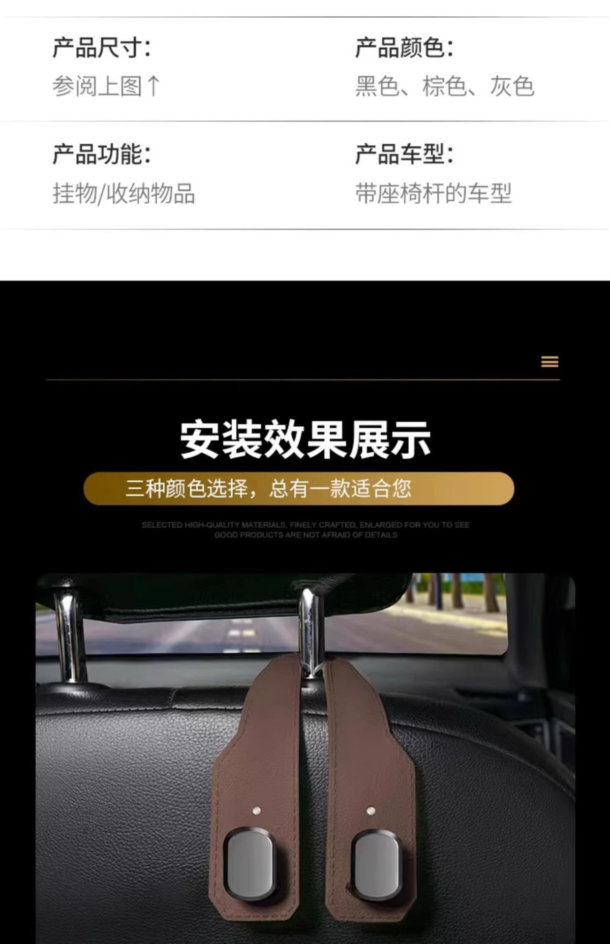 자동차 뒷좌석 보관함, 소형 후크, 자동차 시트 등받이, 자동차 내 다기능 숨겨진 스웨이드 가죽 보관함, 숨겨진 보관함