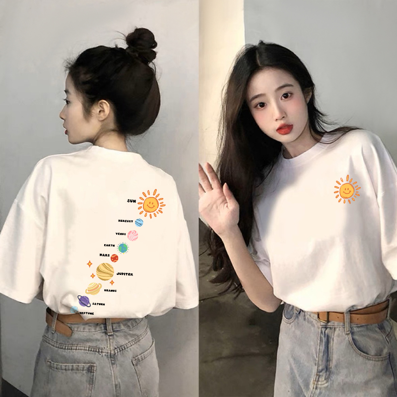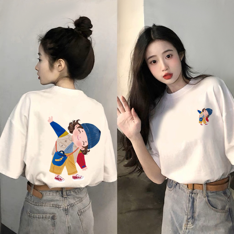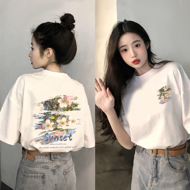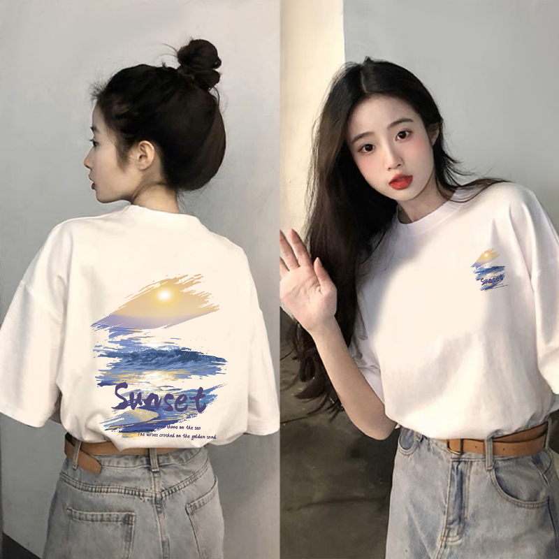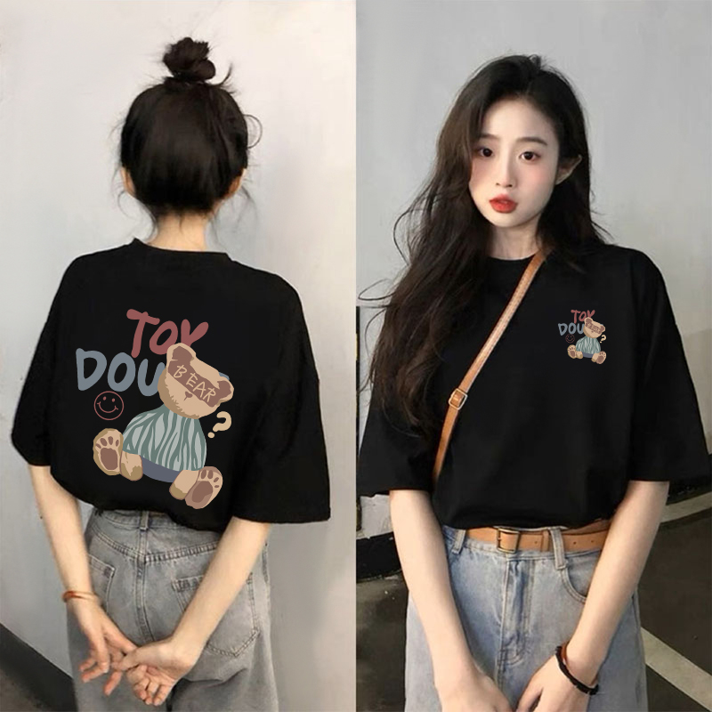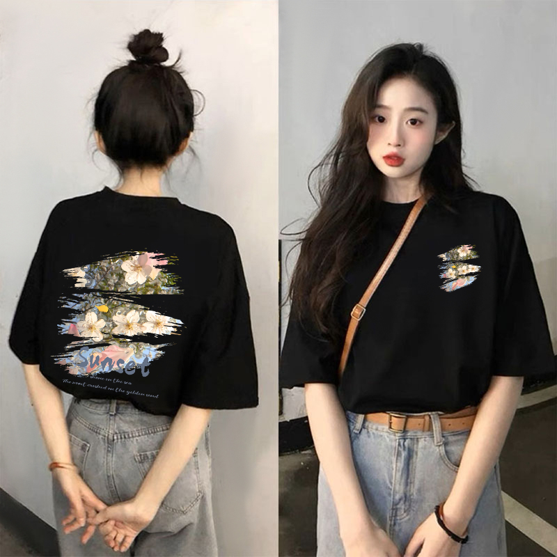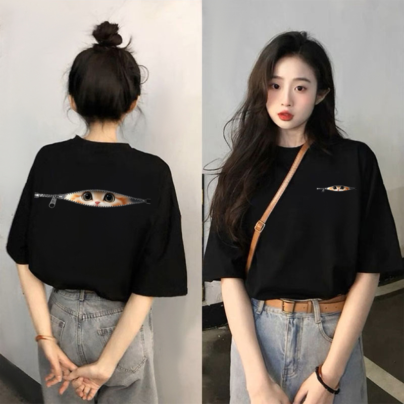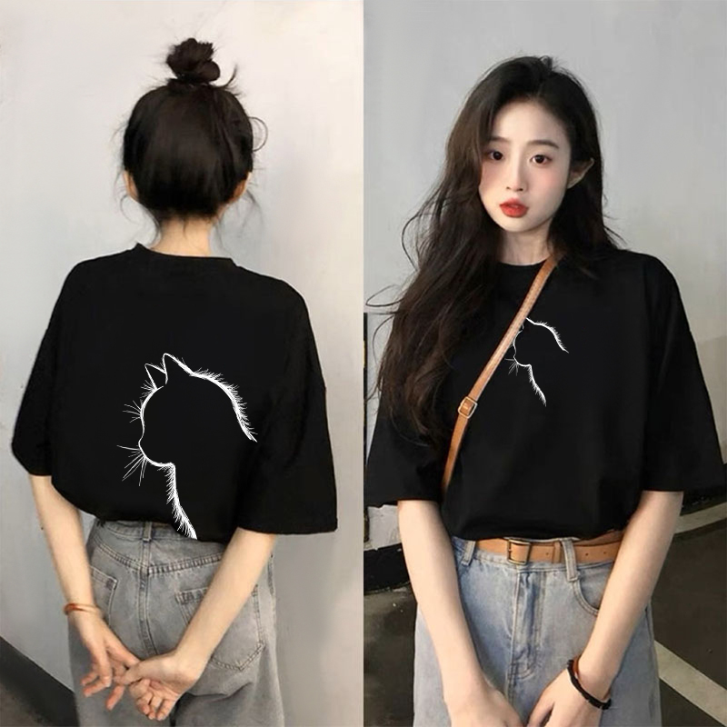 여성을위한 느슨한 검은 색 순수 코튼 반팔 티셔츠 2025 새로운 핫 스타일 여름 디자인 틈새 탑 느슨한 대형스토어 가기