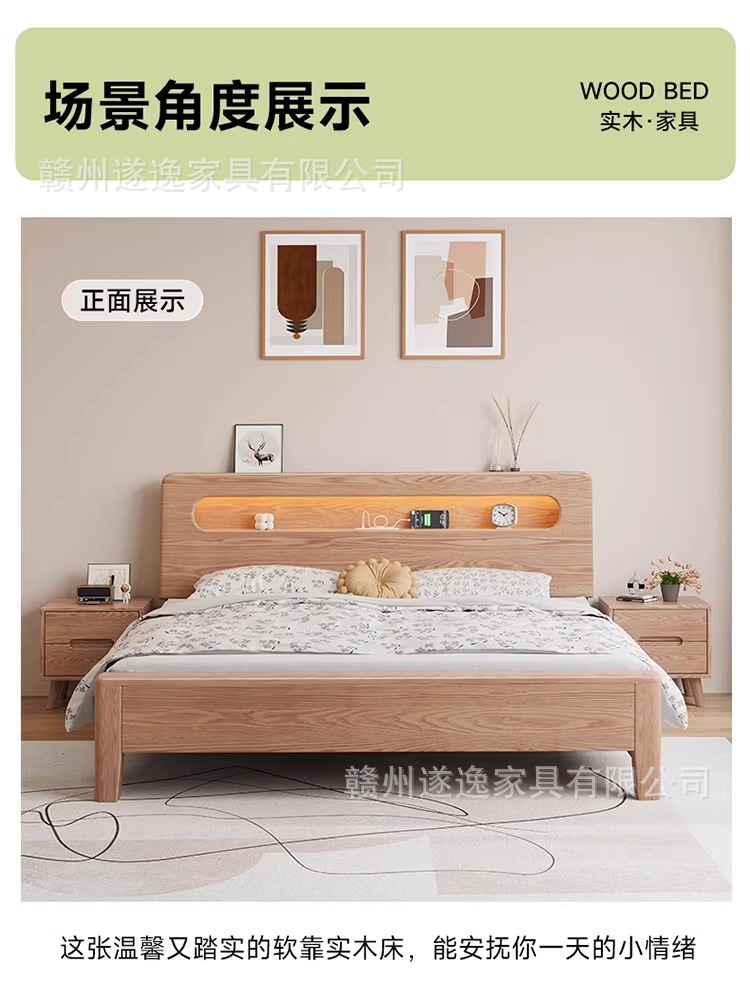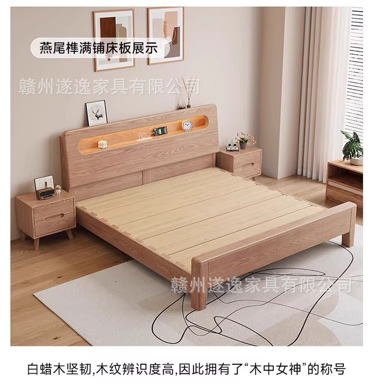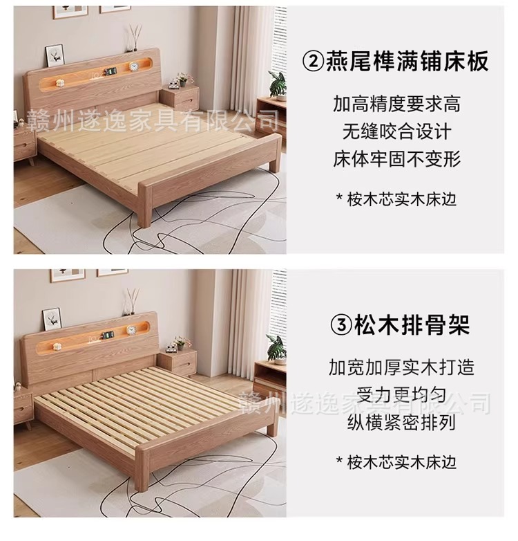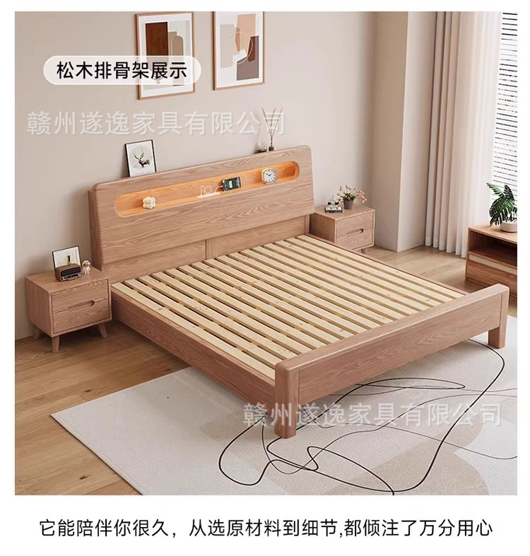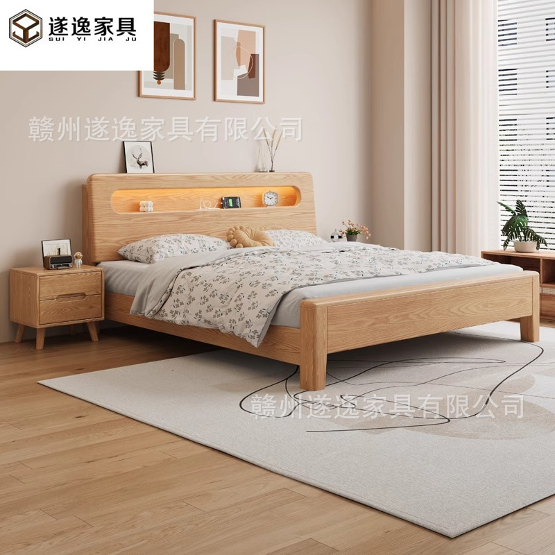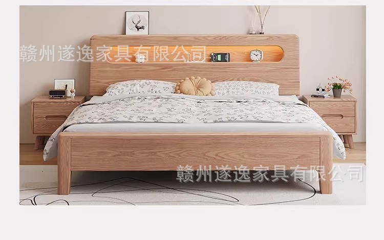 통나무 스타일 애쉬 원목 침대, 모따구조 1.5m 싱글 침대 1.8m 가정용 더블 침대 무소음 침대스토어 가기