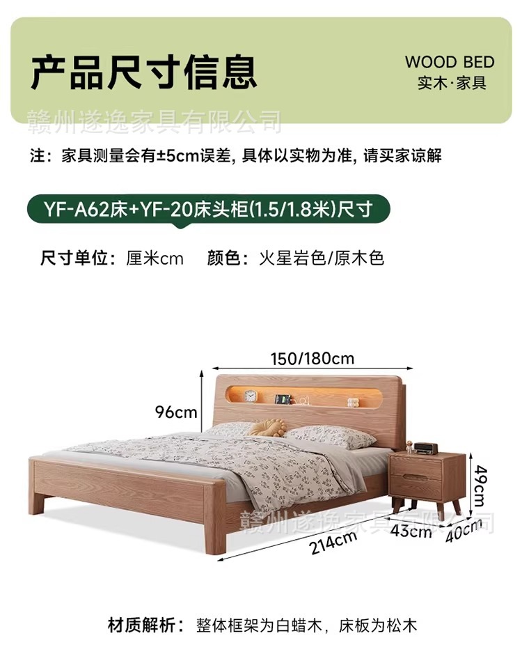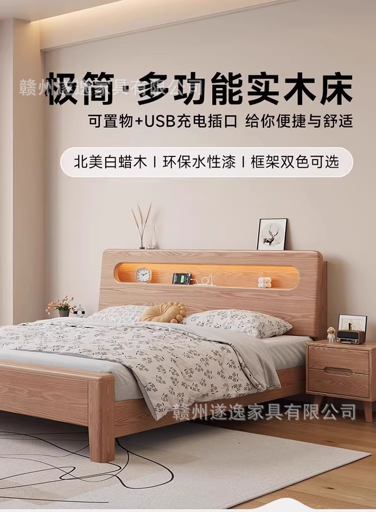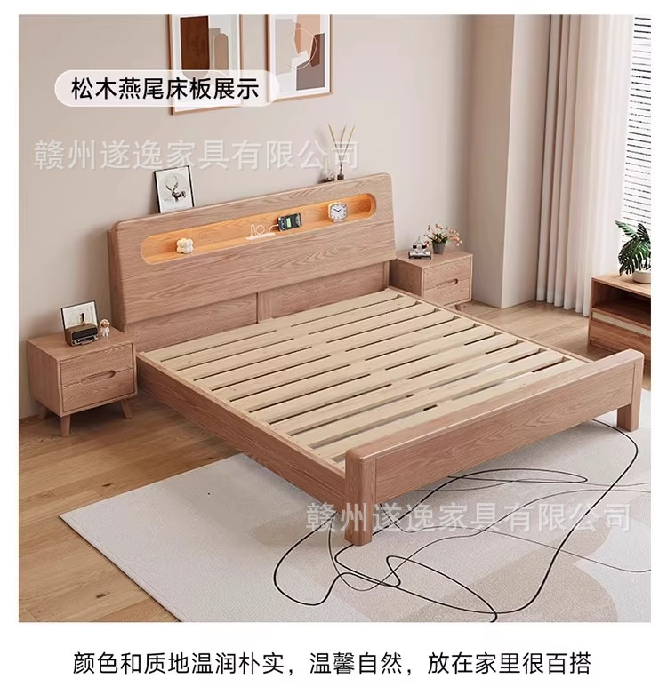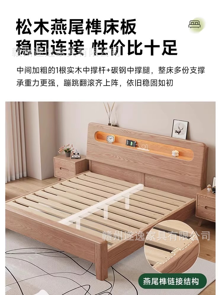 통나무 스타일 애쉬 원목 침대, 모따구조 1.5m 싱글 침대 1.8m 가정용 더블 침대 무소음 침대스토어 가기