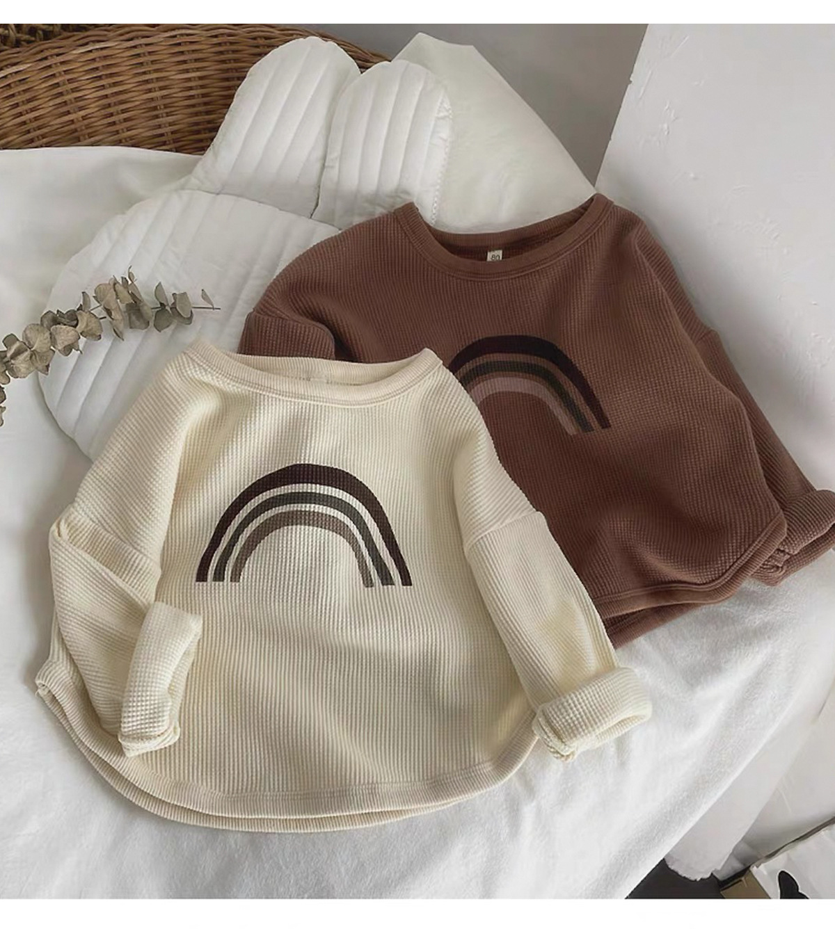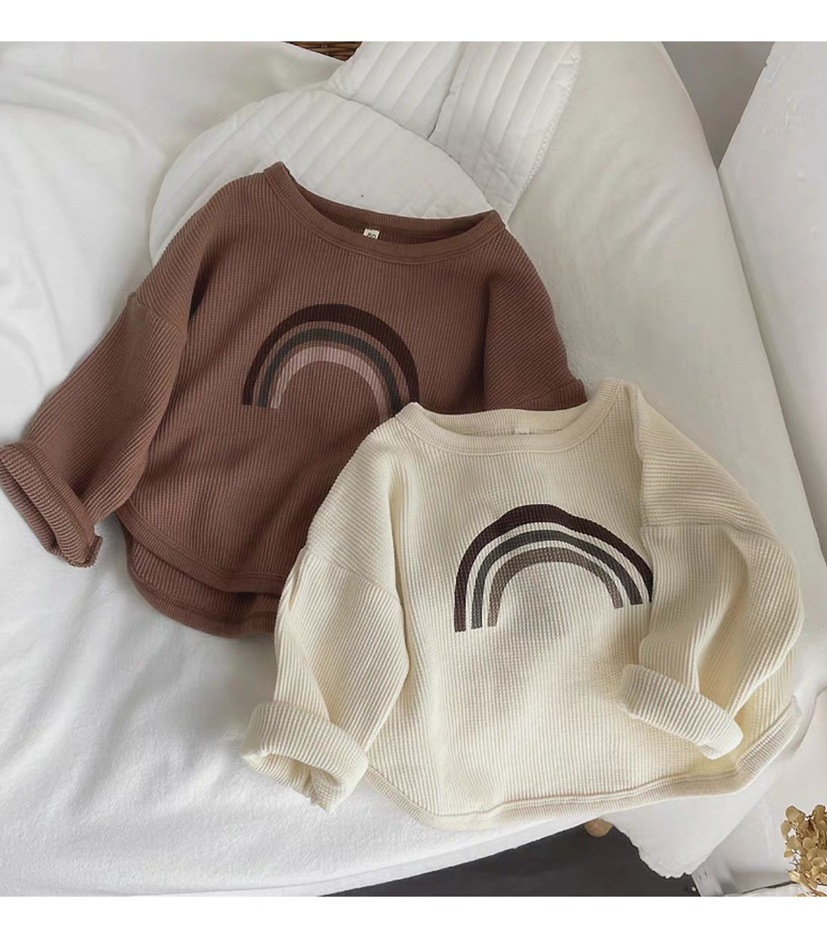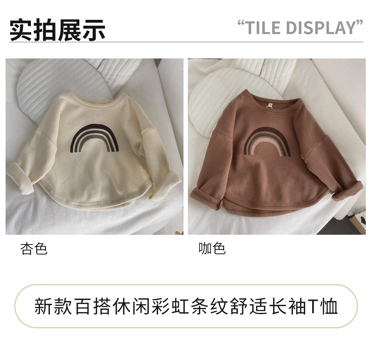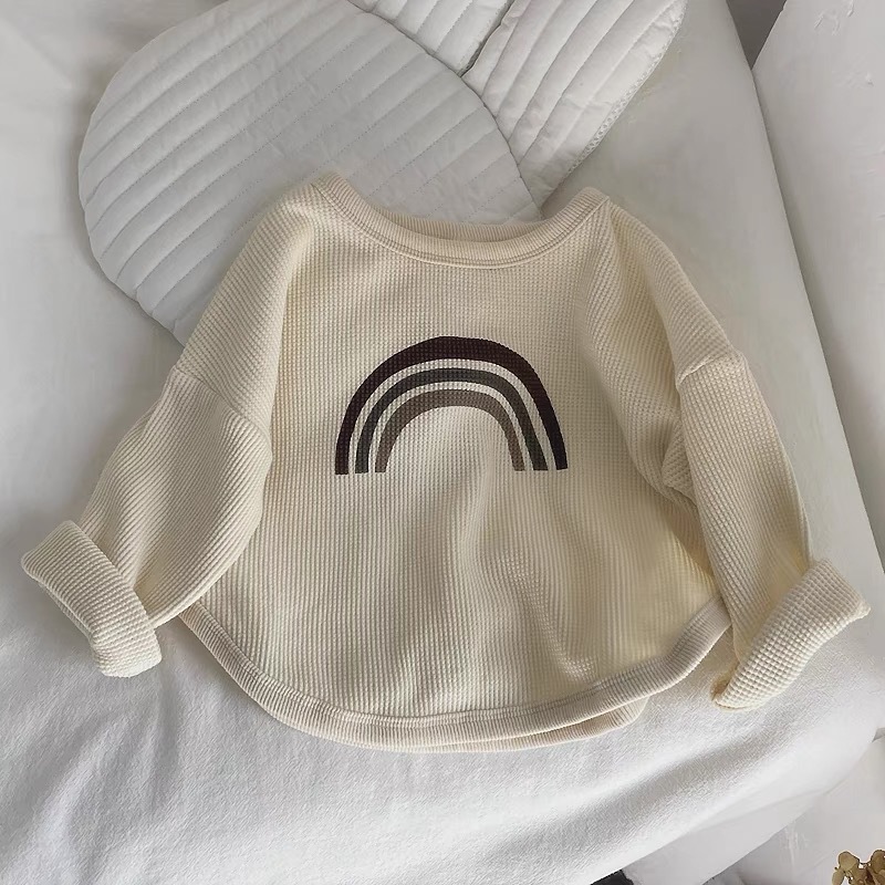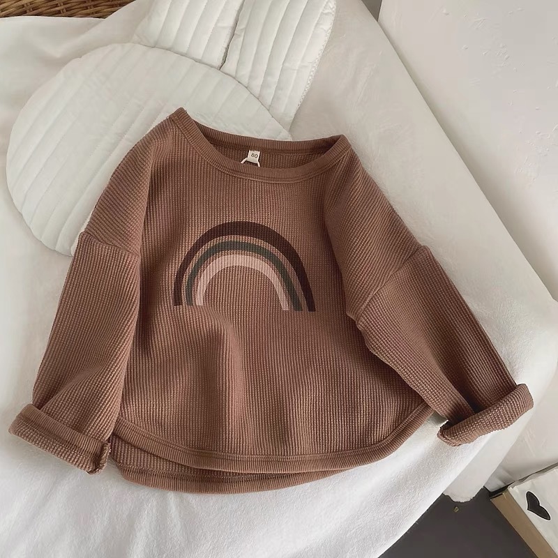인터넷 연예인 와플 ~ 아동용 레인보우 티셔츠 한국 티셔츠 소년 소녀 바닥 셔츠 2025 봄, 가을 긴팔 탑