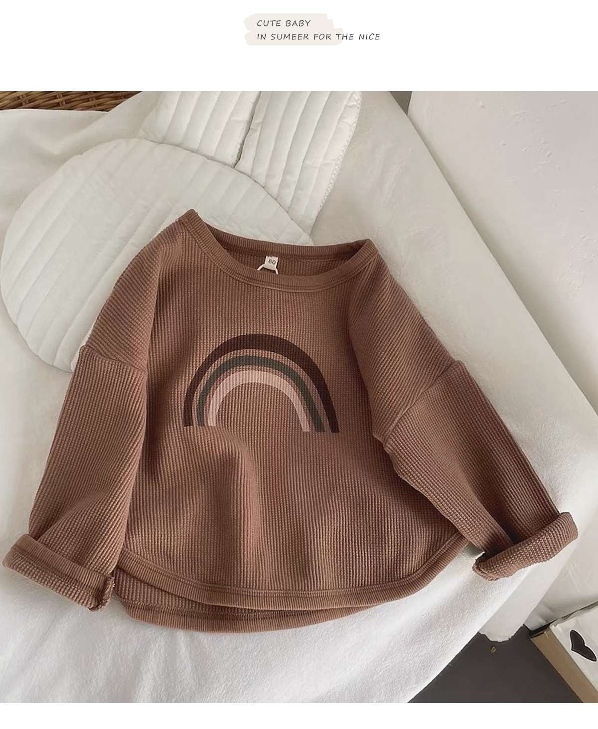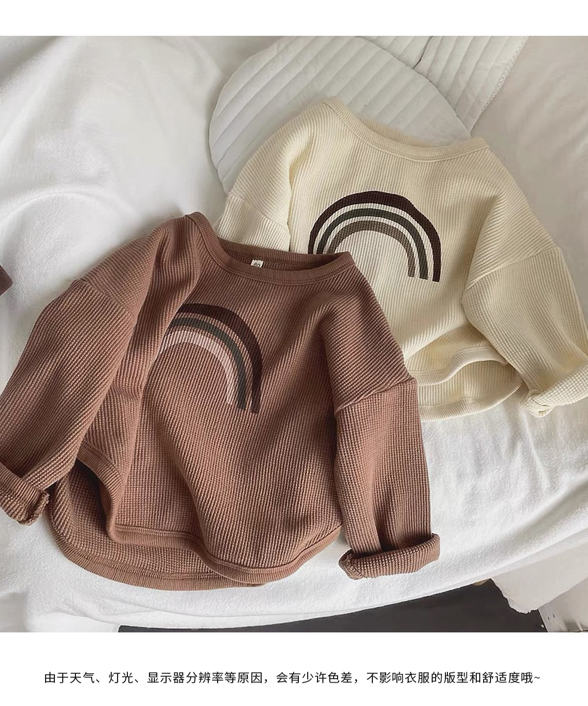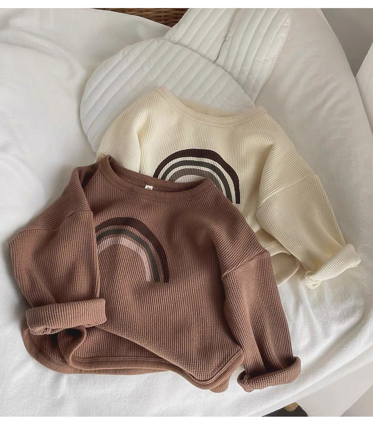 인터넷 연예인 와플 ~ 아동용 레인보우 티셔츠 한국 티셔츠 소년 소녀 바닥 셔츠 2025 봄, 가을 긴팔 탑