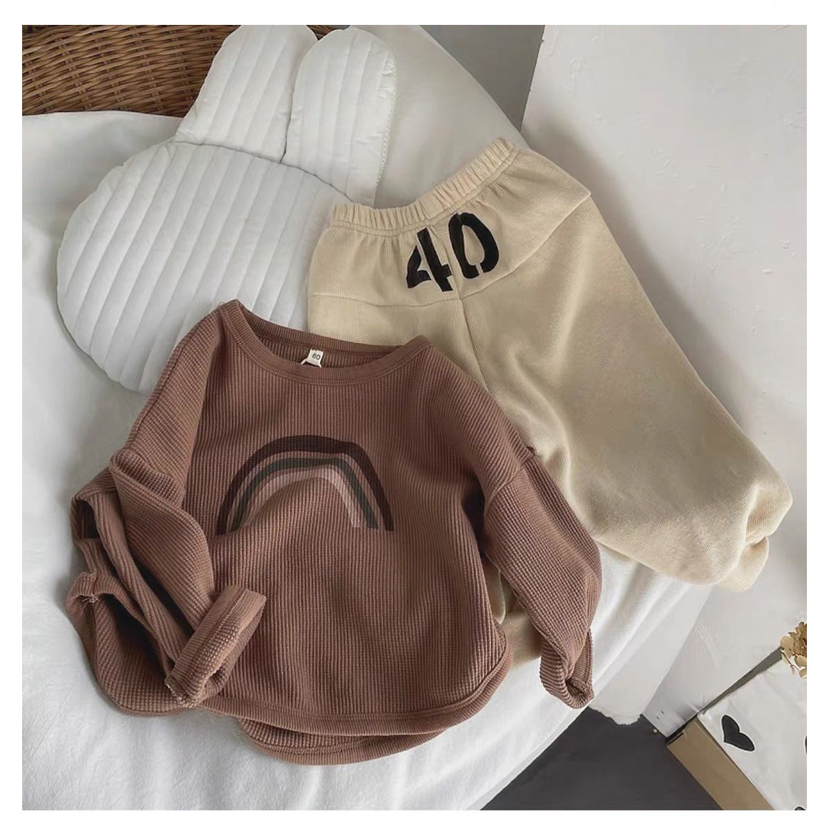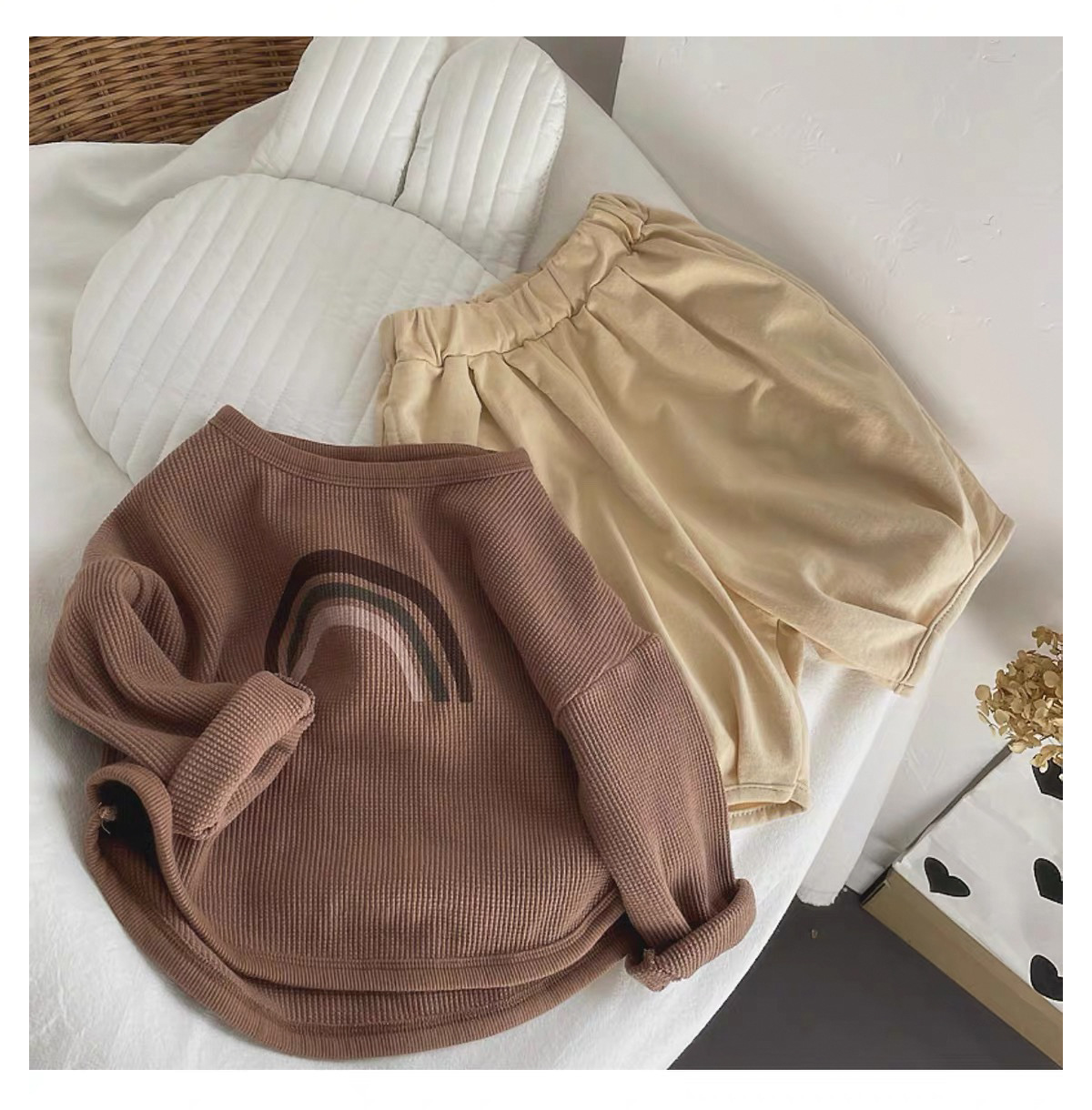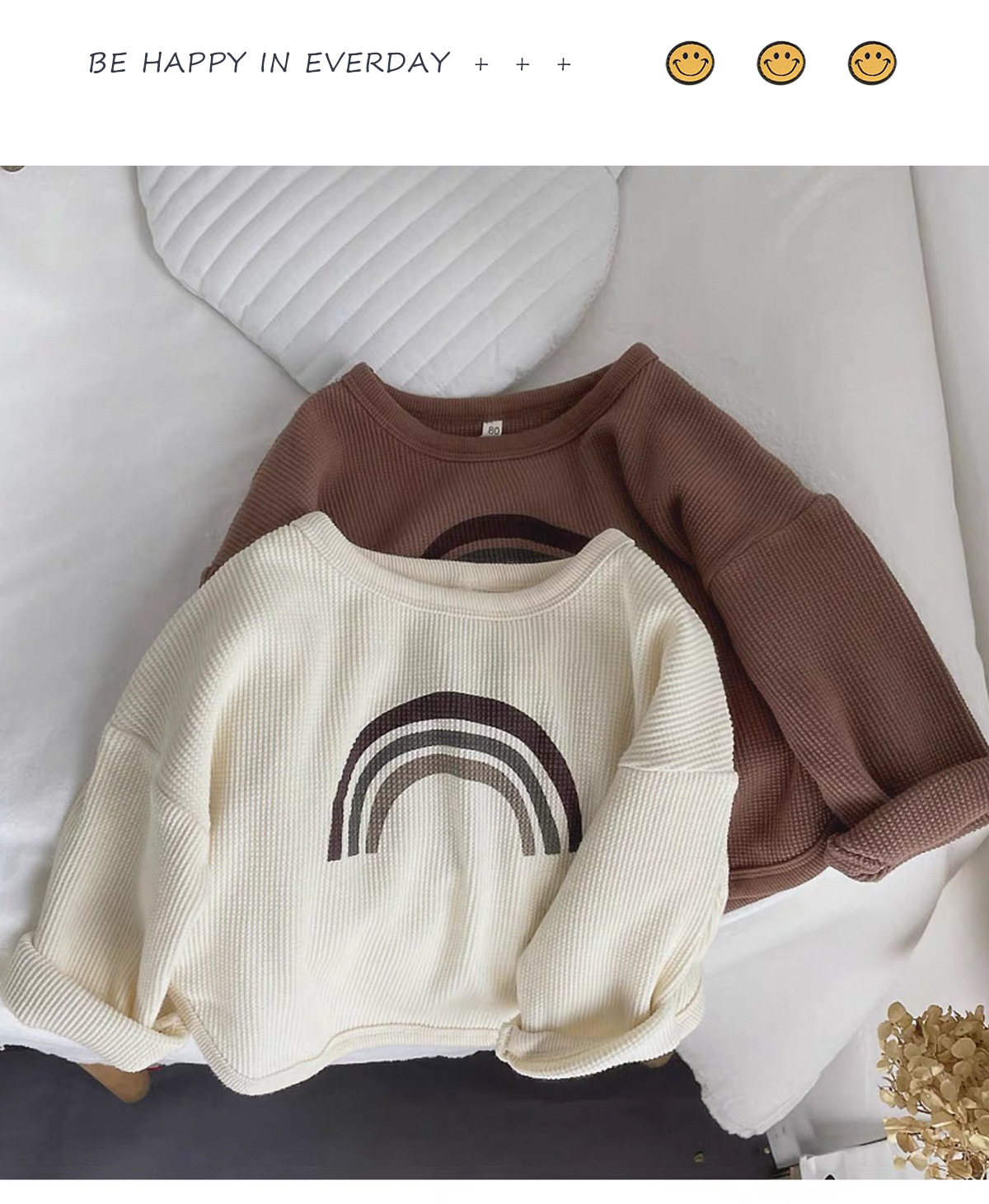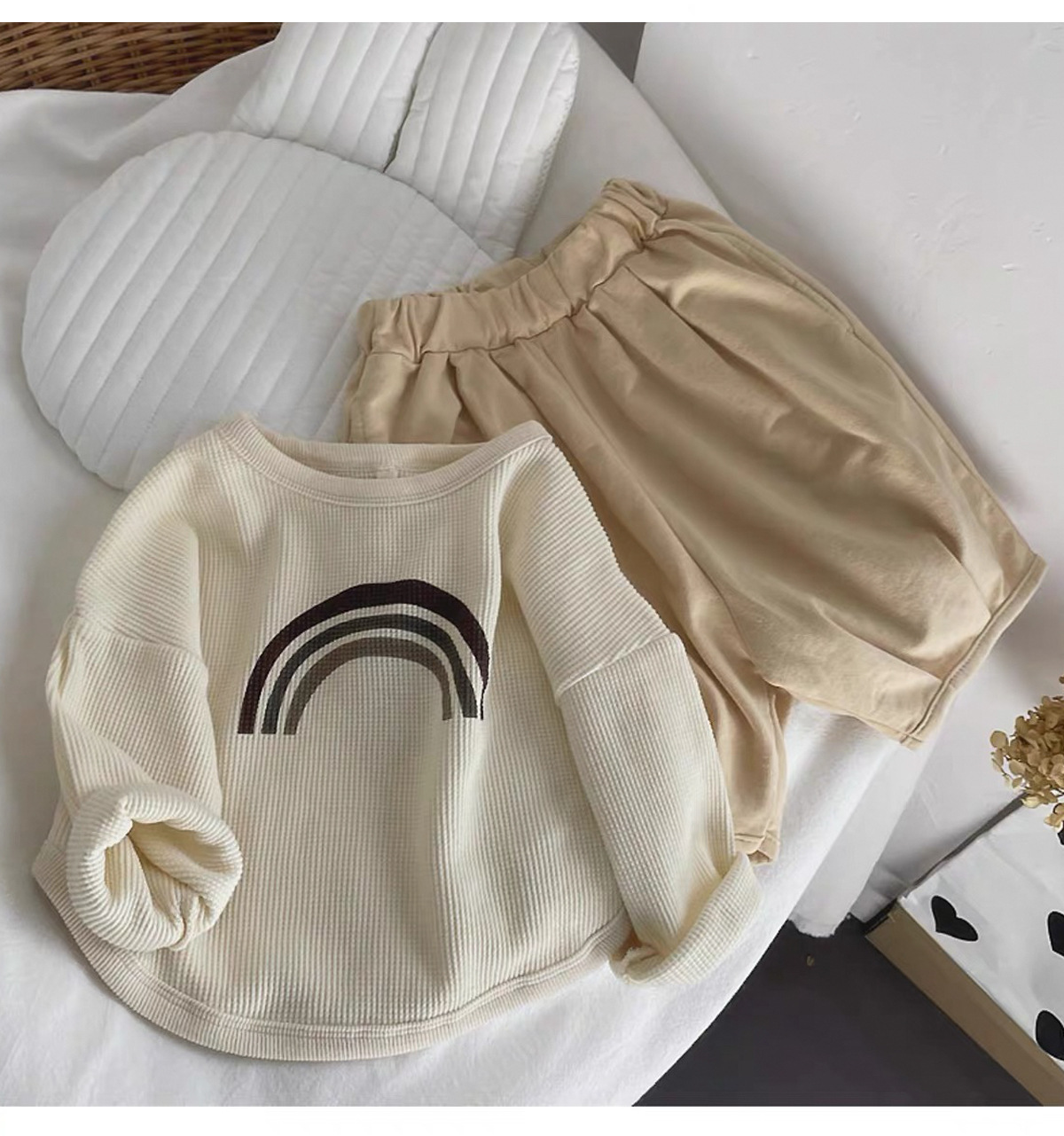 인터넷 연예인 와플 ~ 아동용 레인보우 티셔츠 한국 티셔츠 소년 소녀 바닥 셔츠 2025 봄, 가을 긴팔 탑