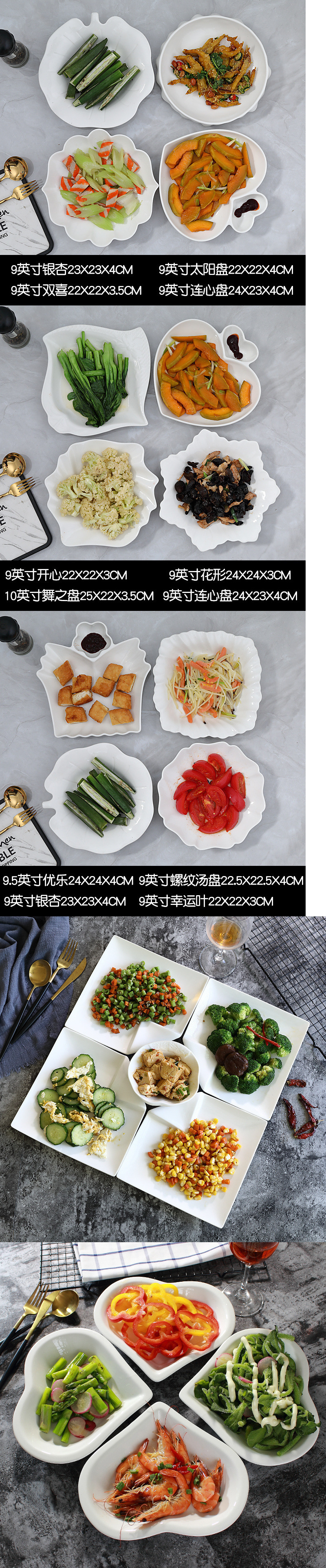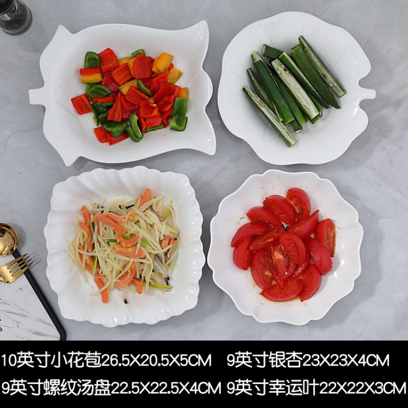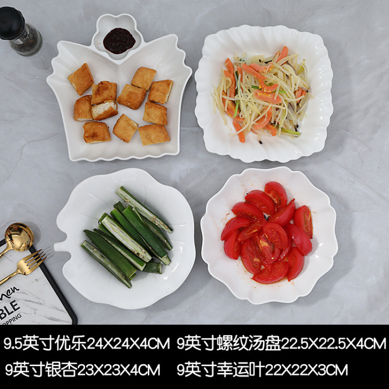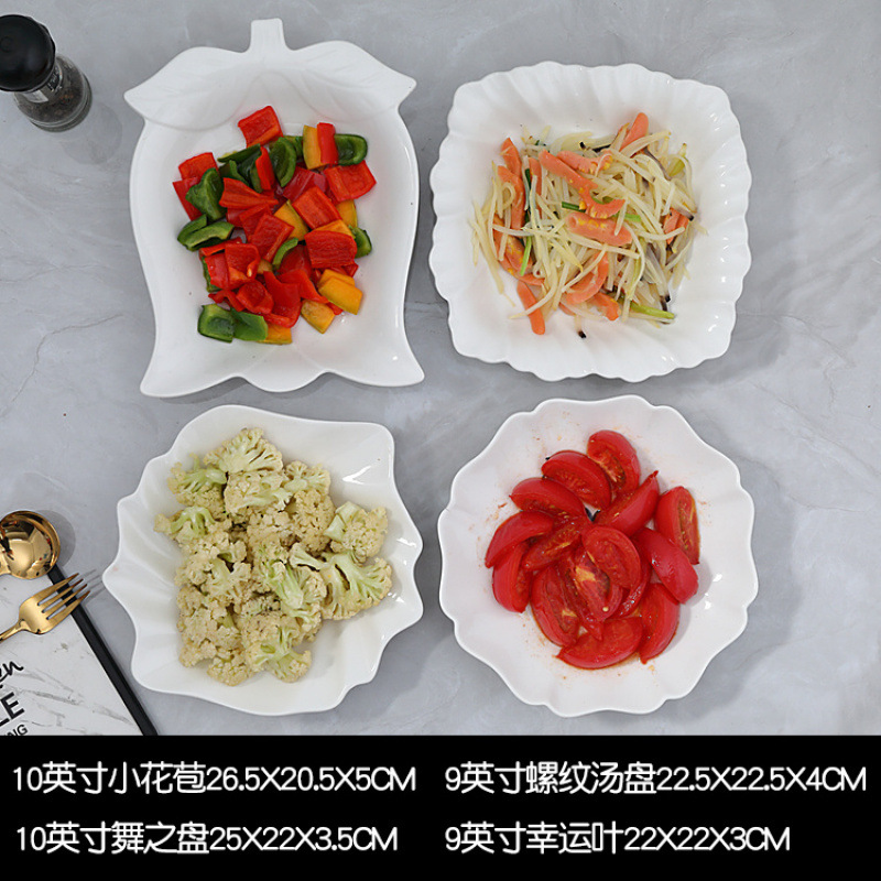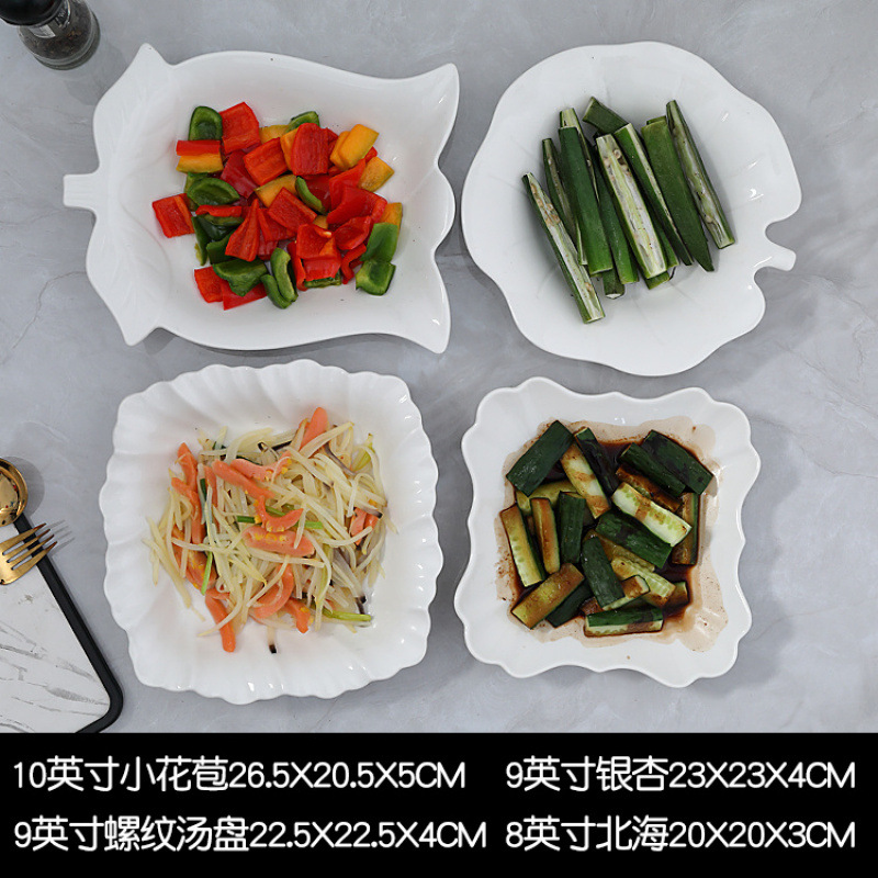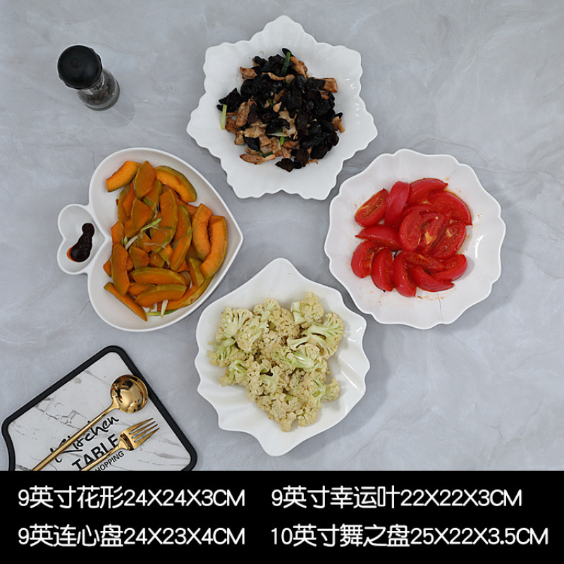접시, 도자기 가정용 접시, 순백색 서양식 접시, 과일 스낵 접시, 전자레인지 아침 식사 접시, 창작 식기스토어 가기