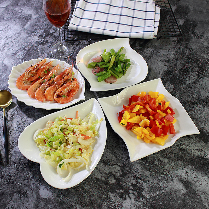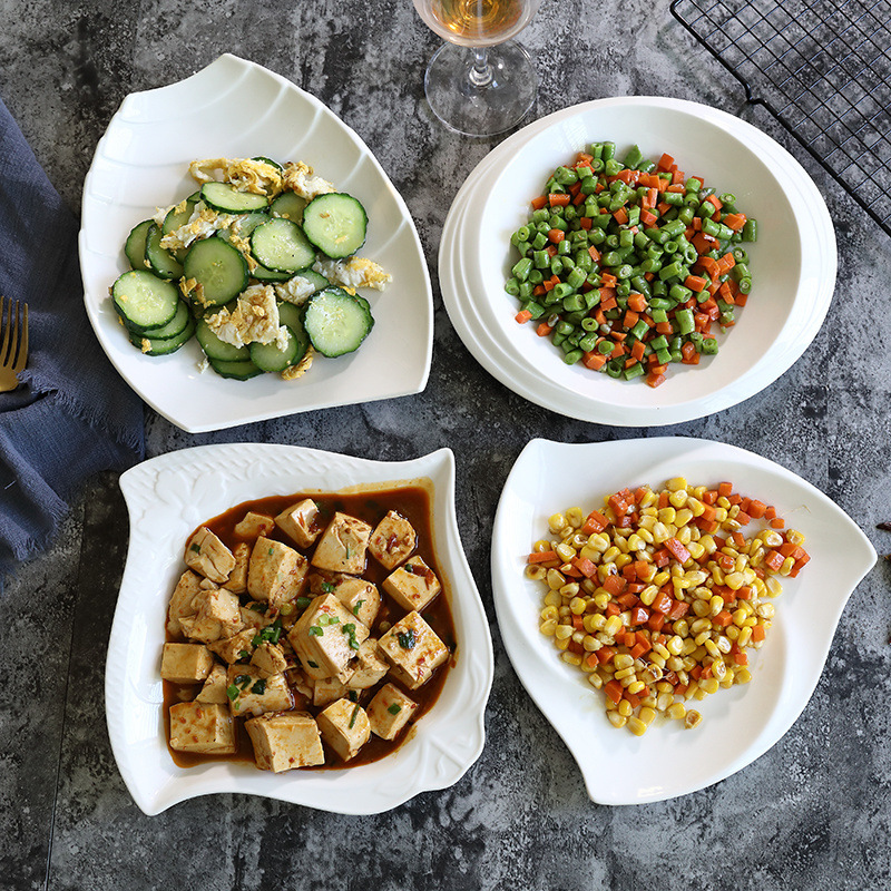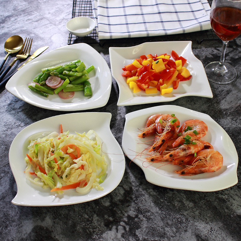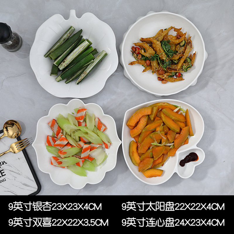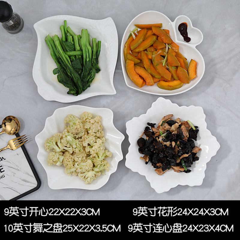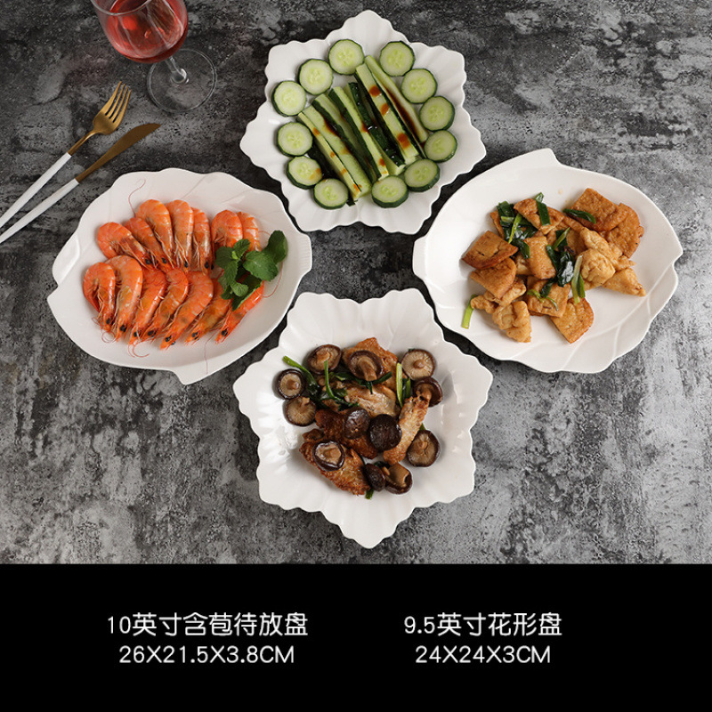 접시, 도자기 가정용 접시, 순백색 서양식 접시, 과일 스낵 접시, 전자레인지 아침 식사 접시, 창작 식기스토어 가기