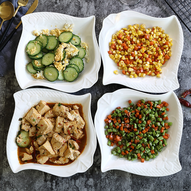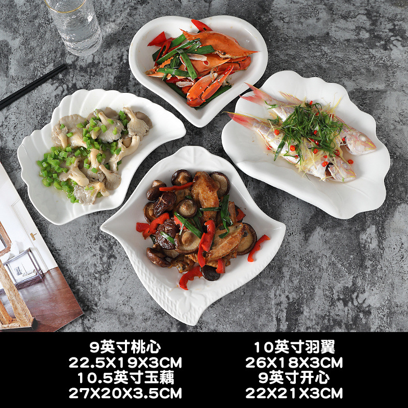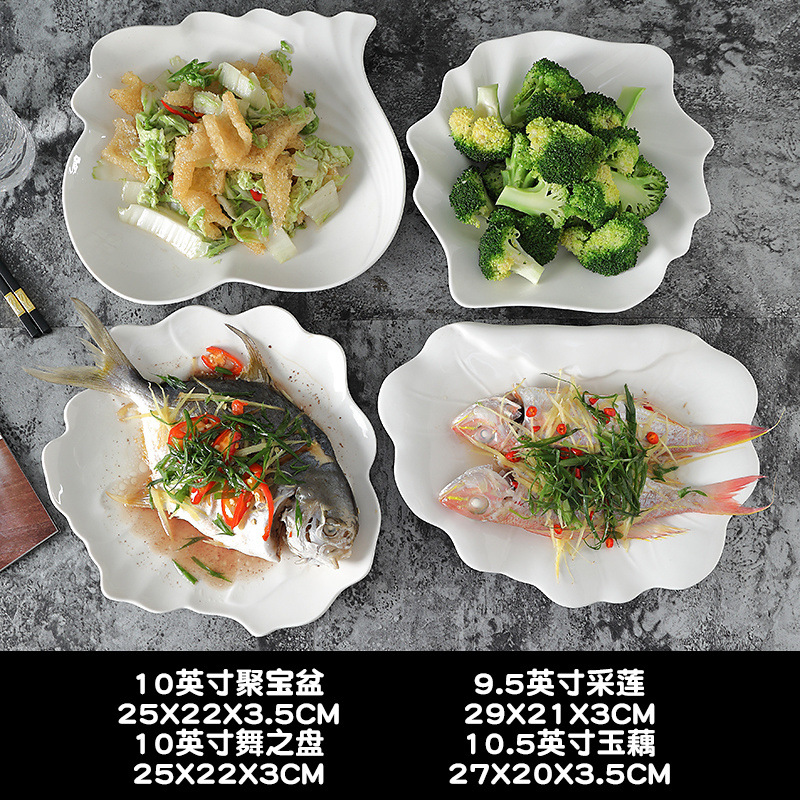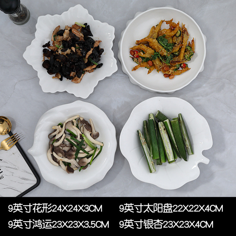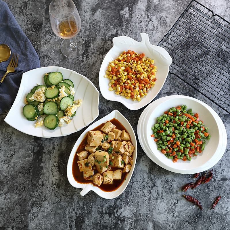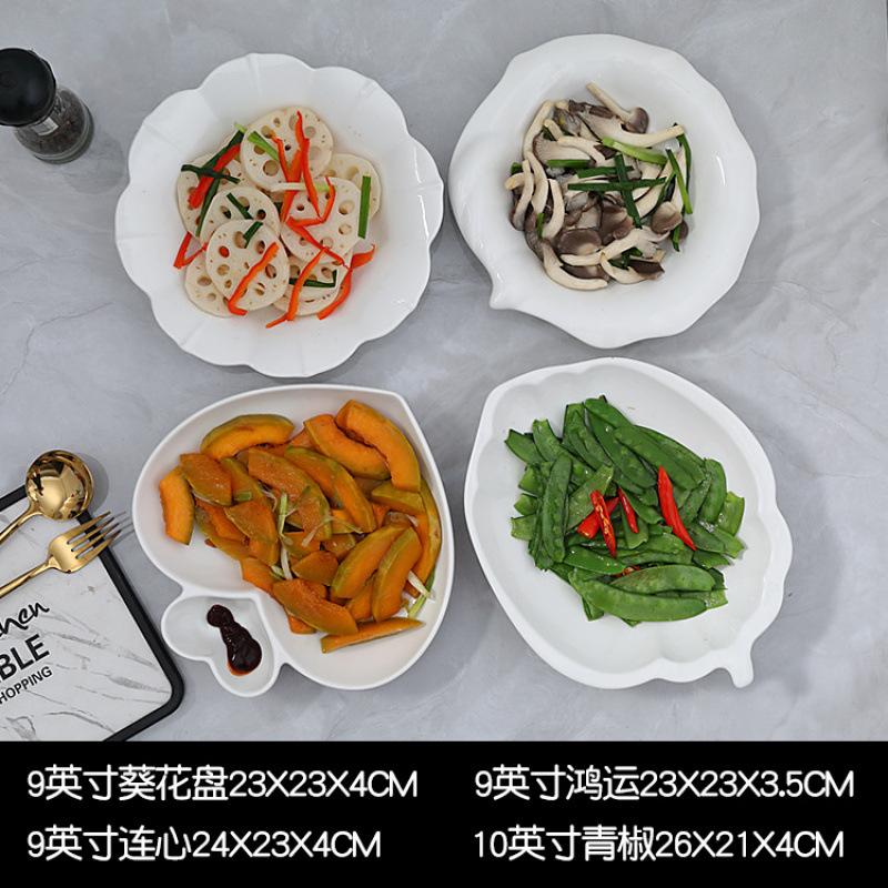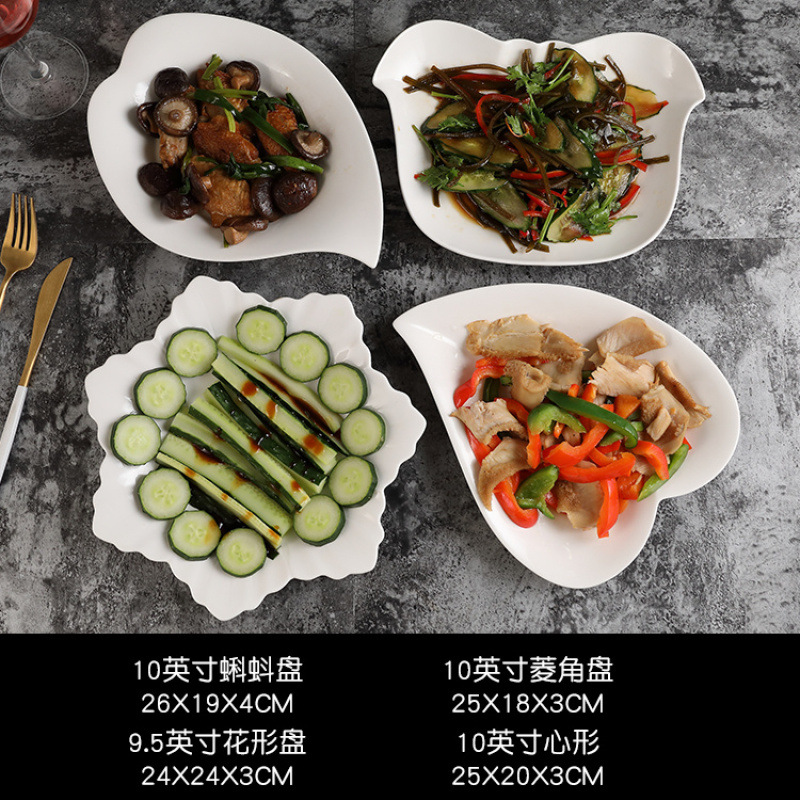 접시, 도자기 가정용 접시, 순백색 서양식 접시, 과일 스낵 접시, 전자레인지 아침 식사 접시, 창작 식기스토어 가기