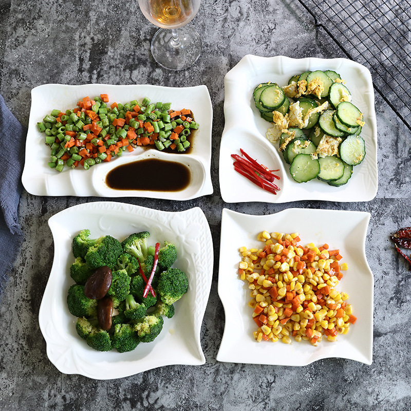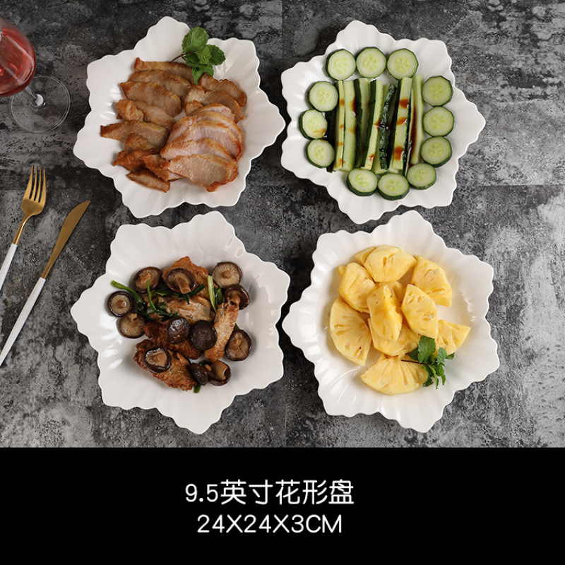 접시, 도자기 가정용 접시, 순백색 서양식 접시, 과일 스낵 접시, 전자레인지 아침 식사 접시, 창작 식기
