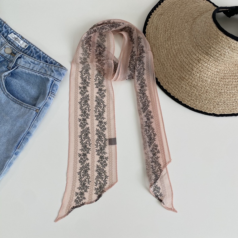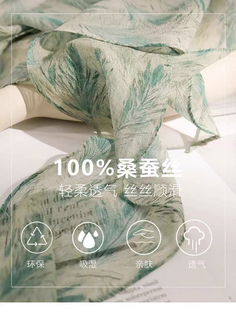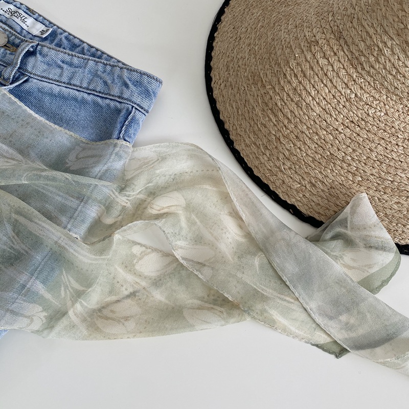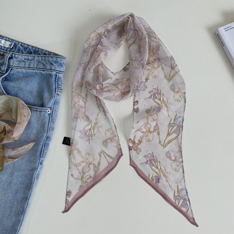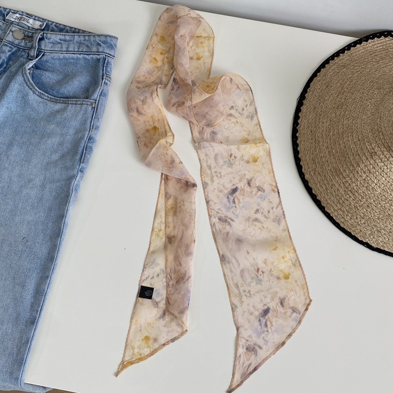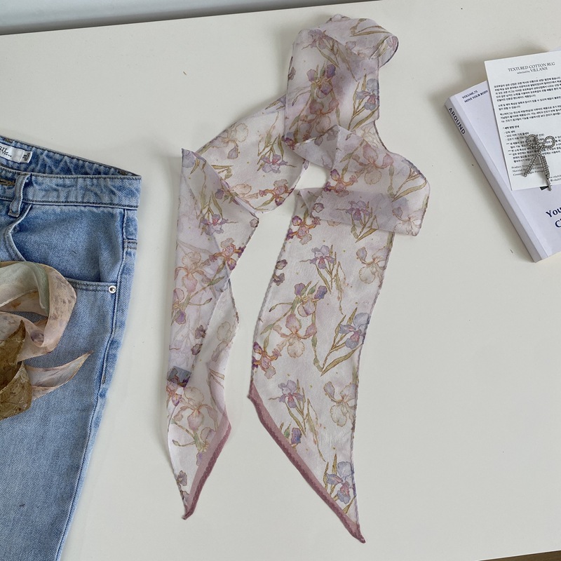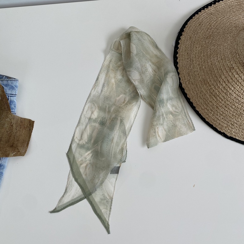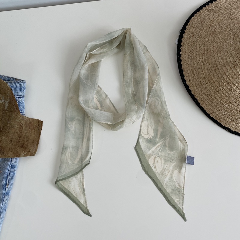 봄 여름 가볍고 얇은 100% 뽕나무 실크 여성용 긴 스카프, 조젯 스카프, 리본, 셔츠, 머리띠, 선물스토어 가기
