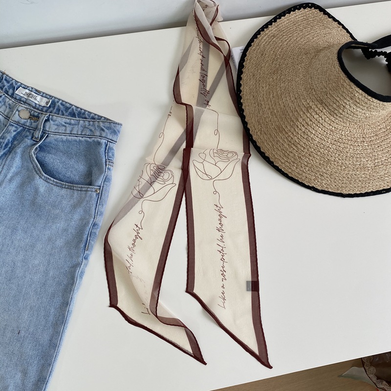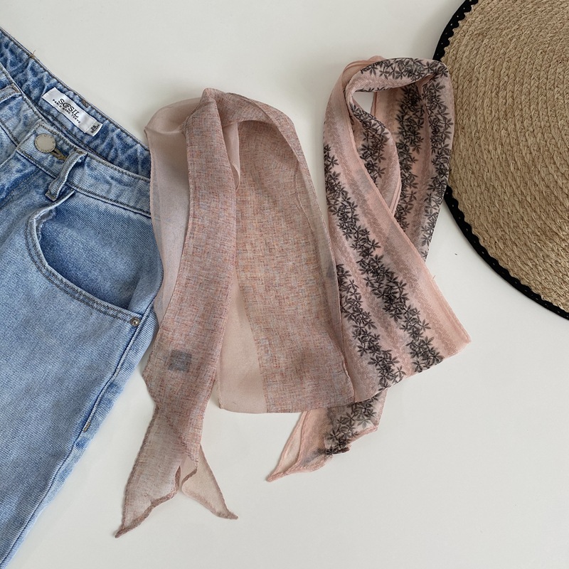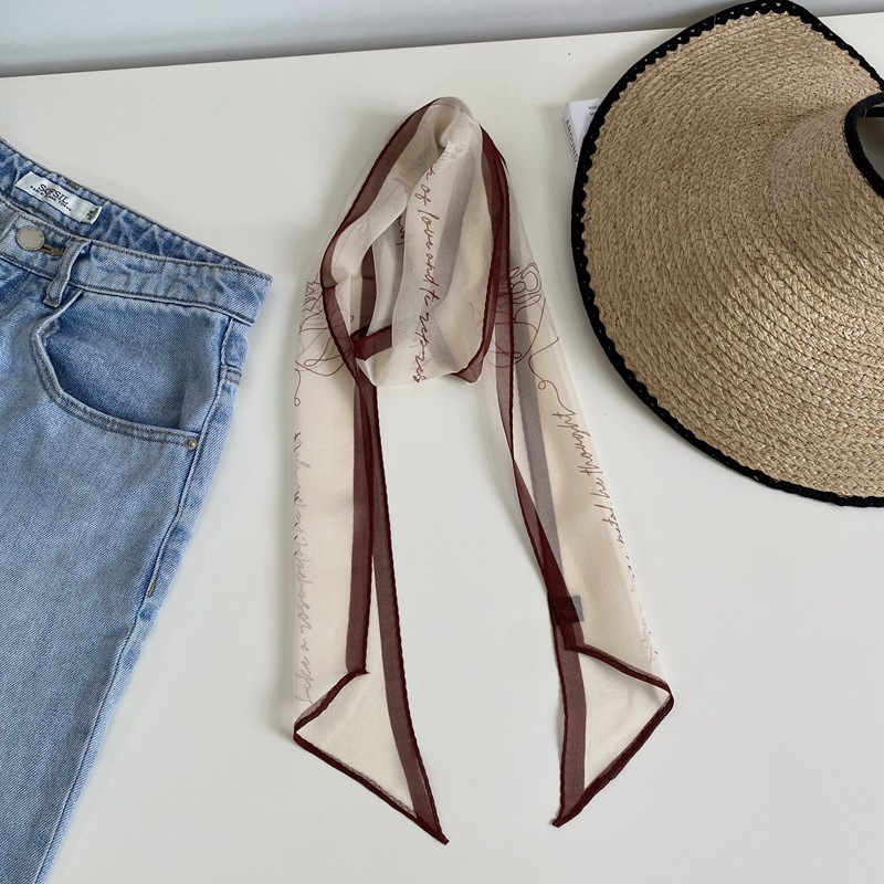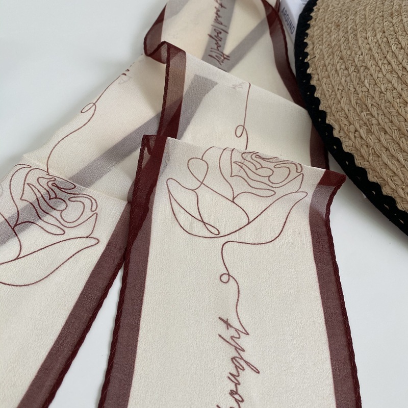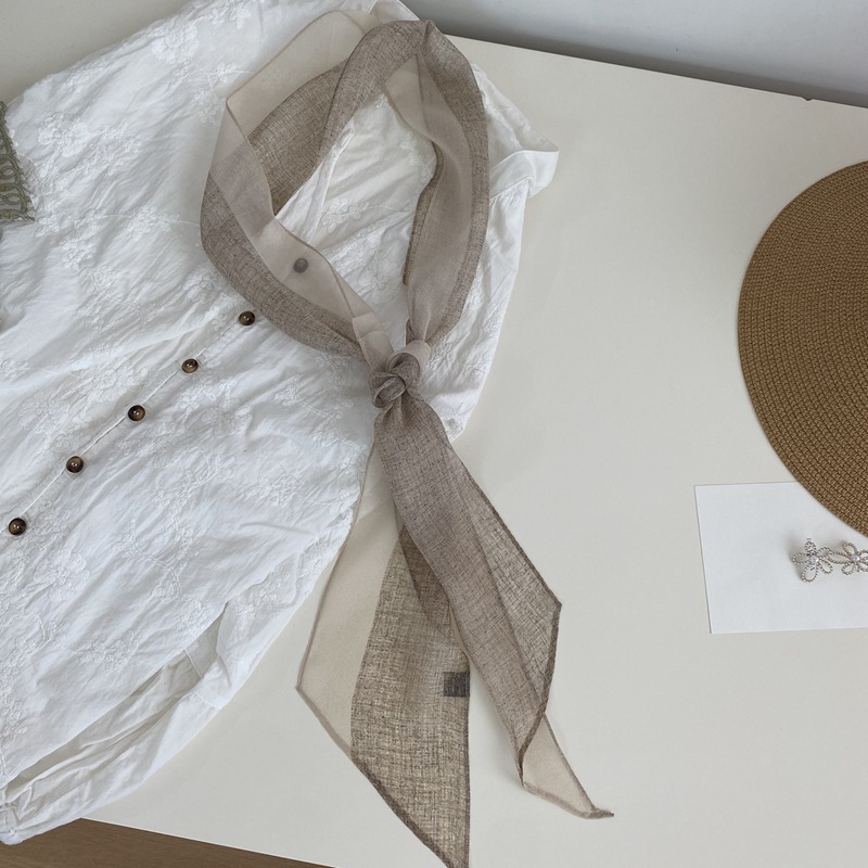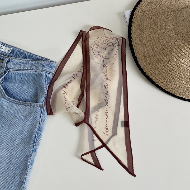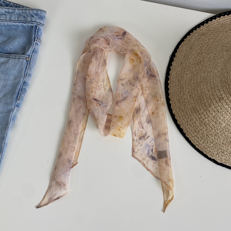 봄 여름 가볍고 얇은 100% 뽕나무 실크 여성용 긴 스카프, 조젯 스카프, 리본, 셔츠, 머리띠, 선물