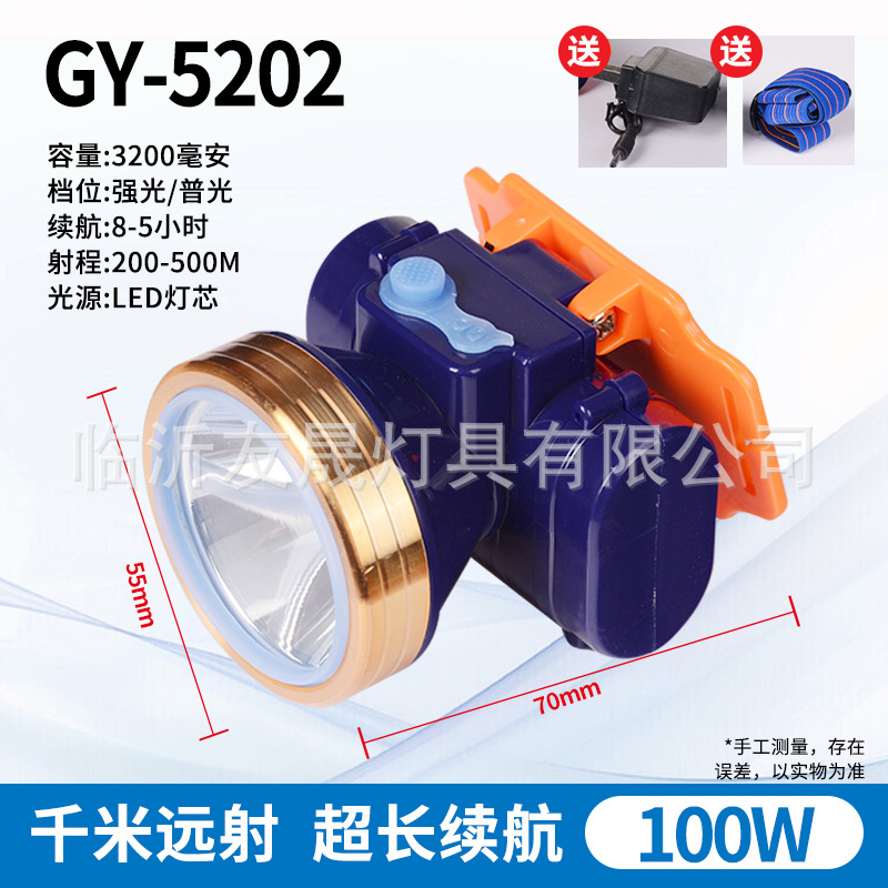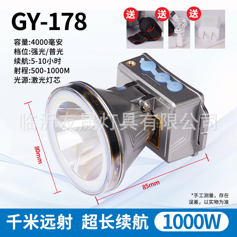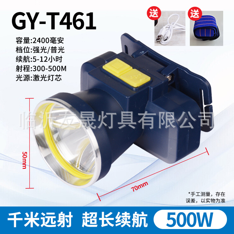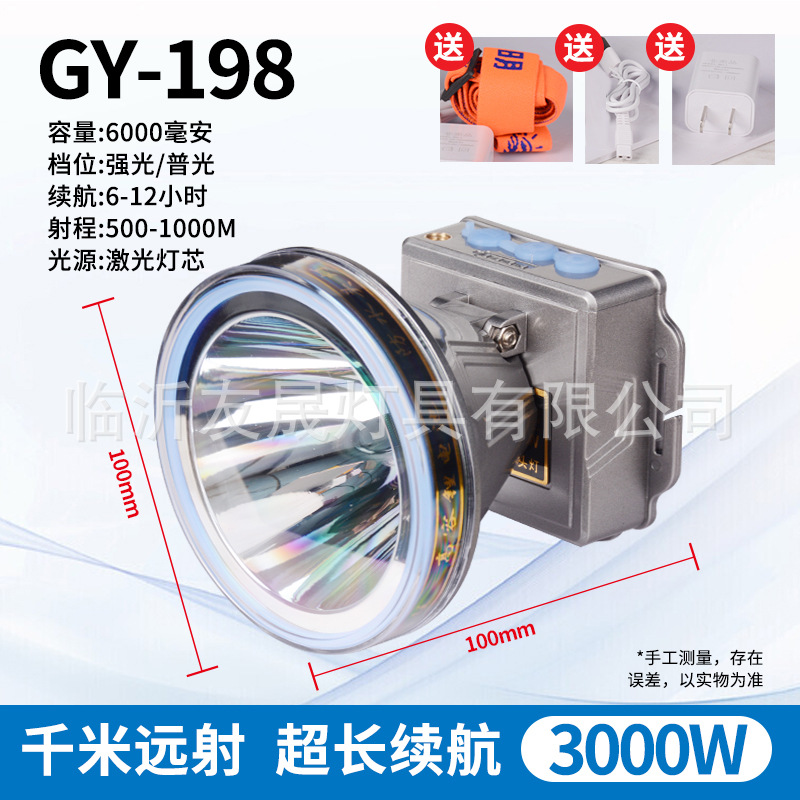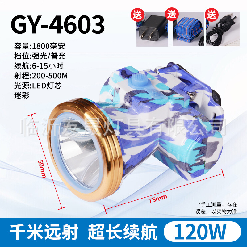 Geyuan 고출력 야외 야간 낚시 헤드 장착형 손전등 긴 수명 리튬 전기 레이저 총 헤드 라이트