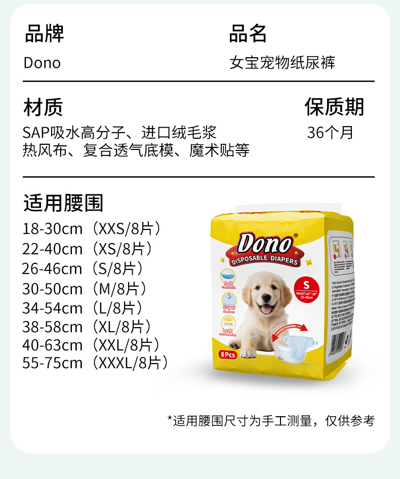 DONO 개 기저귀 애완 동물 생리 바지 암컷 개 아줌마 수건 수컷 개 기저귀 2025 비 성장 일기스토어 가기