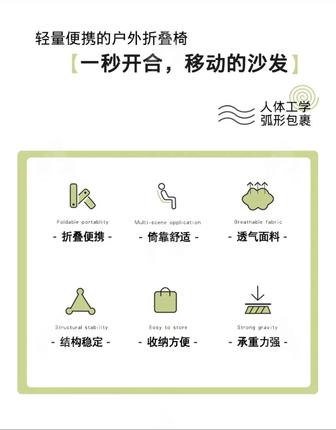 • 녹색 [로우백 스타일] 두껍고 튼튼하며 보관 가방 포함