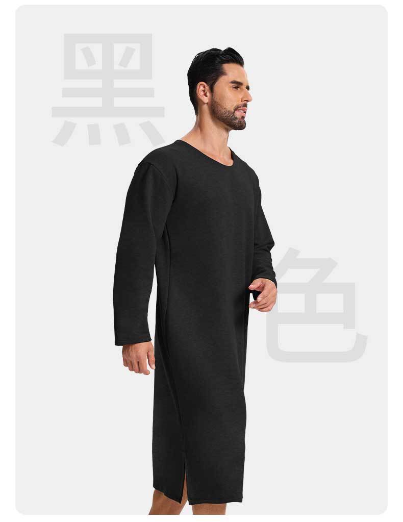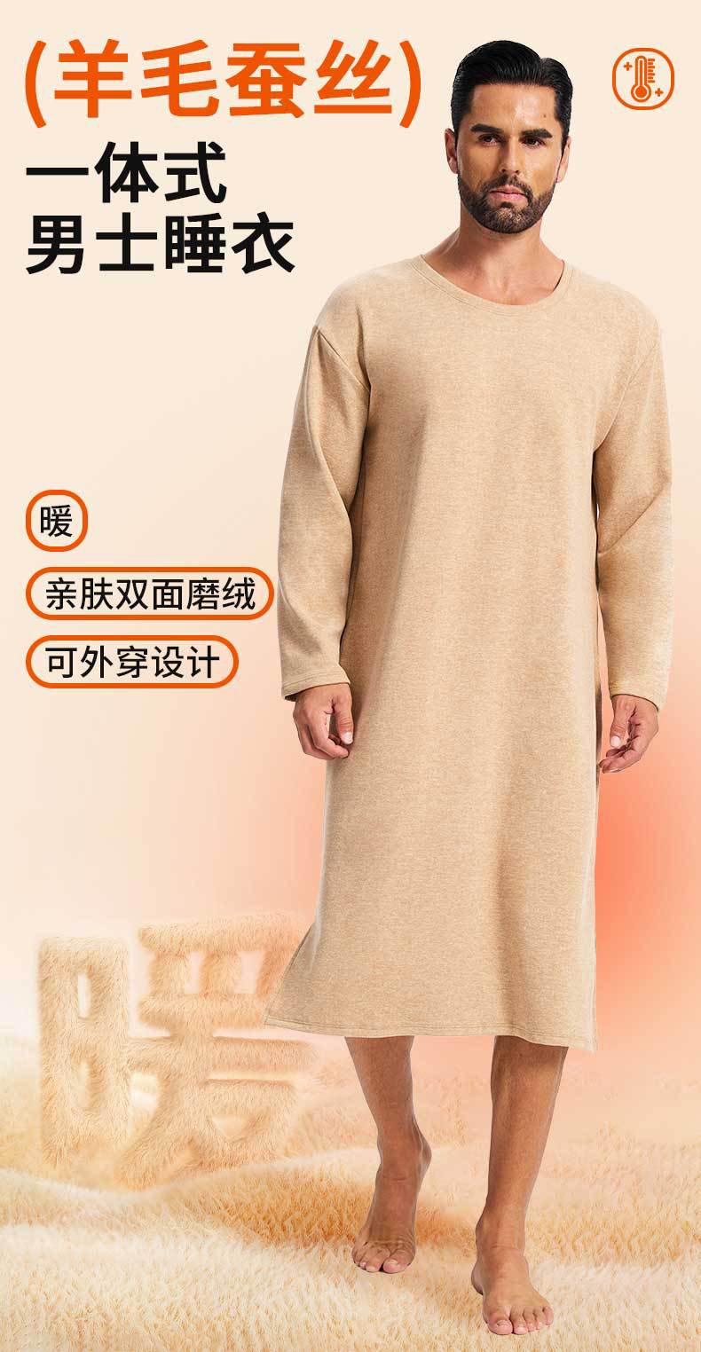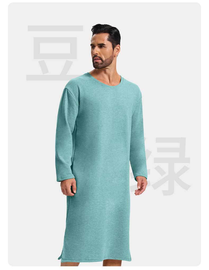 남성 가을 겨울 긴팔 원피스 잠옷, 무릎 위 목욕 가운, 긴 잠옷, 원피스 홈웨어, 울 실크 잠옷