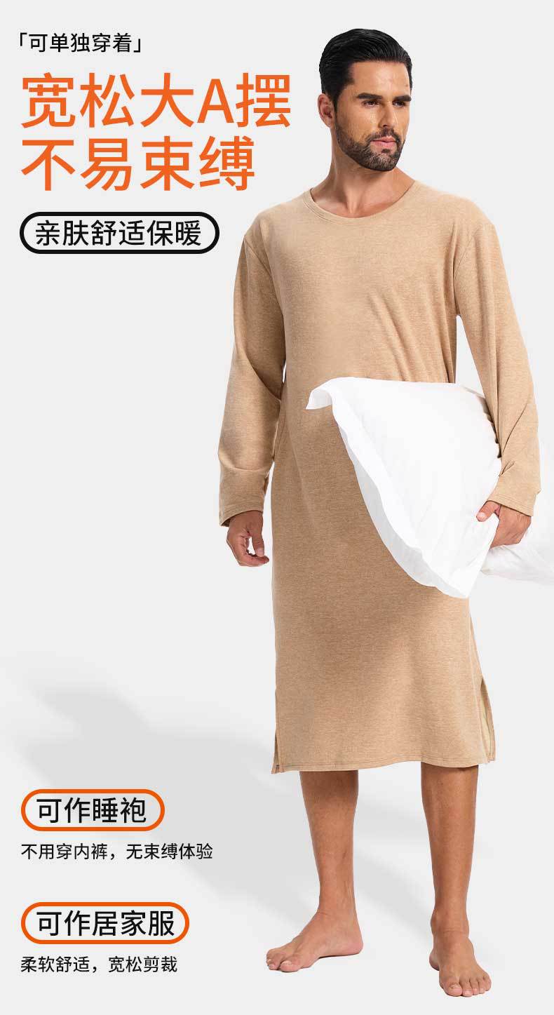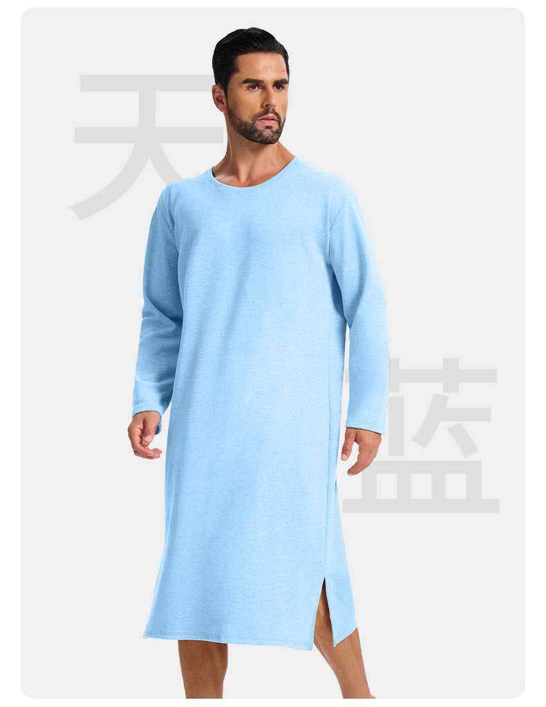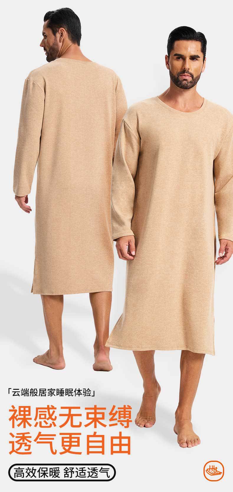 남성 가을 겨울 긴팔 원피스 잠옷, 무릎 위 목욕 가운, 긴 잠옷, 원피스 홈웨어, 울 실크 잠옷스토어 가기