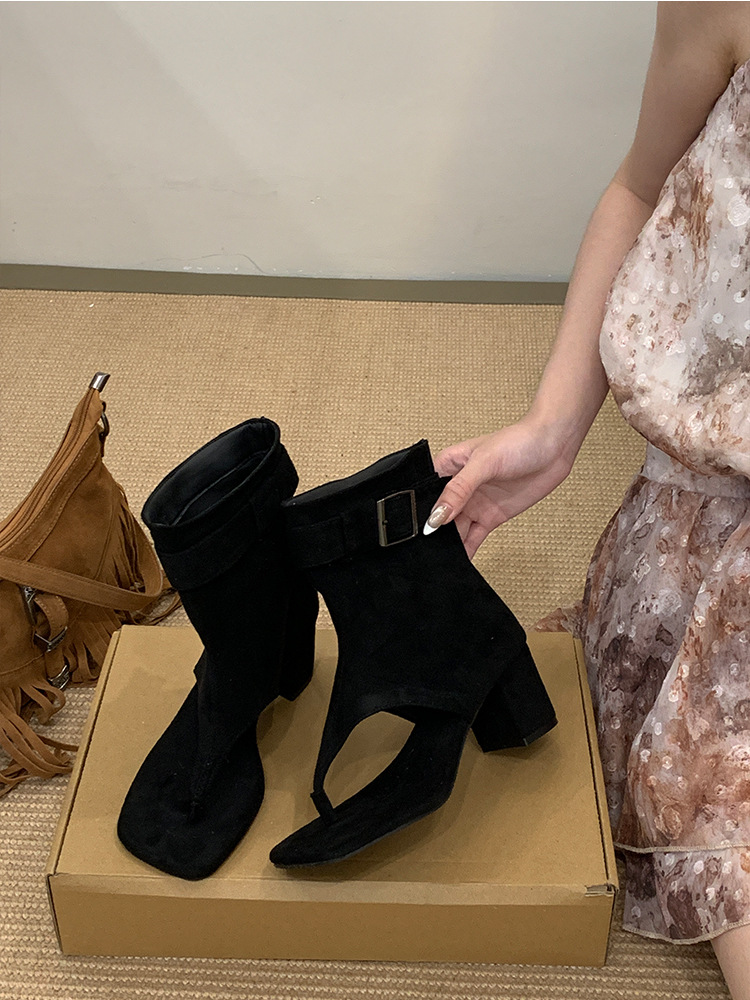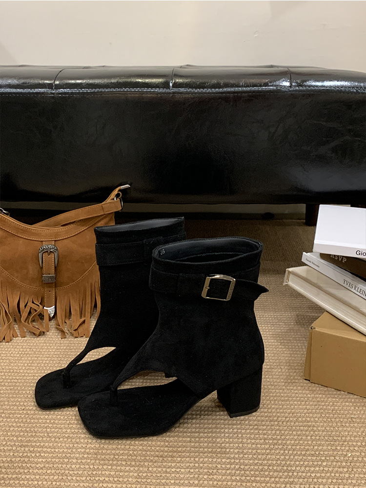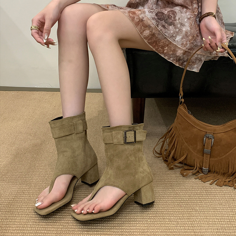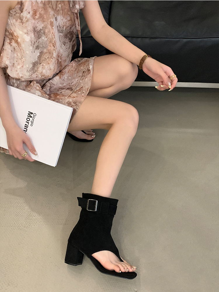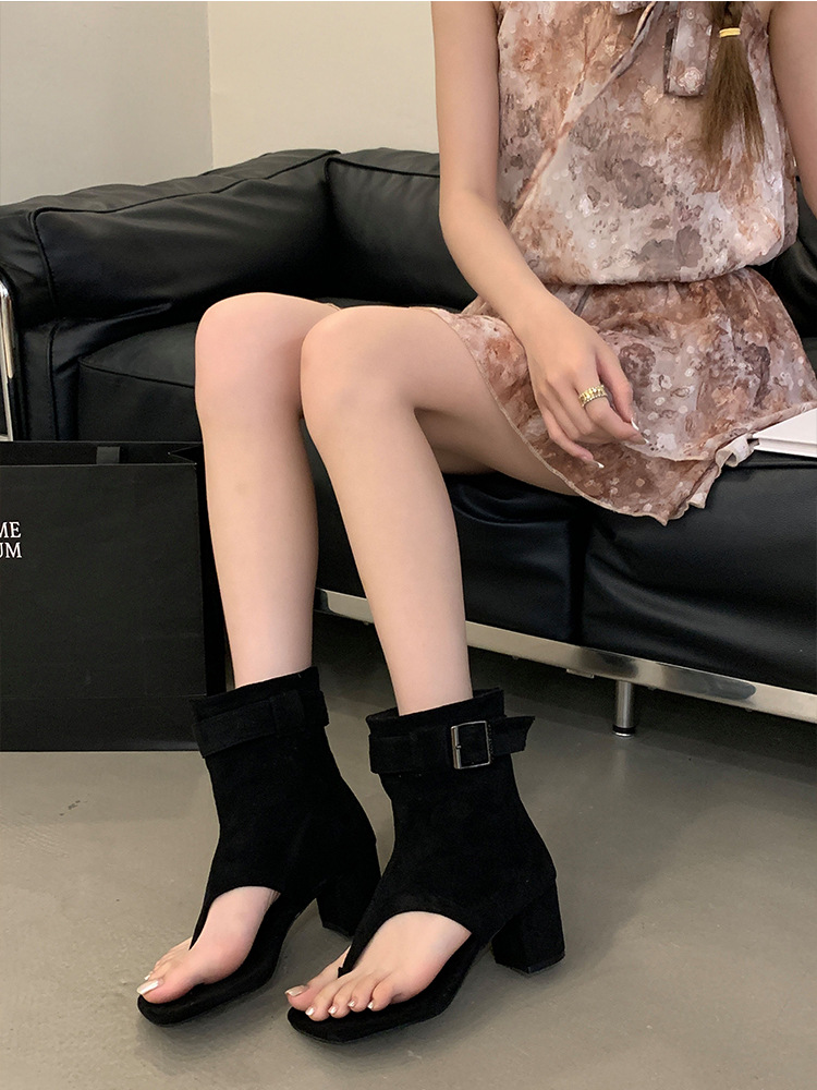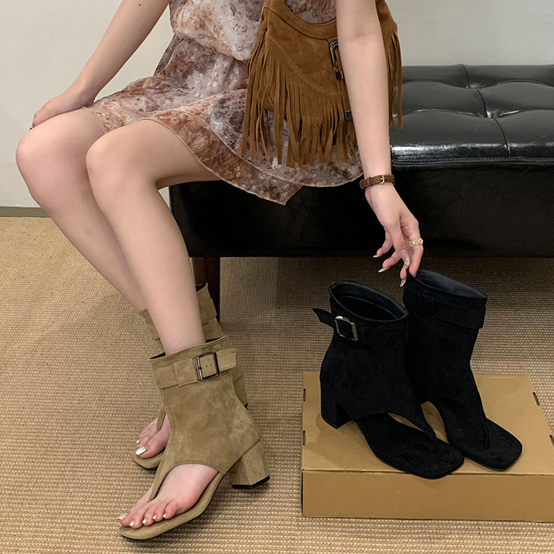 한국 벨트 버클 슬리브 플립 플롭 2025 봄 여름 신작 캐주얼 두꺼운 굽 짧은 바지 샌들 여성용스토어 가기