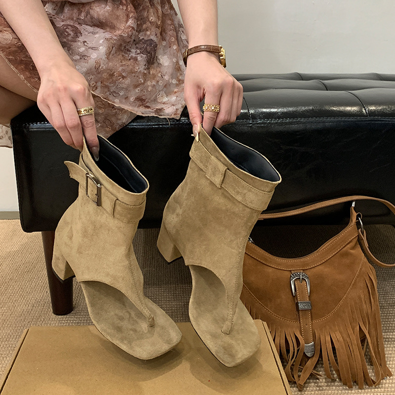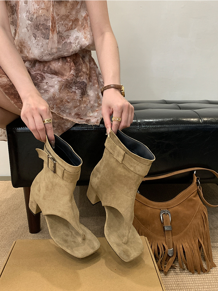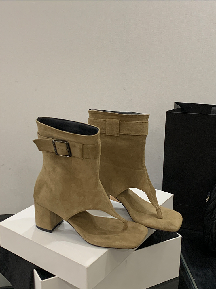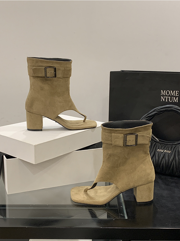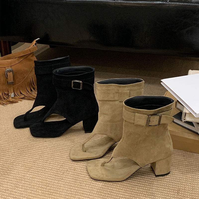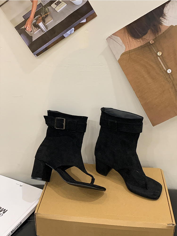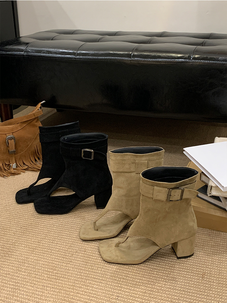 한국 벨트 버클 슬리브 플립 플롭 2025 봄 여름 신작 캐주얼 두꺼운 굽 짧은 바지 샌들 여성용스토어 가기