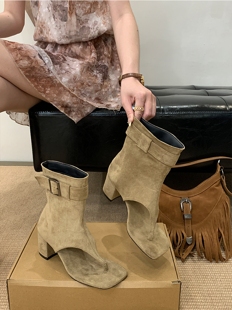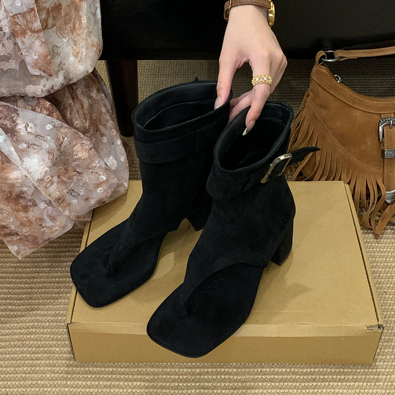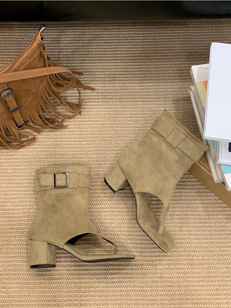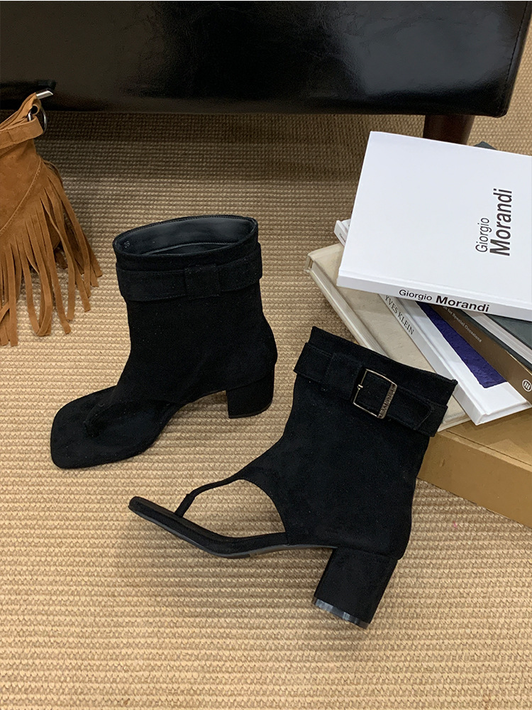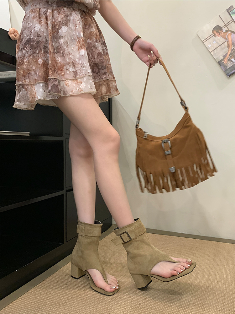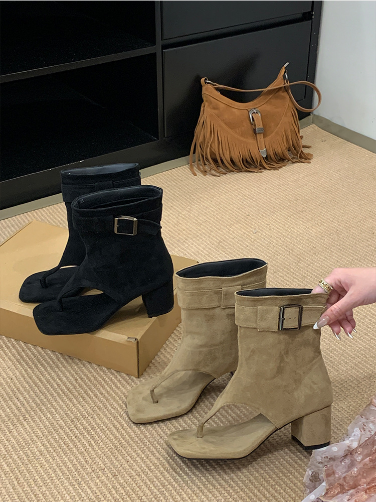 한국 벨트 버클 슬리브 플립 플롭 2025 봄 여름 신작 캐주얼 두꺼운 굽 짧은 바지 샌들 여성용스토어 가기