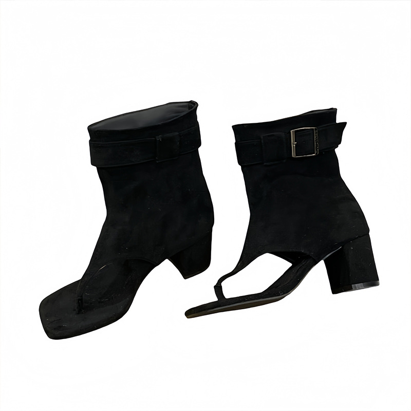 한국 벨트 버클 슬리브 플립 플롭 2025 봄 여름 신작 캐주얼 두꺼운 굽 짧은 바지 샌들 여성용