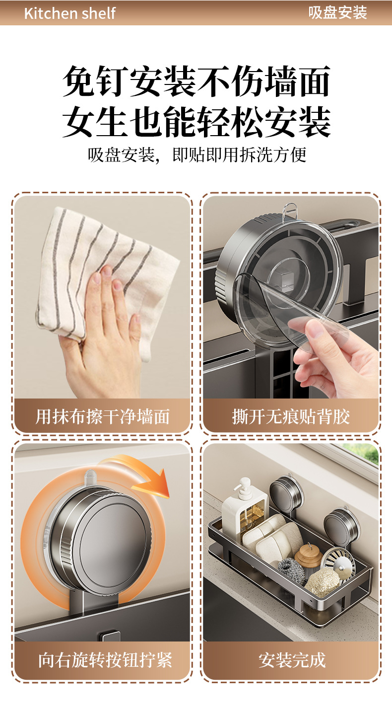 (2)安装请注意,墙面需平整坚固的玻璃瓷砖等。不可用在粉刷墙,墙纸,石灰墙等不平整不坚固的墙面上。