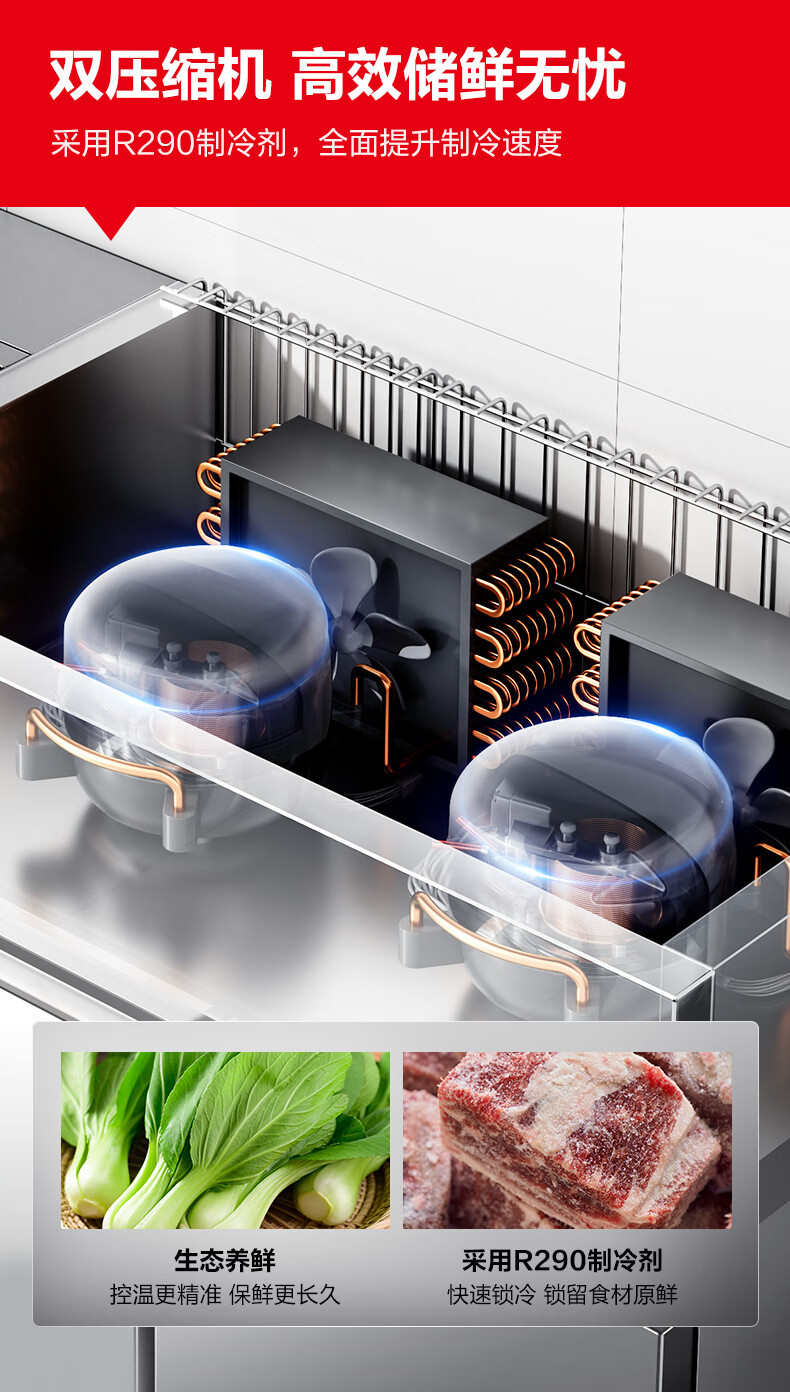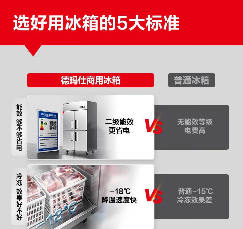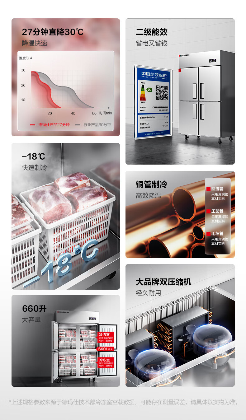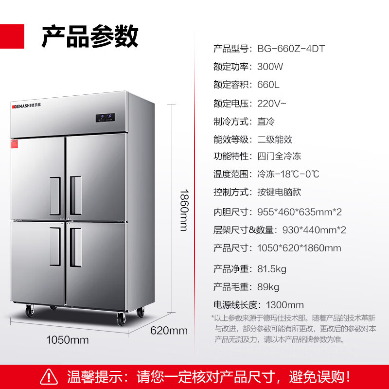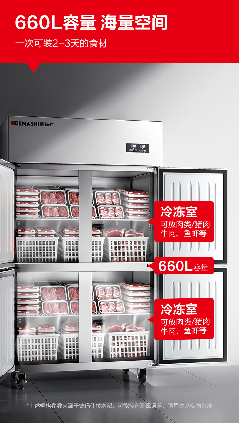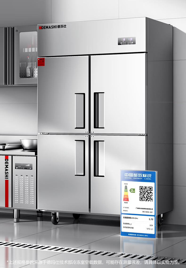 Demax 4도어 상업용 냉장고 냉동고 냉장 및 냉동 2차 에너지 효율 케이터링 주방 신선 유지 캐비닛 2차 에너지 효율